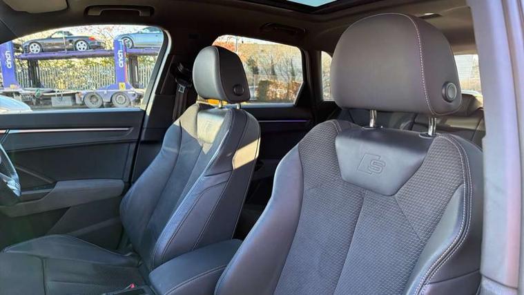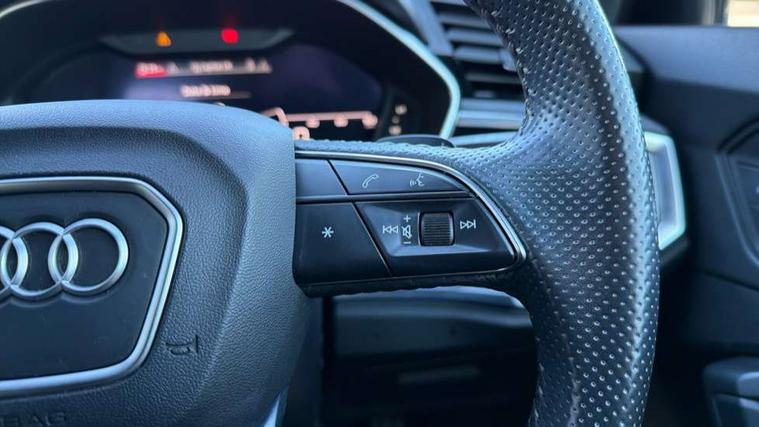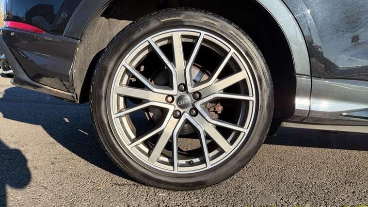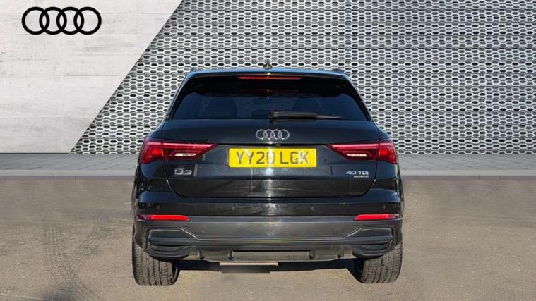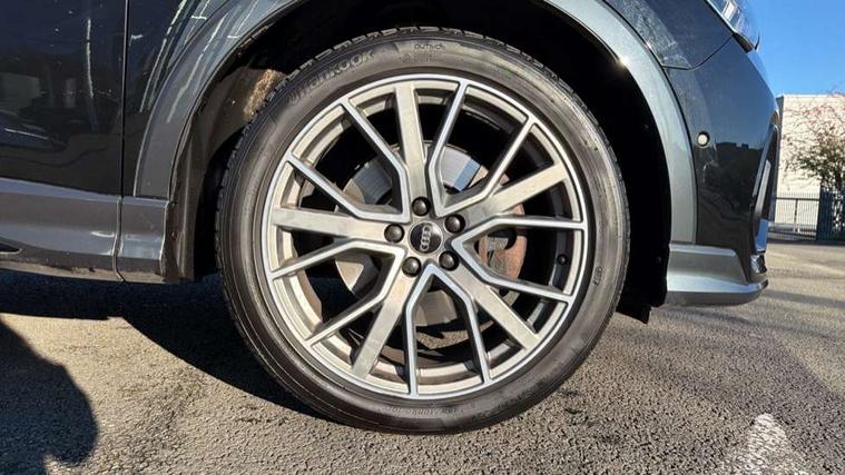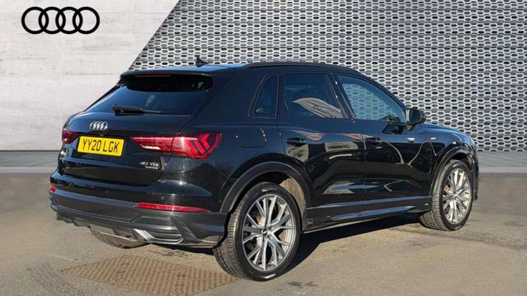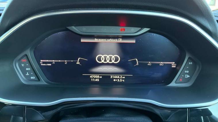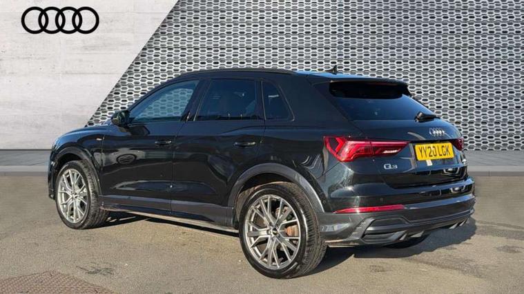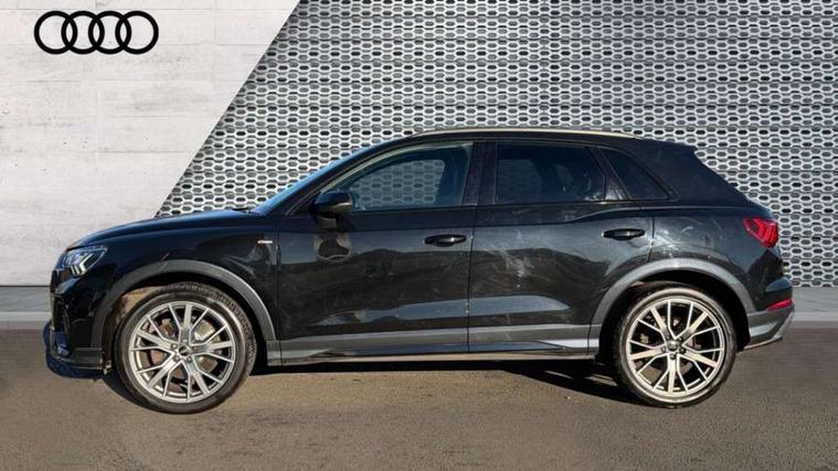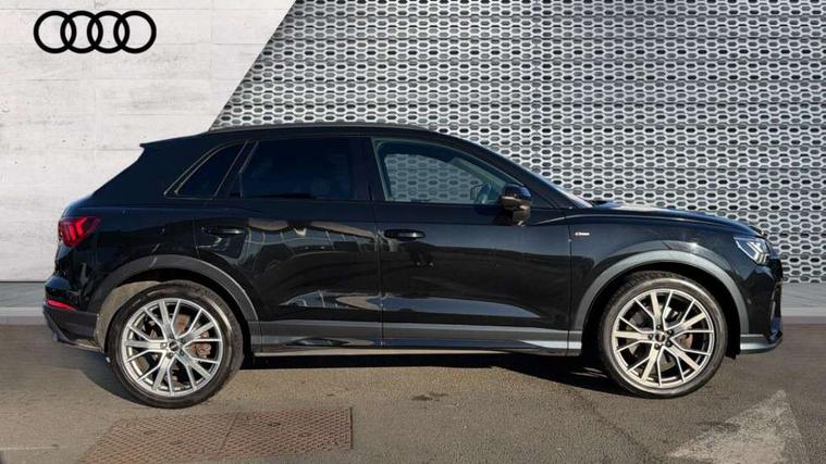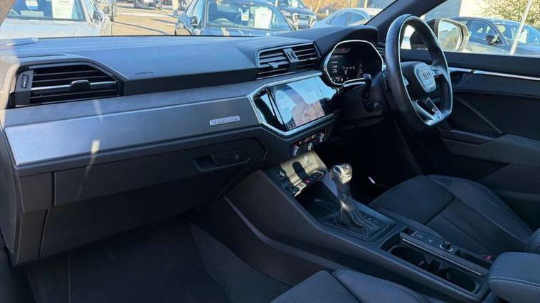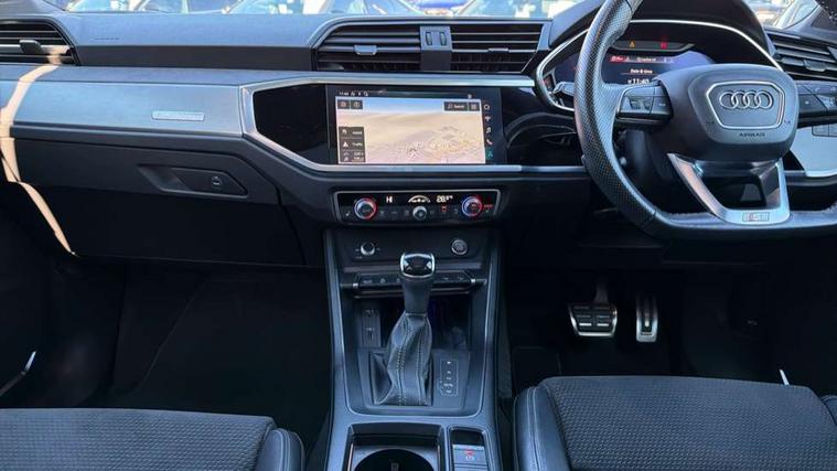360 degree parking camera, Audi connect safety and service (e-call), Audi drive select, Audi lane departure warning, Audi phone box with wireless charging, Audi side assist, Audi virtual cockpit plus, Bluetooth interface, Camera based traffic sign recognition, MMI Navigation Plus with high resolution 10.1 inch touchscreen colour display, Power operated tailgate, Progressive steering, Rear cross traffic alert, Service interval indicator, Smartphone interface includes wireless Apple carplay/Android Auto, Start stop system with recuperation, Voice control system with natural language interaction, Adaptive suspension with damping control, Diesel particulate filter, 1 x USB type C and 1 USB type A charging points, Bang + Olufsen 3D sound system, DAB digital radio module, Acoustic windscreen, Audi Beam uses LEDs to project the Audi Sport logo, Auto dimming door mirrors, Auto dimming frameless rear view mirror, Black roof rails, Electrically folding, adjustable and heated door mirrors with integrated LED side indicators and kerb view function for passenger side, Front and rear electric windows, Front fog lights, Front spoiler blade in matt platinum grey, Grille vertical bars in aluminium silver/Matt, Headlight washers, High gloss black finish B and C pillars, LED daytime running lights, Matrix LED headlights with LED rear lights and dynamic front and rear indicator, Panoramic opening glass sunroof, Privacy glass dark tinted rear and rear-side windows (from B-pillar backwards), Rain and light sensors, Rear diffuser strip in matt titanium black, Rear side wing doors, Rear wiper, S line bumpers in contrasting Manhattan grey, Side skirt insert in matt Platinium grey, Silver chrome grille surround, Third brake light, 12V socket in rear centre console, 3 seat bench in 2nd row, 3 spoke flat bottomed high multi-function leather sport steering wheel with gearshift paddles, 4 way electric lumbar support for driver and front passenger, 40:20:40 folding with manual adjustment for 60:40 forwards/backwards position and backrest angle, Adjustable rear seat bench/backrest with centre armrest and cupholder, Black cloth headlining, Dual zone electronic climate control, Electrically adjustable front seats, Front and rear black floor mats with contrast stitching in rock grey, Front and rear headrests, Front and rear roof module including reading lights, Front centre armrest, Glove compartment lighting, Heated front seats, Height and reach adjustable steering wheel, Illuminated door sill trims with S logo, ISOFIX child seat mounting for front passenger with airbag deactivation and outer rear seat including top tether attachment point for outer rear seats, Luggage compartment light, Perforated leather gearknob, Single front passenger seat, Stainless steel luggage compartment sill finisher, Stainless steel pedals, Black styling pack - Q3, Driver Assistance Pack - Q3, Multi coloured extended ambient interior lighting pack - Q3, Non smoking pack - Q3, 3x3 point rear seatbelts, 6 airbags - Driver, front passenger, curtain and side windows, Audi pre-sense front with pedestrain and cyclist recognition, Electrically operated child locks on rear doors, Electromechanical parking brake, Electronic stabilisation control including ABS, ASR and EDL, Hill descent control, Hill hold assist, Pre sense basic, Seatbelt monitoring, Tyre pressure warning, Warning triangle and first aid kit, Advanced key, Anti theft alarm, Anti theft wheel bolts, Remote central locking, Detail dashboard around MMI touch colour display in glass look, black with surround in aluminium look, Leatherette door armrest,