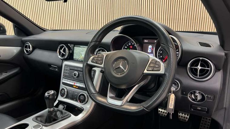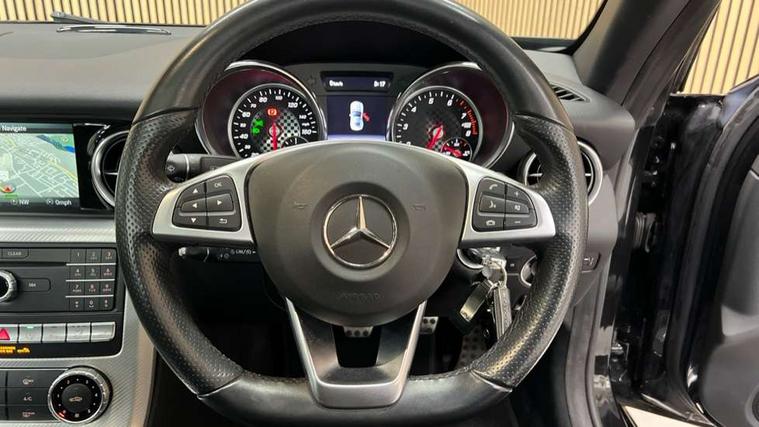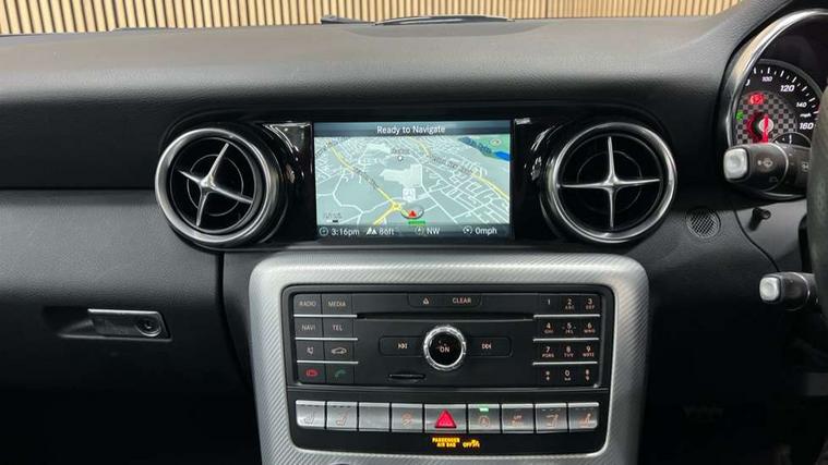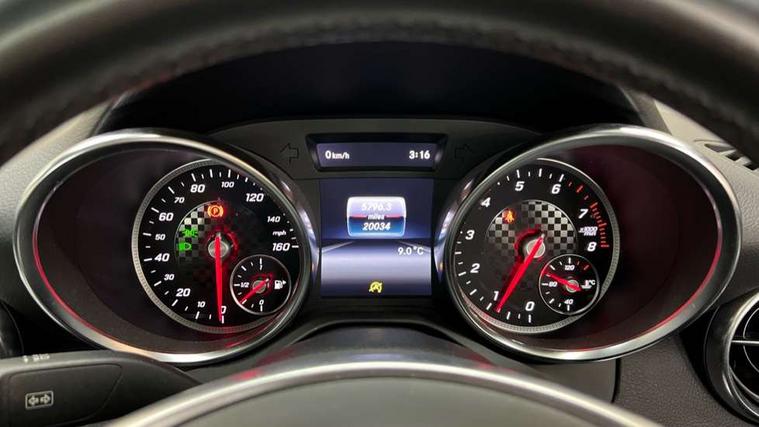 7-inch high-resolution TFT colour display, Attention assist, Bluetooth interface with HD voice capable hands free function and audio streaming for playing music files, Chequered flag design instrument cluster, DYNAMIC SELECT with a choice of driving modes (ECO, Comfort, Sport, Sport+ and Individual), ECO start/stop function, Mercedes connect me with remote online services, Outside temperature display, Remote boot release, Service indicator (ASSYST), Speedtronic cruise control, Trip computer, Petrol Particulate Filter, Sports suspension tuned for improved handling and driving dynamics, lowered by 10 mm, Central controller dial to operate audio functions and telephone, DAB digital radio tuner, Media interface port for iPod or iPhone, Two USB ports in centre console, Adaptive brake lights, AMG bodystyling front and rear aprons and side skirts, Automatic headlamp activation, Body colour bumpers, Door sill panels with Mercedes Benz lettering, Electric front windows, Electrically adjustable and heated door mirrors, Electro hydraulic vario roof, LED daytime running lights, LED tail lamps/brake lamps and indicators, 3 spoke flat bottom multi-function perforated leather steering wheel, AMG floormats, Automatic child seat recognition sensor, Brushed stainless steel sports pedals with rubber studs, Crash responsive head restraints, Driver and front passenger sports seats, Front centre armrest, Independently lockable glove compartment stowage, Seats with height adjusters, Active bonnet pedestrian safety measure, Active brake assist, Adaptive brake system with hold function, Anti lock braking system (ABS) with brake assist, Brake calipers with Mercedes-Benz lettering + perforated brake discs, Brake pad wear warning indicator, Driver and passenger head and side airbags, Dual stage driver/passenger airbags, Electric parking brake, Electronic Stability Programme, Hill hold function, Perforated front brake discs and brake calipers with Mercedes-Benz lettering, Pre-Safe anticipatory safety system, Seatbelt pretensioners, Tyre pressure monitoring system, Warning triangle and first aid kit, Alarm system/interior protection/immobiliser, Remote central locking, Tyre sealant kit,