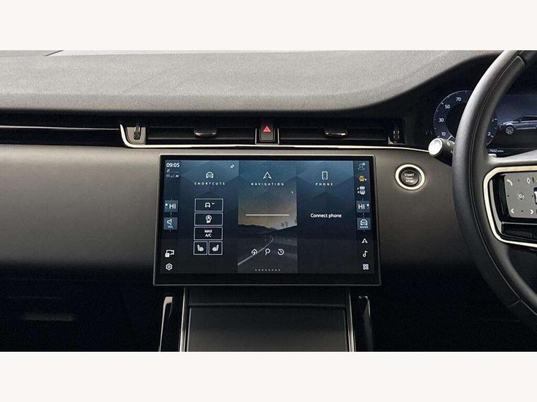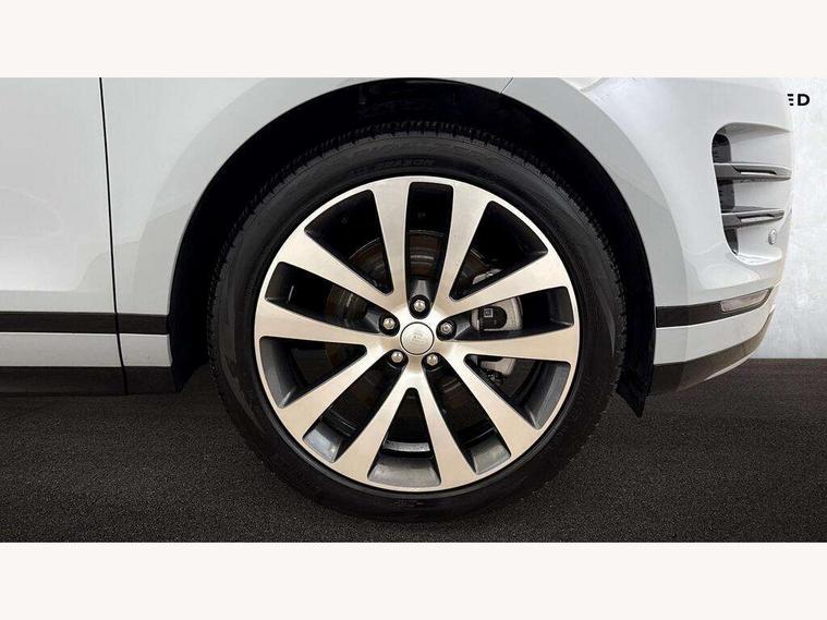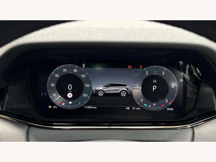 11.4" touch screen, Adaptive cruise control, Android Auto, Apple car play, Blind spot assist, Bluetooth connectivity, Brake pad wear indicator warning light, Driver condition monitor, eCall emergency system, Eco mode, Electronic power assisted steering (EPAS), Front and rear parking aid, InControl remote, Interactive driver display, Land Rover InControl apps, Lane keep assist, Pivi pro connected includes diamond pivi variant, smart settings, connected navigation pro, nuance speech licence, Powered tailgate/boot lid, Rear collision monitor, Rear traffic monitor, Traffic sign recognition with adaptive speed limiter, Voice control system, Wireless device charging, All terrain progress control, Diesel exhaust fluid (DEF) large tank, Efficient Driveline, Large fuel tank, Passive suspension, Terrain Response 2, Digital Audio Broadcast radio-DAB, Steering wheel mounted controls, Acoustic laminated windscreen, Auto headlights, Automatic headlight levelling, Electric windows with one touch open/close and anti trap, Flush deployable exterior door handles, Front and rear recovery eyes, Front fog lights, Heated rear window with timer, Heated washer jets, Heated windscreen, Pixel LED headlights with signature DRL and LED tail Lights, Power fold, auto-dimming, heated door mirrors with approach lights and auto dimming driver side, Rain sensing windscreen wipers, Rear animated directional indicators, Rear fog lights, Rear side wing doors, Rear wiper, Side repeater indicators in mirror, Tailgate spoiler, Third brake light, Winter wiper park position, 14 way driver memory electric front seats with 2 way manual headrests + 4 way lumbar support, bolsters, 40:20:40 split folding rear seats with centre headrest and armrest, Ambient interior lighting, Bright metal pedals, Carpet mats, Chrome tread plates with range rover branding Includes stainless steel loadspace scuff plate with etched graphic, Customer configurable single point entry, Electrically adjustable steering column with memory function and easy entry/exit, Front and rear cupholders, Heated steering wheel, Isofix system on outer rear seats, Overhead lighting console, Overhead stowage for sunglasses, Passive front head restraints, Rear air vents, Rear head restraints, Satin chrome gearshift paddles, Single passenger seat, Sunvisors with illuminated vanity mirrors, Twin sliding front centre armrest, Online pack with data plan - Evoque, Power socket pack 2 - Evoque, 3 rear 3 point seatbelts, Anti-lock braking system (ABS), Brake hold function, Customer configurable autolock, DSC - Dynamic Stability Control, Electronic brake force distribution, Electronic parking brake, Electronic traction control, Emergency braking, Front and rear seatbelt reminder, Hill descent control, Hill launch assist, Low traction launch, Occupant protection assist, Passenger seat occupant detector, Power operated child locks, Roll stability control, Six airbags - Driver and passenger airbags/driver knee airbag/front side airbag and curtain airbags, Torque vectoring brake, Tyre pressure monitoring system, Alarm, Immobiliser, Intrusion sensor, Keyless entry, Locking wheel nuts,