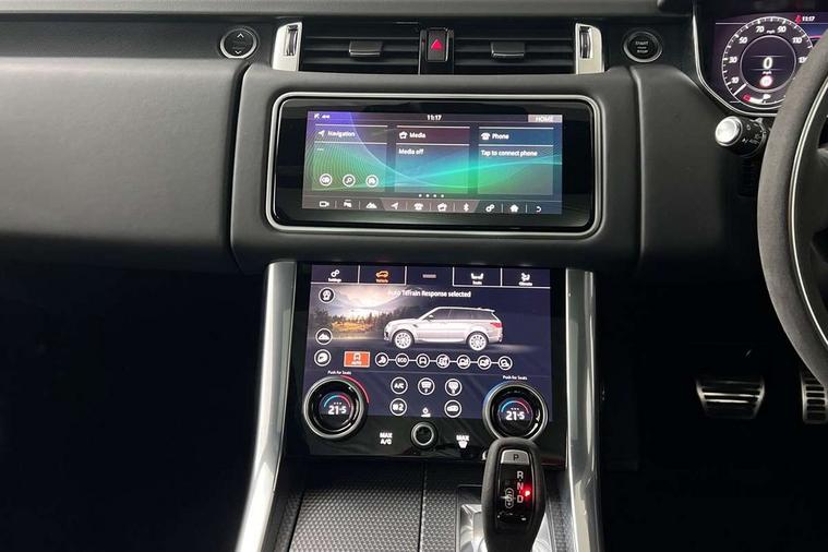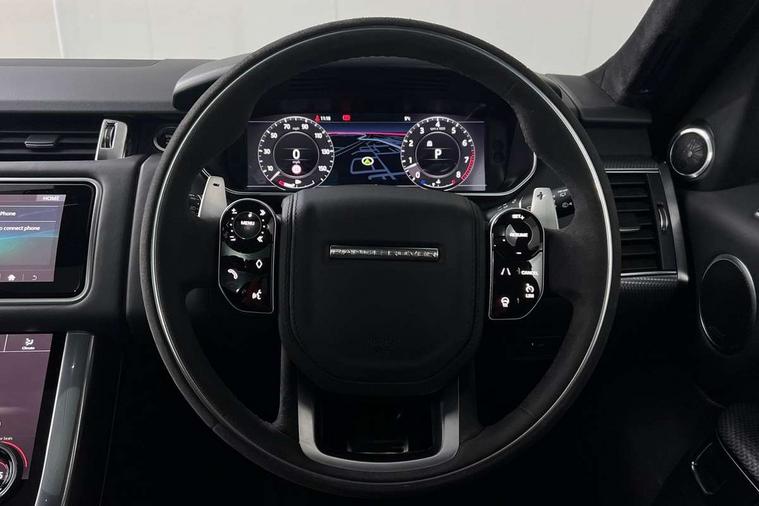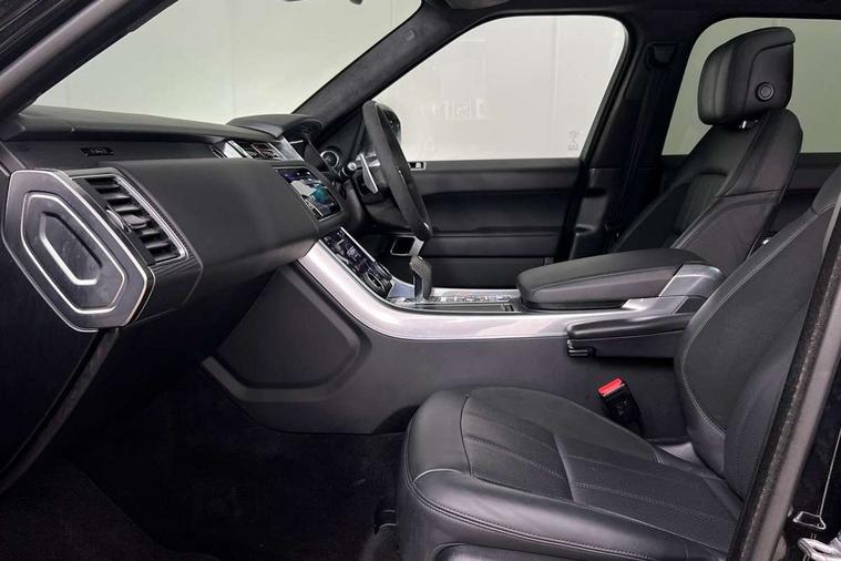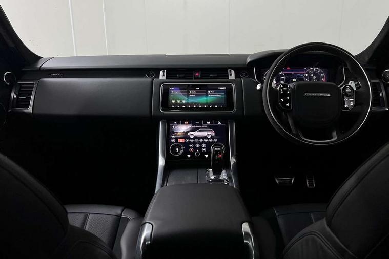 360 Parking aid, All Terrain Info Centre, Android Auto, Apple car play, Bluetooth connectivity, Clear exit monitor, Driver condition monitor, Electric power assisted steering (EPAS), Incontrol apps in vehicle touchscreen, Interactive Driver display instrument cluster, Mist sensor, Navigation pro system with 10" touch screen, app interface and media storage, Pro services and wifi hotspot, Push button start, Rear traffic monitor, Remote premium - Upgraded Incontrol remote app including remote climate control (engine dependent), remote lock + Unlock and remote beep + flash, TFT Virtual Instrument Panel, Touch pro duo system, Traffic sign recognition with adaptive speed limiter, Trip computer, Adaptive dynamics, All terrain progress control, Configurable dynamics, Electronic air suspension, Gradient release control (GRC), Terrain Response 2 with dynamic program, Twin speed transfer box, Bluetooth audio streaming, DAB Radio (Digital Audio Broadcasting), Incontrol protect - SOS emergency call with automatic collision detection, optimised assistance call and Incontrol remote app essential, USB/aux input socket, Acoustic front and toughened rear side glass, Acoustic laminated front windows, Adaptive brake lights, Auto dimming interior rear view mirror, Automatic headlights, Body coloured side sills and bumpers corners, Centre high mounted stop light, Electric windows with one touch open/close and anti trap, Electrical towing preparation, Engine cover, Follow me home lighting, Front and rear recovery eyes, Front fog lights, Headlight power wash, Heated rear window, Heated windscreen includes heated washer jets, HST badge, Illuminated metal treadplates with brand name script, LED rear lamps, Narvik black mirror caps, Power fold, auto-dimming, heated door mirrors with memory and approach lights, Privacy glass (Tinted glass rear of B pillar), Rain sensing windscreen wipers, Rear fog lights, Rear side wing doors, Rear wash/wipe, Remote window closing, Side repeater indicators in mirror, Sport Badge in black, Standard bonnet, Trailer stability assist, Twin bright tailpipes, 2 way active front head restraints, 2 way rear head restraints, 3 seat bench in 2nd row, 60/40 load through rear seats, Aluminium gear shift paddles, Auto air recirculation, Bright metal foot pedals, Centre console with armrest, Climate control memory, Customer configurable single point entry, Driver's footrest, Extended leather upgrade includes door top rolls and leather instrument panel mid section, Front and rear cupholders, Front door storage space, Front map lights, Front seat back map pockets, Front stowage pocket, Front/rear passenger grab handles, Heated steering wheel, Isofix child seat preparation, Loadspace light, Loadspace mounting provisions, Lockable glovebox, Multifunction steering wheel, Pollen filter, Power socket, Reach/rake electric adjustable steering column + entry/exit tilt away, Rear centre armrest, Rear ISOFIX, Roller blind loadspace cover, Single front passenger seat, Sports pedals, Suede cloth headlining, Suede cloth steering wheel, Three 12V accessory power outlets, Carbon fibre exterior pack - Range Rover Sport, Smartphone pack - Range Rover Sport, 3 point seatbelts on all seats, Anti-lock braking system (ABS), Brake pre-fill technology, Cornering brake control (CBC), Curtain airbags, Customer configurable autolock, DSC - Dynamic Stability Control, Dual stage driver/passenger airbags, EBD - Electronic brakeforce distribution, Electric parking brake, Electronic traction control, Emergency braking includes city, urban AEB and pedestrian, Front seatbelt pretensioners, Gradient acceleration control, Height adjustable front seatbelts, Hill descent control, Hill launch assist, Low traction launch, Passenger seat occupant detector with front airbags, Power operated child locks, Roll stability control, Seatbelt warning, TPMS (Tyre pressure monitoring system), Immobiliser, Intrusion sensor, Keyless entry, Locking wheel nuts, Perimetric and volumetric anti theft alarm, Remote locking,