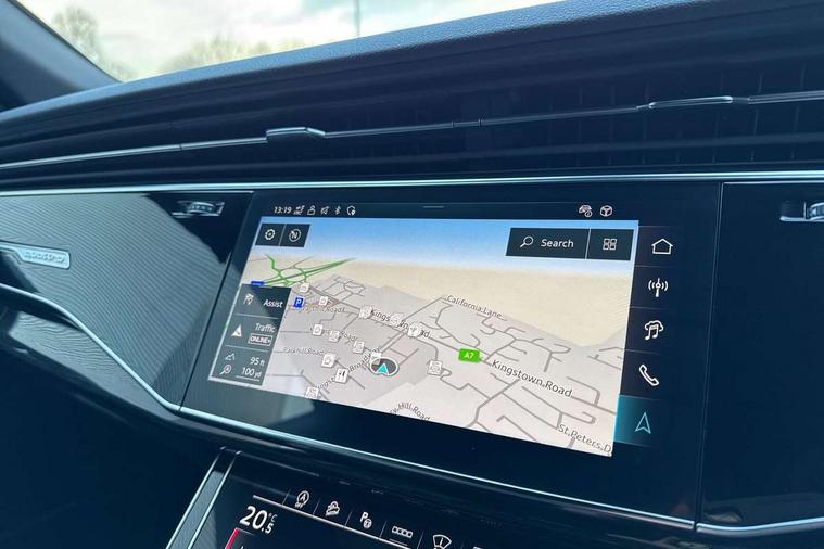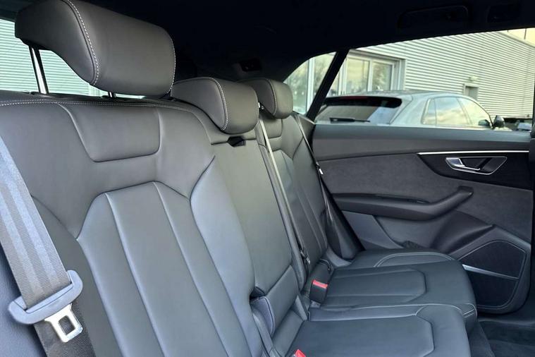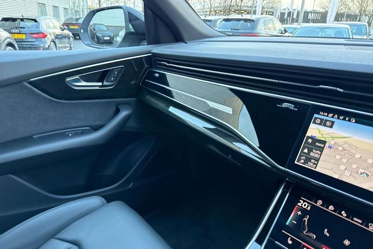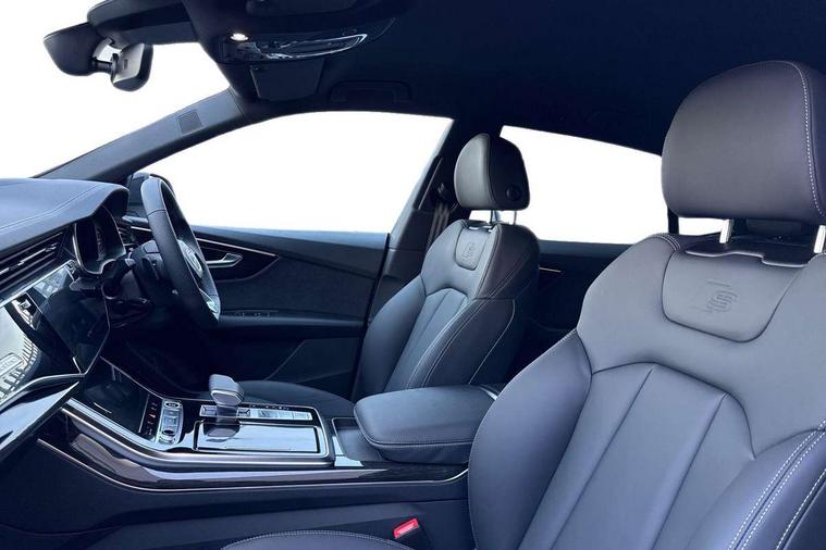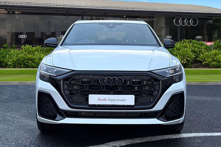 10.1" and 8.6" Dual colour touchscreens, Audi application store, Audi connect safety and service (e-call), Audi connect with Amazon Alexa Integration, Audi drive select, Audi parking system plus includes 360 degree display with front and rear sensors, Audi phone box light with wireless charging, Audi virtual cockpit - 12.3" high resolution LCD display with fully customisable instrument cluster, Automatic start/stop system, Bluetooth, Electro-mechanical PAS, Low washer fluid indicator, MMI navigation plus with MMI touch, Natural voice recognition, On board computer, Operating buttons in black, glass look with haptic feedback, Power operated tailgate, Rear view camera, Service interval indicator, Smartphone interface includes wireless Apple carplay/Android Auto, 48V Mild hybrid technology, Adaptive sport air suspension, Diesel particulate filter, Quattro all wheel drive with self locking centre differential, Audi music interface with 2 USB ports with charge and data functions, Audi sound system with 6 channel amplifier, 180 watt amplifying capacity and 10 loudspeakers including subwoofer, Aux-in socket, DAB Digital radio, 3rd brake light, Audi beam, Auto dimming frameless rear view mirror, Black exhaust tailpipes, Black single frame mask, Coming/leaving home lighting function, Electric front+rear windows, Electrically folding auto dimming/adjustable/heated door mirrors with memory function, LED side indicators and kerb view function for passenger side, Headlight washers, Heat insulating glass in windshield, LED rear light plus, LED signature daytime running lights, Loading edge protection in stainless steel, Matrix LED headlights with dynamic front and rear indicators, Platinum grey front spoiler lip and diffuser insert with honeycomb grille in black, Privacy glass - dark tinted rear and rear side windows from B-pillar backwards, Rain and light sensors, Rear side wing doors, Rear wiper, Singleframe grille surround in matte platinum grey, 2 zone automatic climate control, 3 bench rear seats in 2nd row, 4-way lumbar support for front seats, 40:20:40 split folding rear bench seat, Black cloth headlining, Comfort front centre armrest, Driver seat memory function, Electrically adjustable front seats, Front head restraints, Front/rear floor mats, Heated front seats, ISOFIX child seat mounting for front passenger seat and 2 outer rear seats with top tether child seat mounting for all 3 rear seats, LED interior ambient lighting, Luggage compartment sill protection in stainless steel, Rear centre armrest with 2 cupholders, Rear headrests, Seat cushion displaceable by 100mm in the ratio 60:40, Single front passenger seat, Stainless steel pedals, Sunvisors with illuminated vanity mirrors, Black styling pack plus - Q8, 3 point seatbelts on all seats, Audi pre sense front, Convenience key with safelock, Driver and front passenger, front side and curtain airbags, Electromechanical parking brake, Electronic Stability Control (ESC) including ABS, ASR and EDL, Front passenger airbag deactivation, Hill descent control, Hill hold assist, Predictive pedestrian protection, Seatbelt monitoring, Traction control, Tyre pressure loss indicator, Warning triangle and first aid kit, Anti theft alarm with tow away protection, Anti-theft wheel bolts and wheel loosening detection, Electronically operated child lock, Immobiliser, Keyless go with remote central locking, Polished oak trim with grey finish inlay, Tool kit, Tyre repair kit,