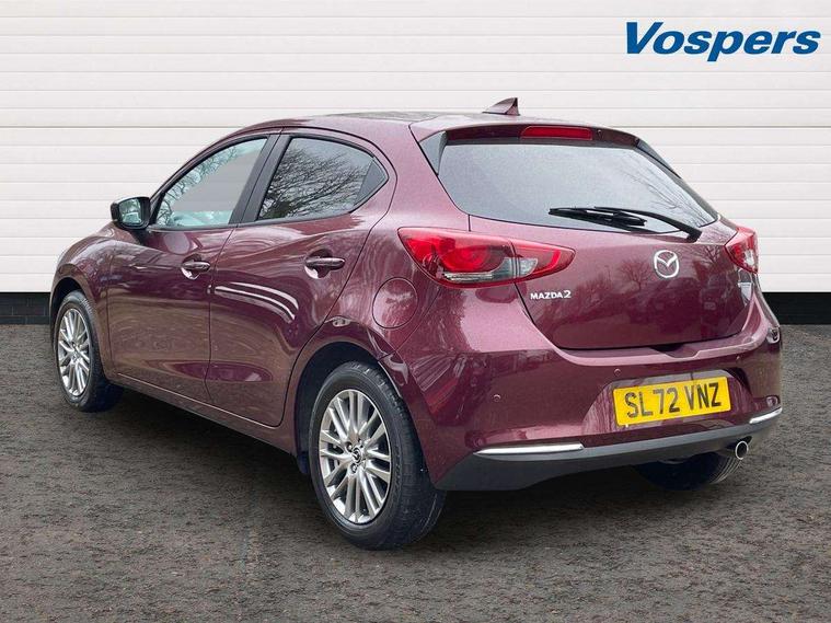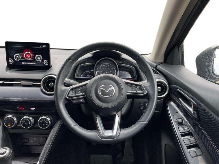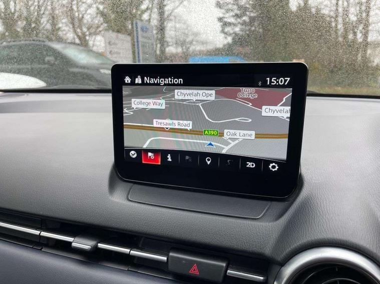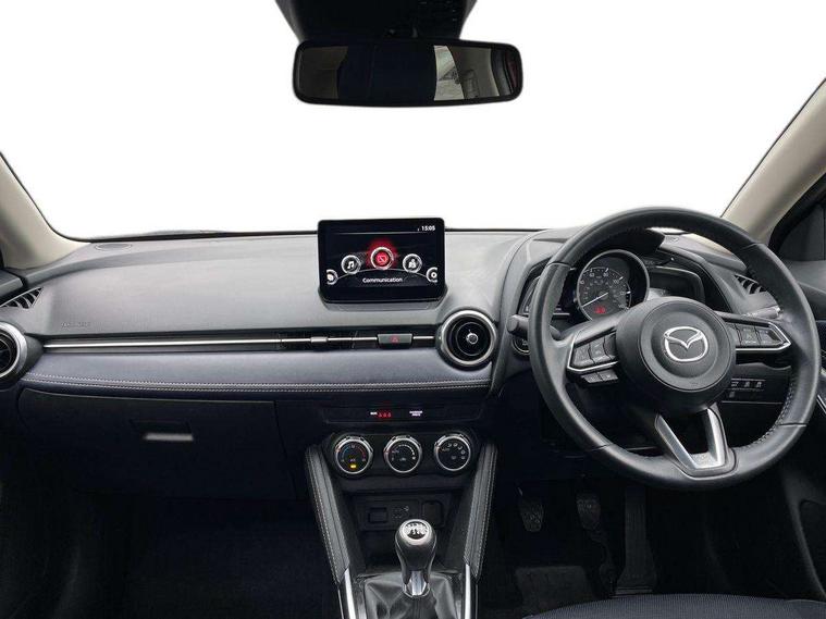 Adjustable speed limiter, Analogue speed display meter, Cruise control, Digital instrument cluster, Digital rev counter, E-call, Emergency stop signalling system, Engine start/stop button, Integrated bluetooth, Lane departure warning system, Lane keep assist, Mazda connect with 8" colour touch screen, Navigation system, PAS, Rear parking sensor, Service indicator, Trip computer, Wireless Apple CarPlay and wired Android Auto, i-stop, AM/FM/DAB radio with 6 speakers with USB and AUX inputs, Multimedia Commander including separate volume dial, Steering wheel mounted audio/bluetooth controls, Auto dimming rear view mirror, Auto headlight levelling, Body colour door mirrors, Body coloured front bumper with bright lower bezel, Body coloured rear bumper with bright lower mouldings, Chrome exhaust tailpipes, Chrome finish signature wing on front grille, Chrome front lower bezel, Chrome rear lower bezel, Coming/leaving home lighting function, Dusk sensing headlights, Electric adjustable/heated/folding door mirrors, Electric front/rear windows with one touch auto up/down for driver's window, Gloss black front grille, LED Headlights, LED indicator lights, LED third brake light, Privacy glass, Rain sensing front wipers with adjustable sensitivity and speed, Rear side wing doors, Rear wiper, Shark fin antenna, Signature LED daytime running lights, 3 seat bench in 2nd row, 60/40 split rear seats, Climate control air conditioning, Cloth upholstery, Driver, Front passenger and two rear grab handles with coathooks, Drivers seat manual slide recline and height adjustment, Drivers/front passengers covered vanity mirrors and drivers ticket holder, Folding rear seats, Front centre storage with two cupholders, Front head restraints, Front passenger and driver door pockets, Front passenger seat manual slide, recline and height adjust, Front passenger seatback pockets, Gear shift indicator, Glovebox, Interior courtesy light with integrated spotlight, ISOFIX child seat anchorage points attached on outer rear seats, Leather handbrake, Leather steering wheel and gear knob, Luggage compartment light, Satin silver dials, Single front passenger seat, Three height adjustable rear head restraints, Tilt/telescopic adjustable steering wheel, 2x3 point front seatbelts with pre-tensioners, 3 point seatbelts on all rear seats, Anti-lock braking system (ABS), Autonomous emergency braking, Collision mitigation braking system, Dynamic stability control + Traction control, ESP, Front and rear curtain airbags, Front driver, passenger and rear seat seatbelt warning, Front dual stage driver and single stage front passenger airbags, Front side airbags, Front smart city brake support, G-Vectoring control plus, Hill launch assist, Manual child lock in rear doors, Passenger airbag cut-off switch, Tyre pressure monitoring system, Deadlocking system, Immobiliser, Power door locks, Remote central locking, Smart keyless entry, Thatcham accredited alarm and immobiliser, Dark blue soft touch dashboard, 16" Bright finish alloy wheels, Emergency tyre repair kit,