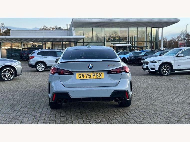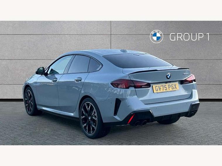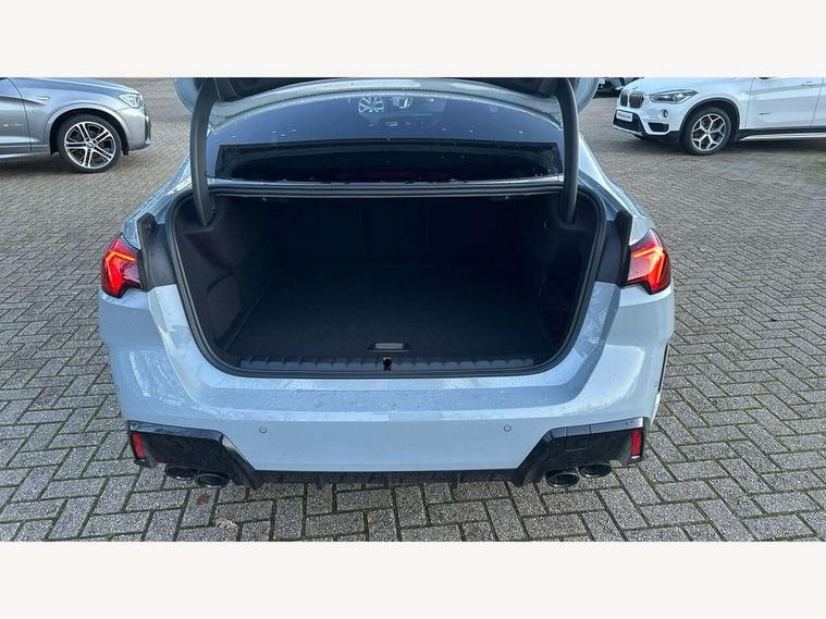 3 driving modes Normal, Eco, Sport, Active guard plus, Attentiveness assist, Auto start-stop, Bluetooth / WiFi interface for wireless connection of mobile terminal devices and audio streaming, BMW ConnectedDrive online services, BMW Intelligent Personal Assistant, BMW Live cockpit plus with widescreen display 10.25" instrument cluster and 10.7" control display, BMW Online services, BMW operating system with 7.0 mid interface, BMW Teleservices, Check Control warning system for monitoring of lights and door/luggage compartment open warning, Cruise control with braking function, Electric power steering, Front and rear parking sensors, Gearshift time display in manual mode, Integrated navigation data with map data via USB +features such as 3D landmarks and micro city models, Integrated owners handbook, Intelligent voice assistant, Lane departure warning system, Oil sensor for level and grade, On board computer - average speed+fuel consumption, service interval, clock/date, odometer/trip meter, outside temperature display and ice warning, Optimum shift indicator, Park assist including reversing assistant, lateral parking aid and reversing assist camera, Personal e-SIM, Personal Profile, Pull away assistant, Speed limit Info including no-overtaking indicator, Speed limiting function, Sporty fast gear shifting in sport mode, 49 litre fuel tank, Automatic transmission with gearshift paddles, Drive Performance Control, Electronic differential lock, M Adaptive suspension, Performance Control, Petrol Particulate Filter, VALVETRONIC engine management, 2x USB Type C ports (for charging and data transfer), 4G LTE Connectivity with hard wied 4G network sim card, DAB Digital radio, HiFi Loudspeaker system Harman Kardon with 12 speakers, Auto wipers, Automatic headlight beam throw control, Automatically dimming rear view mirror, Body colour door handles, Body colour mirror caps, Direction indicator side lights integrated exterior mirrors, Exterior M sport design elements, Folding side mirrors with auto dimming/folding wing mirrors with auto dimming, Follow me home headlights, Front and rear bumper panel with M specific design, in body colour with inserts in black high gloss, Heated door mirrors, High level third brake light, Key with M identification, LED daytime running lights, LED eyebrow turn indicators, M identification on the sides, M rear boot spoiler, Rain sensor with automatic headlight activation, Rear boot, Rear fog lights, Rear side wing doors, Rear window heating, Roof trim strip in vehicle colour, Shark fin antenna, Side sill covers with M specific design in body colour, Sun protection glass, Trailer stabilisation logic, Visible VIN plate, Welcome lighting, 12V power socket in centre console, 2 cupholders in front centre console, 3 rear seat head restraints, 3 seat bench in 2nd row, 3 spoke sports black walknappa leather steering, decorative stitch in Mcolour, shaped thumb rest, highlited trim pearl chrome detailing, specific M Badge, Anthracite headlining, Child seat ISOFIX attachment for two outer rear seats and front passenger seat with anchorage points, Conditioned based service, Driver and front passenger backrest net on rear, Driver and front passenger seat heating, Four grab handles integrated in roof lining, Front and rear door pockets including bottle trays, Front and rear side armrest integrated into door trim, Front head restraints, Height adjustable front head restraints, Luggage compartment lighting, Rear seat backrest with manual 60:40 split folding with 3 top tether clips integrated on rear of seat panels, Single front passenger seat, Stainless steel pedal covers, Steering 12-o Clock centre mark in red and paddles in back high gloss with red highlight, Sun visors with vanity mirrors and insert tab, Connected pack professional - 2 Series Gran Coupe, 2 tone horn, Airbag - Front driver and passenger, front and rear head, front side, curtain head protection, manual deactivation of front passenger airbag possible, Anti lock braking system (ABS) with cornering brake control, BMW emergency call, Brake drying, Braking readiness, City braking function, Crash sensor activating of airbags, Unlocking doors, hazard warning lights, interior light, safety battery terminal, Dynamic stability control + (DSC+), Dynamic Traction Control - DTC, Electrically operated hand brake, Front and rear disc brakes, PC iBrake (Post crash approach control warning with light braking function), Rear brake discs, Rear child proof door locks, Seat belt security check for driver and front passenger, Seatbelt warning, Side impact protection, Three point seat belts on all seats including front belt stopper, pyrotechnic belt tensioners and belt force limiters, Trailer stability control, Tyre pressure monitoring system, Ventilated front disc brakes, Warning triangle and first aid kit, Central locking switch for all doors, fuel filler cap and luggage compartment, Deadlocking function system to all doors, Drive away locking system on all doors and luggage compartment, Locking wheel bolts, Start/Stop button (illuminated) in centre console with keyless engine start and Auto Start-Stop deactivation button, Thatcham Cat.1 alarm and immobiliser, Two remote control key with integrated key - open/close doors/fuel flap/tailgate +1 button for unlock compartment with M design high gloss black inlay, Reduced rolling resistance tyres, Tyre repair kit,