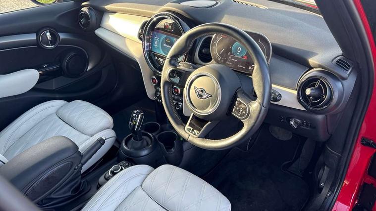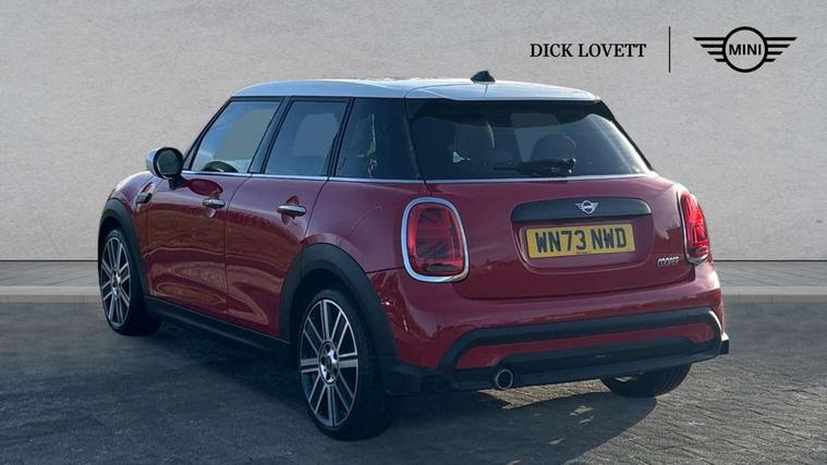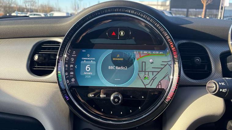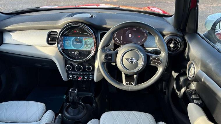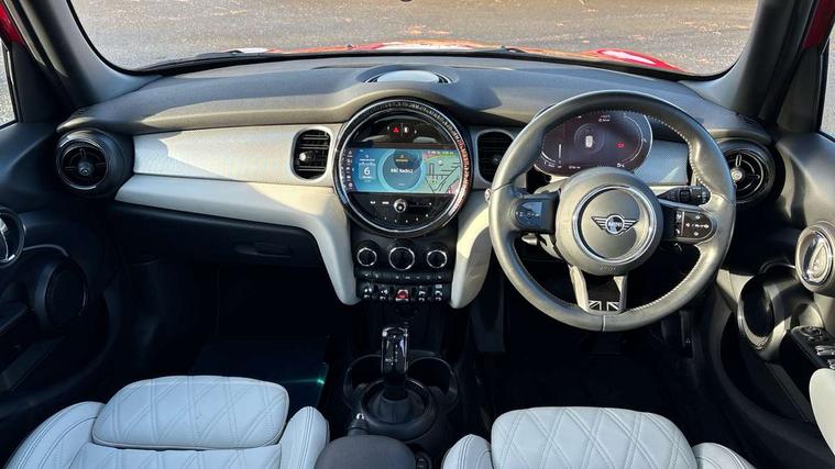 Apple CarPlay, Automatic start/stop function with brake energy recuperation, Compatible mobile phone bluetooth with audio streaming, Electro-mechanical speed dependant steering assistance, Flexible car sharing preparation, MINI Driving Modes - centre toggle switch to control driving setting (sport, mid and green), Mini E-call, MINI TeleServices, On board computer, Rear park distance control, Service interval indicator, Double Vanos system, Fully variable valve control, Gear change indicator display, High precision injection, Performance Control, Steptronic transmission with double clutch, 8.8" touchscreen with LED ring, FM tuner and DAB digital radio, 3rd brake light, Automatic headlight activation switch, Body colour fuel filler cap, Chrome line exterior - radiator grille bars, tailgate handle, lower front grille grating and rear central fog-light, Dynamic brake lights, Electric front+rear windows, Heated rear window, Heated windscreen washer jets, Metal door sill strips with MINI imprint, Model logo Cooper on right of tailgate, Rain sensor window wipers, Rear fog lights, Rear LED lights with union jack design, Rear side wing doors, Rear window wiper, Side scuttle panel with integrated indicator, Sun/heat protection glass, White indicator lenses, 12V Accessory socket in centre console, 3 seat bench in 2nd row, 4 lashing eyes in luggage compartment, 60/40 split folding rear seat, Anthracite headliner including grab handles and clothes hooks, Carbon black colour line - Knee roll and door armrest, Chrome interior highlights, Chrome line interior - air vents, gear lever base, door handles and speakers in doors, Cupholders, Front and rear head restraints, Front and rear isofix with front passenger airbag deactivation, Front and rear velour floor mats, Glove compartment, Height and length steering column adjustment, Interior lighting with 12 different colours across the dashboard, underneath door bezel with illuminated laser-engraved design on central display, Leatherette gearshift lever and handbrake gaiters, LED reading lights, vanity mirror lights, front foot well light and spotlight on front seats, Mechanical seat adjustment - forward/back & backrest for front seats and driver seat height adjust, MINI yours badge on exterior pillar, Multifunction steering wheel, Single front passenger seat, Storage compartments in doors, Sunvisors with vanity mirrors, Walknappa leather steering wheel with grey seam and MINI Yours badge on Piano Black lower steering wheel spoke, 3 point seatbelts on all five seats, 6 Airbags - front, side, head and seat belt tensioners, Anti-lock braking system (ABS), Child locks on rear doors, DSC - Dynamic Stability Control, Front and rear disc brakes, Hill start assist, Single tone fanfare horn, Tyre pressure monitoring system, Alarm system with tilt sensor, monitoring doors, bonnet interior and tailgate, Electronic vehicle immobiliser, Start/stop toggle with keyless go, Tool kit,