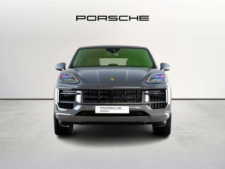 Active parking assist and 360 camera, Active speed limit assist, Android Auto, Apple car play, Auto start/stop function and coasting, Brake pad wear indicator, Driver awareness detection, Driver personalisation for climate, audio and communication, assistance systems and other customisable car systems, E-call, High resolution 12.3-inch touchscreen display in full HD resolution, Individual mode for individual selection of vehicle drive settings, Instrument cluster with 12.6" curved display, Instrument cluster with two high-resolution displays, Mobile phone preparation with Bluetooth interface for telephone and music, Mode switch, Porsche Communication Management (PCM) including online navigation module, mobile phone preparation, audio interfaces and voice control system, Power steering plus, Power tailgate with gesture control, Reversible occupant protection measures, Smartphone integration, Speed limit indicator, Vehicle electrical system recuperation, Warn and brake assist including pedestrian protection, 11 kW on board AC charger, 32A 230V blue industrial supply cable and basic wall mount, 70 litre fuel tank, 8 speed automatic gearbox, Adaptive air suspension with levelling system and height adjustment with Porsche Active Suspension Management (PASM), Aluminium cylinder heads and engine block, Direct fuel injection (DFI) with central injector position, Front and rear aluminium multi link axles, Gasoline particulate filter, Lithium-ion battery, Mode 3 charging cable, Panoramic roof with fixed glass panel, Sport mode, Standard charging cable length, Starter battery, Supply cable for domestic electrical socket (10A), Twin turbocharger, VarioCam Plus, Water cooled with thermal management, AM radio, Digital radio, Fast charging two USB-C PD connectivity and charging port in front storage compartment, Smartphone compartment with wireless charging, Two USB-C PD charging ports in the rear, Active air intake flaps, Air intake slats with inlays in high gloss Black, Auto dimming interior + exterior mirrors, Automatic headlight activation including welcome home functionality, Bumper system with high strength cross members and two deformation elements + Two receptacles with screw threads towing lug + onboard tool kit, Deletion of GTS logo on sideskirt inlays, Door handles painted in exterior colour, Electric windows + anti trap protection + one touch open/close drivers side, Electrically adjustable, folding and heated exterior mirrors, aspherical on drivers side including courtesy lights, Extensive aerodynamic underbody protection, Exterior mirror lower trims including mirror base in black, Four point signature LED daytime running lights, Front end with integrated air intakes and airblades for the side air intakes, Front light modules including position lights and direction indicators in LED light guide technology, Front windscreen wipers with two speeds, intermittent wipe and rain sensor, Fully galvanised steel / aluminium hybrid lightweight bodyshell and Aluminium bonnet, tailgate, doors, side panels, roof and front wings, Heated rear window with automatic switch off, LED High level third brake light integrated into roof spoiler, Lower valance, Porsche active aerodynamics (PAA) with adaptive roof spoiler, Porsche logo integrated into rear taillight strip, PORSCHE' lettering integrated in tailgate strip, Preparation for the roof transport system, Rear diffusor in louvered design, Rear side wing doors, Rear window wiper with intermittent function and washer jet, Right fuel filler cover and left charging port cover, 2 seat bench in 2nd row, Ambient lighting, B-pillar clothes hooks on driver and passenger's side, Charge air cooling, Deletion of turbo S logo embossed on headrests, Door interior with decorative surfaces and accent trims, Electric sound, Elevated centre console with handles, Front and rear bottle holders in door panels, Front centre armrest, Front head restraints, Heated front seats, Height adjustable rear headrests, Illuminated make-up mirror in sun visors, Integrated front headrests, Isofix fastening system for child seats on outer rear seats, Leather door panel and central armrests, Leather gear selector, LED interior light with switchoff delay function, footwell + glove compartment light, ashtray + ignition lock illumination, front + rear reading light, Manual height adjust for driver and front passenger seat belt, Manual steering column with angle and reach adjustment, Particle/pollen filter with active carbon filter, PM 2.5 fine dust filtering, Rear seat split folding design 40:20:40, Fold out centre armrest with integrated cup holder, manual fore/after adjust and backrest angle adjust, Rigid luggage compartment cover, Single front passenger seat, Soft close doors, Sports rear seat system, Stainless steel pedals, Storage compartments - Cooled glove compartment, front centre console, door and map pockets on front seat backrests + side luggage compartment, Sun visors for driver and front passenger, Three 12V power sockets - front below the glove compartment, centre console and at side of luggage compartment, Two integrated cup holders in front and rear with variable diameter, Driver memory pack - Cayenne, 3 point automatic seatbelts with front and outer rear seats pretensioners and front force limiter, 4 piston aluminium monobloc fixed brake calipers at rear, 6 piston aluminium monobloc fixed caliper brakes at front, Active bonnet, Auto hold function, Brake discs with diameter 410 mm at front, 365 mm at rear, Curtain airbags along roof frame and side glazing from the A-pillar to the C-pillar, Distance warning, Electronic parking brake, Front passenger airbag deactivation function for front seat mounting of child seat, Front side airbags integrated into seat, Full size driver and front passenger airbags, Knee driver and passenger airbags, Manual child lock in rear doors, Mounting points on passenger seat for ISOFIX child seat mounting system, Multi-Collision braking, Porsche hill con