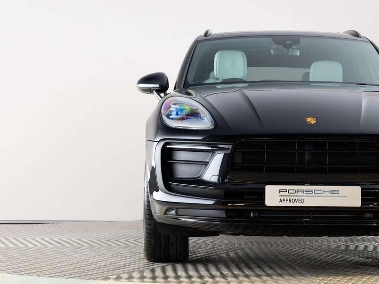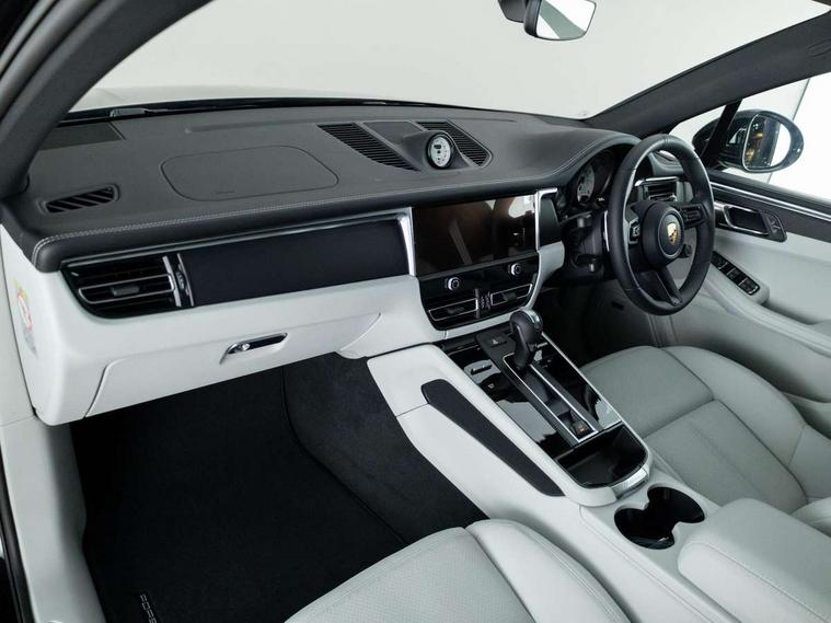 Analogue clock on dashboard, Automatic start/stop system, Automatic tailgate, Cruise control + speed limiter, eCall emergency call system, Instrument cluster with high resolution 4.8-inch TFT display, gear indicator for PDK, service interval display, external temperature indicator, fuel gauge, Off-road button, On board computer, Porsche Communication Management (PCM) including online navigation module, mobile phone preparation, audio interfaces and voice control system, Sports button in centre console, 7-Speed Porsche Doppelkupplung (PDK) with automatic mode and manual controls (gearshift paddles) on steering wheel, Direct fuel injection (DFI), Gasoline particulate filter, VarioCam camshaft control for inlet and exhaust valves, 2 USB sockets in rear centre console, Apple CarPlay with Siri voice recognition, Connect Plus including online navigation, LTE communication module with SIM card reader, wireless internet access, Porsche Car Connect services, DAB Digital radio, Porsche Vehicle Traking System Plus (PVTS Plus), Smartphone compartment with wireless charging, Two USB C charging and connectivity ports in the front centre console storage compartment, Active radiator grille shutters, Automatic headlight activation including welcome home lighting, Bumper system with high strength cross members and two deformation elements + One threaded fixture point for towing eye contained in onboard tool kit, Dynamic cornering lights, speed-sensitive headlight and dynamic range control, adverse weather function, four-point LED daytime running lights, Electric front and rear windows with remote closing function + anti trap + one touch, Electrically folding and heated exterior mirrors, Front light modules with LED position lights and direction indicators, Front windscreen wipers with two speeds, intermittent wipe and rain sensor, Front with integrated cooling air intakes, Fully galvanised body, Heated rear window with automatic switch off, High level 3rd LED brake light integrated into roof spoiler, Loading edge protection in aluminium, Rear side wing doors, Rear window wiper with intermittent function and washer jet, Roof spoiler in high gloss black, Towbar preparation, 3 adjustable rear headrests, 3 rear seats, 3 zone auto climate control separate temperature setting+air recirculation include quality sensor, airflow regulation+AC MAX button+humidity sensor, 4 way adjustable front head restraints, 40:20:40 split folding rear bench seat, Cloth hook b-pillar, Fold up centre console armrest with fore/aft adjustment, Front and rear bottle holders in door panels, Front passenger seat, Glove compartment, Isofix fastening system for child seats on outer rear seats, Luggage compartment cover, Particle/pollen filter with active carbon filter, Rear armrest with 2 cupholders, Storage bin in centre console, Storage compartment in side of luggage compartment and storage compartment in spare wheel recess, Storage pocket in front and rear doors, Two integrated cup holders in front with variable diameter, Two socket 12V power outlets in front console and luggage compartment, Uncovered storage compartment in centre console, Ambient comfort lighting pack - Macan, Lower exterior trim package in black - Macan, 3-point automatic seatbelts with front and outer rear seats pretensioners and force limiter + manually height adjustable seatbelt + reminder warning, Auto hold function, Black painted brake calipers, Child locks on rear doors, Curtain airbags along entire roof frame and side windows from A pillar to the C pillar, Electronic parking brake, Front passenger airbag deactivation facility for installation of child seats indicator in overhead console, Front side airbags integrated into seat, Full size driver and passenger airbags, Internally vented brake discs with diameter of 350mm at front and 330mm at rear, Multi-Collision braking, Porsche hill control (PHC), PTM(Porsche Traction Management) and All-wheel drive with map-controlled multi-plate clutch, Roll over sensor for curtain airbag and seatbelt pretensioners, Side impact protection in doors, Tyre pressure monitoring system, Vehicle stability system, Porsche stability management (PSM) including ABS, ASR, ABD, MSR and trailer stability management, Vented discs brake with 4 piston aluminium monobloc fixed caliper at front, Vented discs brake with combination floating calipers at rear, Alarm system with ultrasonic interior surveillance, Dashcam prep, Engine immobiliser with key transponder, Remote control central locking, Accent trims with silver coloured finish,