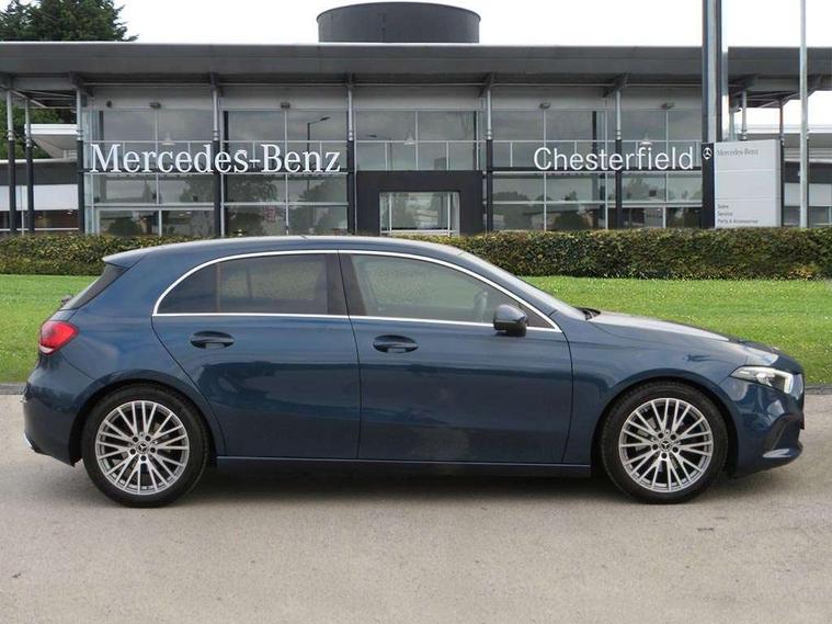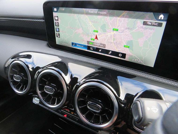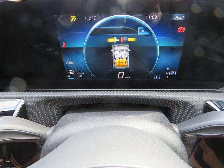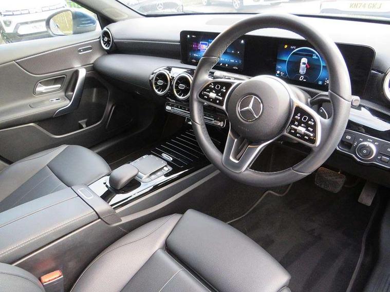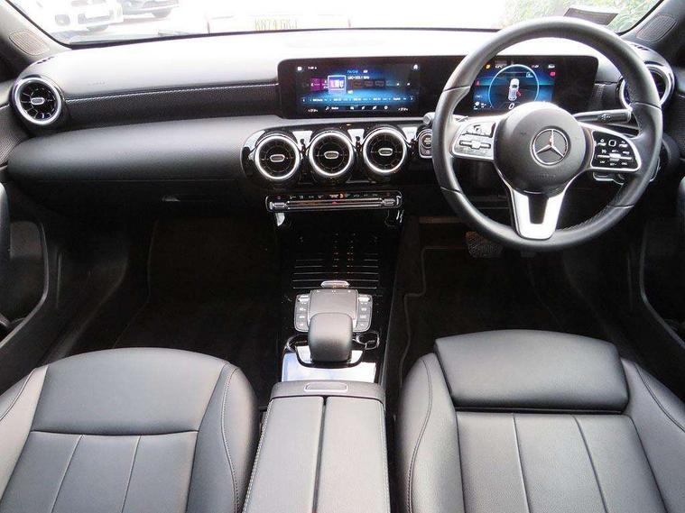 10.25" media display, 180 degree rear view camera with parking guidelines, 7" colour screen in instrument panel, Active parking assist with visual and audible warning of detected obstacles, Attention assist, Brake pad wear indicator warning light, Car wash mode, Cruise control + speed limiter, Direct steering, Dual bluetooth interfaces, DYNAMIC SELECT with a choice of driving modes (ECO, Comfort, Sport and Individual), ECO start/stop function, Fluid level warning indicator for fuel, oil, coolant and washer fluid, Hard-disk navigation, Hey Mercedes Voice activation, Lamp failure indicator, Lane keeping system, Mercedes me connect including emergency call system, accident recovery, breakdown and maintenance management, Mercedes me remote services, Outside temperature gauge, Owners manual in English, Pre-installation for private car sharing, Preinstallation for Mercedes Benz link, Service indicator (ASSYST), Smartphone integration with Apple CarPlay and Android auto, Speed sensitive power steering, Trip computer, Ultrasonic sensors positioned in the front and rear bumpers, Lowered comfort suspension, Rear axle torsion beam, 2 USB ports (type C) in rear stowage compartment and one in front of center console, 6 speakers, DAB Digital radio, MBUX multimedia system with DAB digital radio and touchpad including satellite navigation, Mercedes-Benz sound system - 100W, 4 Electric Front and Rear windows, Adaptive brake lights, Automatic headlights, Black weather strip, Body colour bumpers, Body colour door handles, Body colour side skirt, Body coloured door mirrors, Chrome beltline trim, Diamond radiator grille with black pins with one louvre in silver + chrome insert, Electric adjustable and heated door mirrors with integrated LED side indicators, Exhaust system - Twin visible tailpipes in polished stainless steel, Headlamp assist automatic headlamp activation, Heated glass rear windscreen + timer control, LED High level third brake light, LED high performance headlamps with integrated LED daytime running lights, LED tail lamp, Privacy glass, Radio aerial, Rain sensing windscreen wipers with two sensitivity settings, Rear fog lights, Rear side wing doors, Rear wiper, Window line trim strip in chrome, 3 seat bench in 2nd row, 3 Spoke leather multi function steering wheel, 40:20:40 split folding rear seats, Artico man-made leather upholstery, Auto Mercedes-Benz child seat recognition sensor, Black air vents with surround in silver chrome, Black roof lining, Controller on centre console with chrome surround, Front centre armrest with storage compartment, Front comfort seats with adjustable head restraints, Front door sills with Mercedes Benz lettering, Front seat backs luggage nets, Front seat cushion length adjustment, Gearshift paddles on steering wheel, Heated front seats, Height/reach adjustable steering column, Interior mirror with reading lamps in black and frameless, Manual height adjustable front seats, Rear head restraints, Seat occupancy sensor for front passenger seat, Single front passenger seat, Stowage compartment in centre console with retractable cover, Sunvisors with illuminated vanity mirrors, Touchpad on center console, Twin front cupholders, Two zone thermotronic luxury automatic climate control, Velour floor mats, Light and sight pack - A Class, Mirror package - A Class, Seat comfort pack - A Class, 3 rear 3 point seatbelts, ABS with Brake Assist, Active bonnet, Active brake assist includes forward collision warning system with autonomous braking, Adaptive brake assist with hold function and hill start assist, Black seatbelts, Childproof locks manually operated for rear doors and electrically operated for rear power windows, Crash responsive emergency lighting, Driver and passenger head and side airbags, Drivers knee airbag, Dual stage driver/passenger airbags, Electronic parking brake, ESP curve dynamic assist, ESP with ASR, Front and rear seatbelt reminder, ISOFIX and top tether child seat fixing points in two outer rear seats, Tyre pressure monitoring system, Warning triangle and first aid kit, Window airbags, Alarm system/interior protection/immobiliser, Keyless Go, Remote central locking and crash sensor with emergency opening function, Urban guard vehicle protection system with immobiliser and interior protection, Dark carbon fibre interior trim, 18" multi spoke light alloy wheels painted in himalayas grey with a high sheen finish, Summer tyres, Tirefit sealant kit,