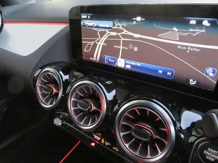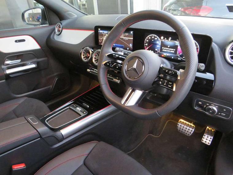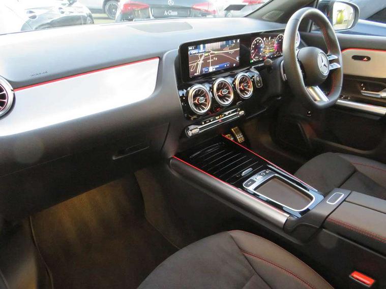 10.25 inch touchscreen central media display, 10.25" Digital instrument cluster display screen, Attention assist, Blind spot assist, Direct steering, DYNAMIC SELECT with a choice of driving modes (ECO, Comfort, Sport and Individual), ECO start/stop function, Fluid level warning indicator for fuel, oil, coolant and washer fluid, Hard-disk navigation, Hey Mercedes Voice activation, Lamp failure indicator, Lane keeping assist (LKA), Mercedes me connect including emergency call system, accident recovery, breakdown and maintenance management, Mercedes me remote services, Multi function trip computer, Outside temperature gauge, Owners manual and service booklet in English, Pre-installation of private car share, Radio aerial integrated into front and rear windshields, Service indicator (ASSYST), Smartphone integration with Apple CarPlay and Android auto, Speed limit assist, Wireless charging, Lowered comfort suspension, Rear axle multi-link, Bluetooth connectivity including audio streaming, DAB Digital radio, MBUX multimedia system, Mercedes Benz sound system (100 W) with 6 speakers, Adaptive brake lights, Adaptive highbeam assist, Aluminium roof rails, AMG front apron with front splitter in the colour of the vehicle with chrome trim element, AMG rear apron with visible tailpipe trim and chrome trim element, AMG specific/dual flow exhaust pipes in chrome (non-functional), Automatic headlamp activation, Beltline trim and window line trim strip in high gloss aluminium, Black grained side sill trim with chrome inlay, Car wash function, Dark privacy glass from B-pillar backwards, Electric front windows, Electric rear windows, Electrically adjustable and heated door mirrors with integrated LED indicators, Exhaust system with 2 Visible tailpipe trim elements and rear apron with trim in chrome, Heat insulating dark tinted glass, Heated glass rear windscreen + timer control, Interior mirror with black reading lamps and frameless, LED high performance headlamps with integrated LED daytime running lights, LED tail lights, LED third brake light, Rain sensor windscreen wipers, Rear fog lights, Rear side wing doors, Rear wiper, Wheel arch liners in the colour of the vehicle, 3 seat bench in 2nd row, 3 spoke flat bottom multifunction nappa leather steering wheel, 4 way lumbar support, 40:20:40 split folding rear seat backrests, Adjustable head restraints, Air conditioning - air vents with silver chrome surround, Air conditioning - One zone THERMATIC automatic climate control with automatically controlled air distribution, AMG floor mats, Artico man-made leather/Microcut microfibre upholstery with red contrast stitching, Auto Mercedes-Benz child seat recognition sensor, Black roof lining, Courtesy light in boot, Fluorescent jacket, Front centre armrest with stowage, Galvanished gear shift paddles on steering wheel in silver chrome, Heated front seats, Illuminated glovebox, Interior lighting - 64 colour Ambient lighting, Luggage net on driver/front passenger seat backrest, Manually height and reach adjustable steering column, Single front passenger seat, Sports pedals in brushed stainless steel with black rubber studs, Sports seats, Sports steering wheel, Stowage compartment in centre console, Stowage compartment with retractable cover, Sunvisors with illuminated vanity mirrors, Twin front cup holders, Two outer rear seat isofix and top tether child seat fixing points, Comfort seat pack - GLA Class, Interior lighting with light and sight pack - GLA, Keyless go comfort package - GLA, Mirror pack - GLA Class, Parking package with reversing camera - GLA, USB package plus - GLA, Winter package - GLA, 3 rear 3 point seatbelts, ABS with Brake Assist, Active bonnet pedestrain safety measure which detects an impact and raises bonnet by 65mm, Active brake assist includes forward collision warning system with autonomous braking, Adaptive brake assist with hold function and hill start assist, Black seatbelts, Bonnet with power domes, Brake pad wear warning indicator, Childproof locks manually operated for rear doors and electrically operated for rear power windows, Crash responsive emergency lighting, Driver and passenger head and side airbags, Drivers knee airbag, Dual stage driver/passenger airbags, Electronic parking brake, ESP curve dynamic assist, ESP with ASR, Front and rear seatbelt reminder, Front brake callipers with Mercedes Benz logo lettering on front, Front brake discs internally ventilated and perforated, Front passenger seat occupancy sensor, Sports braking system, Tyre pressure monitoring system, Warning triangle and first aid kit, Window airbags, Alarm system with immobiliser and interior protection -Thatcham category 1, Guard 360 degree vehicle protection, Remote central locking and crash sensor with emergency opening function, Light longitudinal grain aluminium trim, 19" AMG 5 twin spoke light alloy wheels aerodynamically optimised, painted in high-gloss black and with a high-sheen finish RTG, Summer tyres, Tirefit tyre sealant kit,