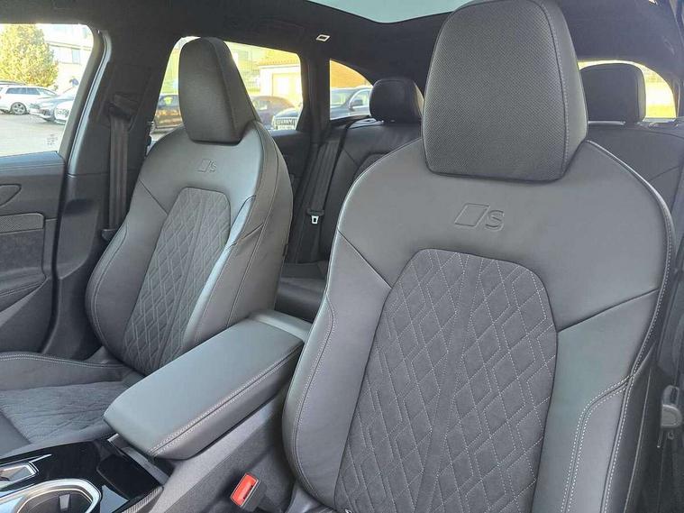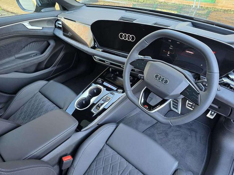 Adaptive cruise assist plus, Audi application store, Audi assistant, Audi connect emergency call and service, Audi connect with Amazon Alexa Integration, Audi digital key, Audi drive select, Audi phone box with wireless charging, Audi virtual cockpit, Automatic start/stop system with coasting functionality, Bluetooth interface, Lane departure warning with emergency assist, Luggage compartment lid with Electric opening / closing, MMI 10.9" front passenger touch display, MMI navigation plus with high resolution 14.5" OLED touchscreen colour display, Power assisted steering, Service interval indicator, Side assist and exit warning with rear cross-traffic assist and rear turn assist, Smartphone interface includes wireless Apple carplay/Android Auto, Voice control system, Quattro with ultra technology, Audi sound system impressive sound with 10 loudspeakers including centre speaker and subwoofer, 6-channel amplifier with a total output of 180 watts, DAB Digital radio, USB ports with charging function, Audi Matrix LED technology, Auto dimming rear view mirror, Automatic-dynamic headlight range control, Black door handle inserts, Black roof rails, Dipped beam, main beam, position light, dynamic indicator and cornering light, Door mirrors - electrically adjustable, heated, folding and auto dimming on both sides, Dynamic light scenarios of the coming home/leaving home function when stationary, Electric front/rear windows, Exhaust-pipe in dark chrome, Frameless auto dimming interior rear view mirror, Front illuminated aluminium inlay door sill trims with S logo, Headlight cleaning system, LED headlights Plus incl. digital daytime running lights, turning light, all-weather light, motorway light, manouevring light and intersection light, LED rear lights pro incl. brake lights, tail lights, rear number plate lights, reversing lights, continuous light strip, LED third brake light, Privacy glass, Rain and light sensors, Rear and side windows with heat insulating glass, Rear side wing doors, Rear wiper, Roof spoiler, Sport exterior inc Radiator grille, air inlets and diffuser in scandium grey as well as inlay in diffuser in selenite silver, White rhombus logo projection light in exterior mirrors, Windscreen with heat insulating and acoustic glazing, 3 seat bench in 2nd row, 3-spoke Sport leather steering wheel flat top and bottom with multifunction and shift paddles, 4 way electric lumbar support for driver and front passenger, 4 zone deluxe automatic climate control, 40:20:40 split folding rear seat bench with centre armrest and cup holders, Centre armrest, front- adjustable angle with four settings, Dinamica microfibre/Artificial leather upholstery, Electrically adjustable front seats, Front head restraints, Heated front seats, i-Size child seat mounting on the front passenger side and outer rear seats, i-Size and top tether on the outer rear seats, Manual steering wheel adjustment, Net partition, Rear headrests, Single front passenger seat, Sport front seats, Stainless steel pedals and footrest, Steering wheel trim in chrome look, S emblem, steering wheel grips in perforated leather and contrasting stitching, Ambient lighting package plus - A6, Black exterior package - A6, Drive and Park assistance package - A6, Protective warning assistance package - A6, 3x3 point rear seat belts, Acoustic vehicle alerting system, Black seat belts, Convenience key with safelock, Driver and front passenger airbags, EBD - Electronic brakeforce distribution, Electric rear child safety lock, Electromechanical parking brake, Electronic Stability Control (ESC) including ABS, ASR and EDL, First aid kit with warning triangle and vests, Front passenger airbag deactivation, Proactive occupant protection, front, side and rear, Red brake calipers, Seatbelt monitoring, Side airbags in front and rear with head airbag system and front interaction airbag, Standard 18"steel disc brakes front and rear, Tyre pressure monitoring system, Anti theft alarm, Anti-theft wheel bolts, Immobiliser, Keyless Go, Remote central locking, Accents in the interior in aluminium look, Carbon square structure inlays, Upper and lower interior elements in dinamica microfibre, Wraparound interior elements in artificial leather, Tyre repair kit,