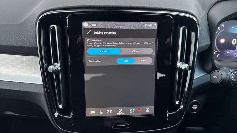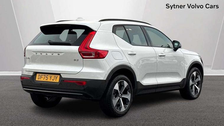 12.3" Progressive Driver Display, 9" centre console portrait touch screen, Adjustable steering wheel force, Android auto (Wired), Apple carplay (wired), Bluetooth handsfree system, Driver alert control, Driver assistance (pilot assist and adaptive cruise control), Driver awareness - Blind spot information system with steer assist, cross traffic alert with autobrake and rear collision warning and mitigation, E-call, Front and rear parking sensors, Front park assist, Google automotive services - Enabled entertainment apps, navigation with google maps, voice recognition with google assistant, Hands free power tailgate, Intelligent speed assistance, Lane keeping aid, Oncoming Lane Mitigation, Speed sensitive steering, Volvo cars services with app - Driving journal, emergency and breakdown call, engine remote start, remote door locking/unlocking and vehicle dashboard, Wireless/Inductive Mobile Phone Charging, Automatic transmission with start/stop and manual change functions, Dynamic chassis, DAB Digital radio, Steering wheel mounted remote controls, Adaptive brake lights with high level LED brake lights, Auto dimming feature for exterior door mirrors, Auto dimming interior mirror, Auto folding and heated power door mirrors, Automatic headlamp levelling, Automatic LED Headlights + Active high beam incorporating daytime running lights, Front aluminium tread plates, Front and rear electric windows, High gloss black front and rear skid plate, High gloss black front bumper deco, High gloss black mesh front grille with high gloss black surround, High gloss black window trim, Home safe and approach lighting, Integrated roof rails in high gloss black, LED front fog lights, Puddle lights, Rain sensor with automatic windscreen wiper activation, Rear side wing doors, Rear wiper, Roof antenna, Roof spoiler, Visible VIN plate, 12V socket in front tunnel console and luggage compartment, 2-Zone electronic climate control with CleanZone air quality system and pollen filter, 3 seat bench in 2nd row, 3 Spoke tailored steering wheel with chrome trim, 60/40 versatile split folding rear seat, Centre console cupholders and storage, Charcoal carpet and floor mats, Charcoal headlining, Connect suede textile/microtech upholstery, Flexible load floor and grocery bag holder, Front headrests, Front seat cushion extensions, Glovebox bag hook, Heated front seats, Height adjustable passenger seat, Height/reach adjustable steering column, High gloss centre tunnel deco, High level illumination - Front door pocket, front side step (under door), tailgate, instrument panel, front door inlay, rear courtesy&reading lights, Integrated waste bin, Isofix attachments on outer rear seats, Load cover, Load protection net, Mid level illumination - Front footwell, luggage & glovebox compartment, front cabin courtesy & reading lights, illuminated vanity mirrors+ticket holder, Multi directional lumbar support for driver and passenger seat, Power driver seat with memory + exterior mirrors memory, Rear armrest with cupholders, Rear headrests, Single front passenger seat, Underfloor luggage compartment storage, Climate pack without heated front seats - XC40, 3x3 point rear seatbelts, City safety with steering support with Pedestrian + cyclist + front collision warning with full auto brake and rear auto brake, Driver and passenger airbags, Drivers knee airbag, Electronic parking brake with auto hold, First aid kit, Front and outer rear seatbelt reminder and pretensioners, Front seats SIPS airbags, Hill descent control - Off-road drive mode, Hill start assist, IC (Inflatable Curtains) - Full Length, Passenger airbag cut-off device, Power child locks on rear doors, Road sign information display, Run off Road Protection, SIPS (Side Impact Protection System), Slippery road and hazard light alert, Stability and Traction Control with Spin control, Engine Drag Control and Corner Traction Control, Tyre pressure monitoring system, Vehicle deceleration control with Anti-lock Brake System, Electronic Brake Distribution and Emergency Brake Assist, Warning triangle, WHIPS whiplash protection system - front, 2 x Key integrated remote control central locking including with deadlocking system and auto open/close windows, Anti-theft alarm including immobiliser/volume sensor + level sensor, Keyless drive includes keyless entry and keyless start, Locking wheel nuts,