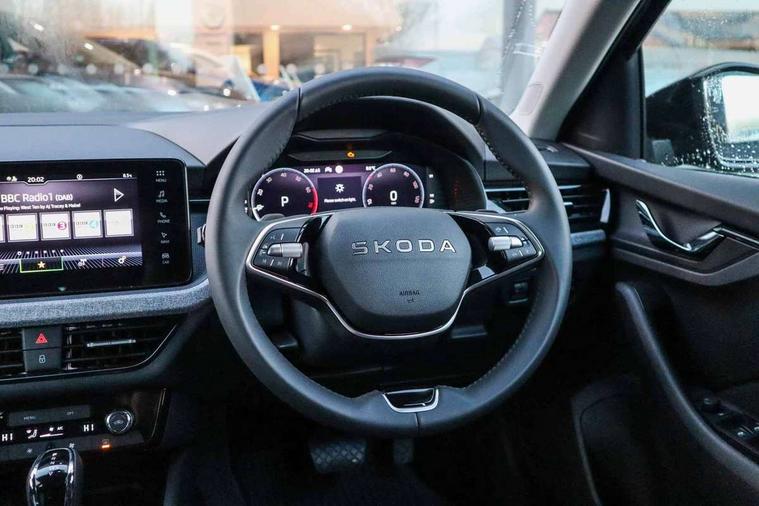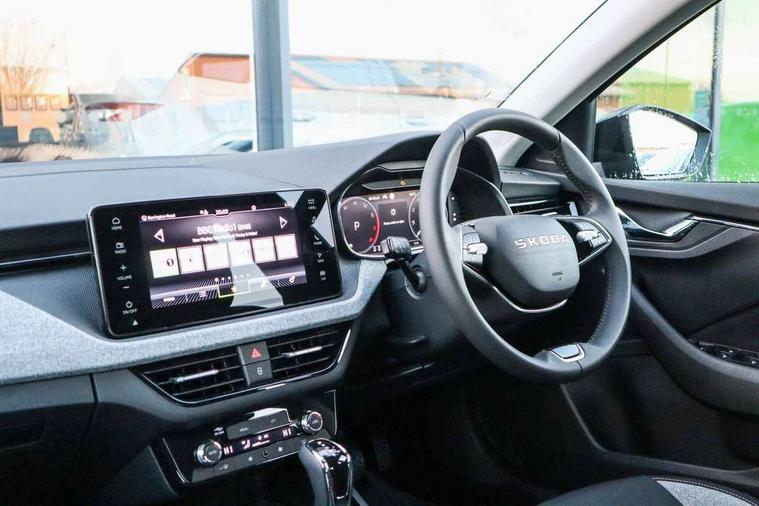 Advanced driver attention and drowsiness monitor, Bluetooth, e-Call (emergency call), Front assist system, PAS, Rear parking sensors, Rear view camera, Speed limiter, Tailgate, Traffic sign recognition, Virtual Cockpit - 10.25" digital display, Wireless smartlink, 4 USB C ports, 8 Speakers, 9.2" Skoda navigation display, DAB radio, Auto dimming rear view mirror, Automatic headlight control with manual coming and leaving home feature, Automatic intermittent wipers, Black window frames, Body colour bumpers, Body colour door mirrors and handles, Chrome moulding around grille, Front and rear electric windows, Full LED headlights, Heated rear window, LED 3rd brake light, LED daytime running lights, LED front turning lights, LED high beam, LED low beam, Rear LED fog light, Rear side wing doors, Rear wiper, Tinted windows, Unique dark chrome design logo on alloy wheels, 12V socket in luggage compartment, 3 seat bench in 2nd row, Black / Grey armrest stitching, Black hotstamping, Cargo elements, Chrome inner door handles, Door inserts in satin black, Driver and passenger sun visors with vanity mirror, Dual zone climate control, Front and rear roof lights, Front centre armrest, Front head restraints, Glasses storage in roof liner, Height adjustable driver seat, Height adjustable passenger seat, Ice scraper, Illuminated glove compartment, Inner circulation control with pollen filter, ISOFIX for front passenger seat, Isofix preparation for back seats, Leather gearknob and handbrake lever, Loft cloth upholstery, Luggage net under rear parcel shelf, Manual lumbar support for front seats, Net package and top tether hooks in boot space, Pocket on the back of both front seats, incl. mobile phone pockets, Single front passenger seat, Skoda lettering on steering wheel, Textile floor mats, Third rear headrest, Ticket holder, Top tether for front passenger seat, Umbrella in driver's door, 3x3 point rear seatbelts, ABS, Child locks, Curtain airbags and front side airbags, Disc brakes, Driver and front passenger airbags, ESP, Hill hold control, Manual leather parking brake, One tone horn, Passenger airbag switch off function, Seatbelt reminder for driver and front passenger, Tyre pressure monitoring system, Anti theft alarm system with interior monitoring, backup horn and towing protection, Anti-theft wheel bolts, Remote central locking with 2 remote folding keys, SAFE function for remote central locking, Decord pad, door inserts Kota uni,