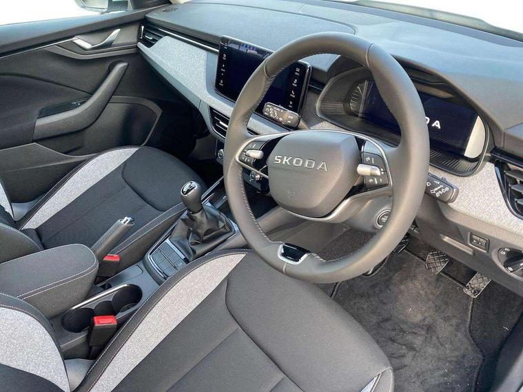 Advanced driver attention and drowsiness monitor, Bluetooth system, E-call, Front assist system, PAS, Rear parking sensors, Rear view camera, Service indicator, Speed limiter, Traffic sign recognition, Virtual cockpit with 10.25" display, Wireless smartlink, 4 USB C ports, 8 Speakers, 9.2" Skoda navigation display, DAB Digital radio, Auto dimming rear view mirror, Automatic headlight control with coming home and leaving home feature, Black roof rails, Body colour bumpers, Body colour door mirrors and handles, Chrome grille surround, Front and rear electric windows, Full LED headlights, Heated rear window, LED brake lights, LED daytime running lights, LED front turning lights, LED high beam, LED low beam, LED third brake light, Rear LED fog light, Rear side wing doors, Rear wiper, Ticket holder inside windscreen, 12V socket in luggage compartment, 3 seat bench in 2nd row, Black hotstamping, Cargo elements, Chrome inner door handles, Driver and passenger sun visors with vanity mirror, Dual zone climate control, Front and rear roof lights, Front centre armrest, Front head restraints, Glove compartment with illumination, Height adjustable driver seat, Height adjustable front passenger seat, Ice scraper, Inner circulation control with pollen filter, ISOFIX on front passenger seat, Isofix preparation for back seats, Krepp recycled decor inserts, Leather gearknob and handbrake lever, Loft cloth upholstery, Manual lumbar support for front seats, Net package and top tether hooks in boot space, Net under rear shelf, Overhead glasses storage compartment, Pocket on the back of both front seats include mobile phone pockets, Rake/reach adjustable steering wheel, Reading lights, Satin black door inserts, Single front passenger seat, Textile floor mats, Third rear headrest, Top tether for front passenger seat, Umbrella in driver's door, 3x3 point rear seatbelts, Airbags - driver and front passenger, Disc brakes, ESP, Extended and predictive pedestrian/cyclist protection, Front passenger airbag deactivation switch, Front side airbags with curtain airbags, Hill hold control, Manual leather parking brake, Manual rear child locks, One tone horn, Seatbelt reminder for driver an co-driver, Traction control, Tyre pressure monitor, Anti-theft alarm system with interior monitoring, backup horn, towing protection and remote central locking with SAFE system, Anti-theft wheel bolts, Electronic engine immobilizer,