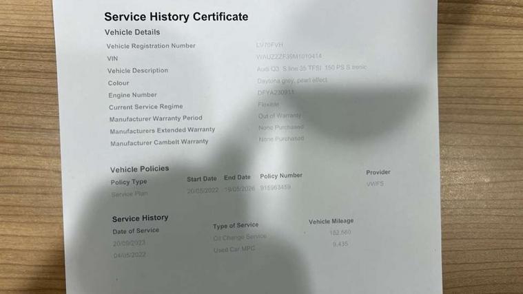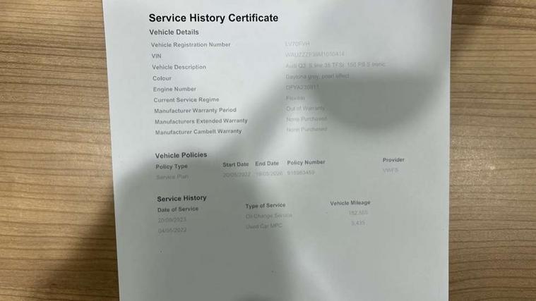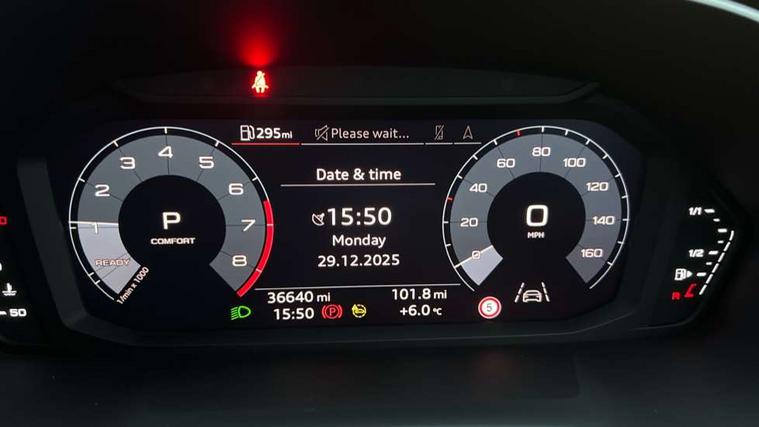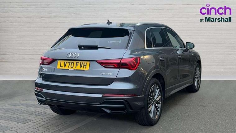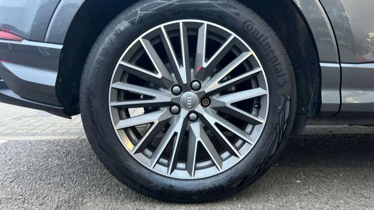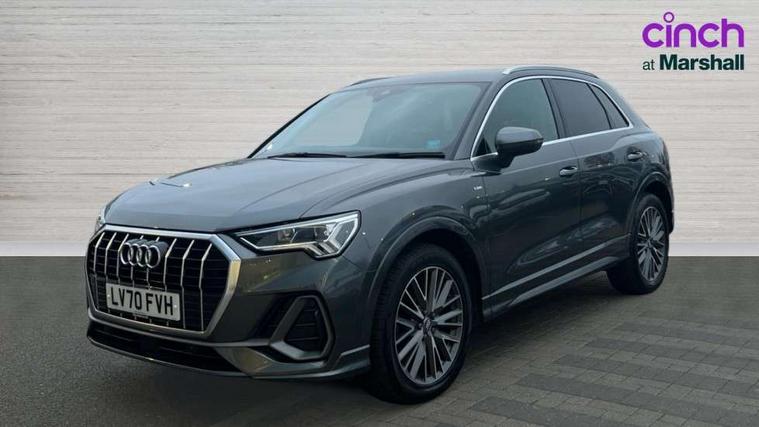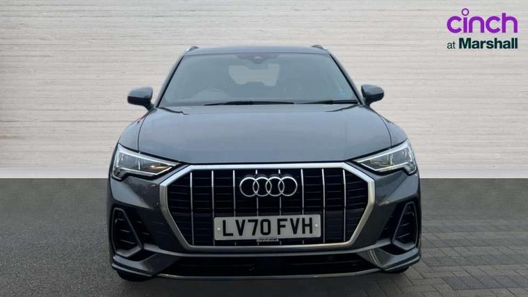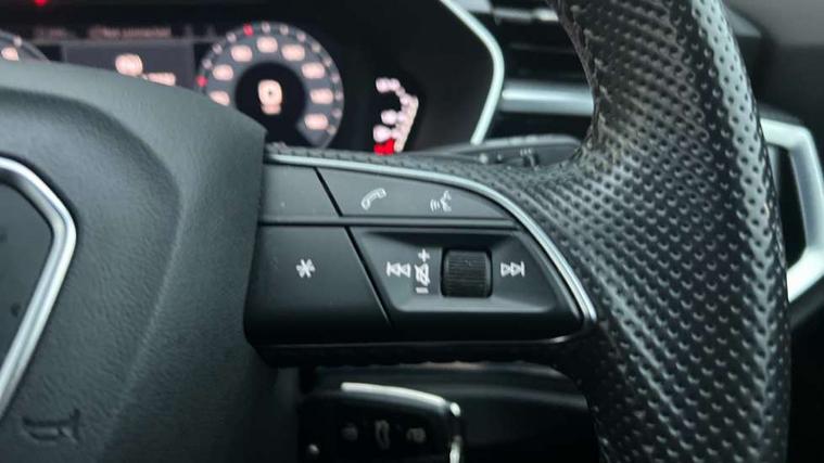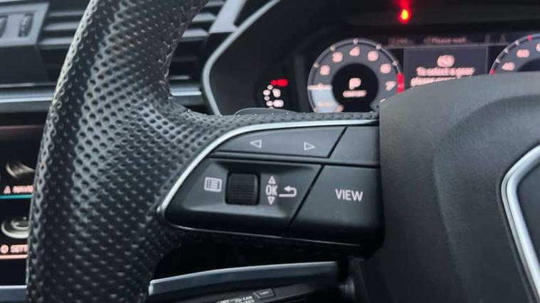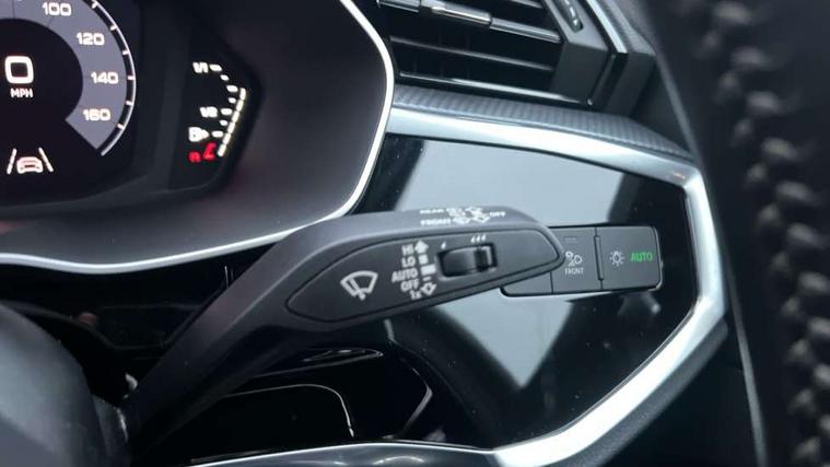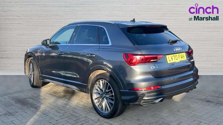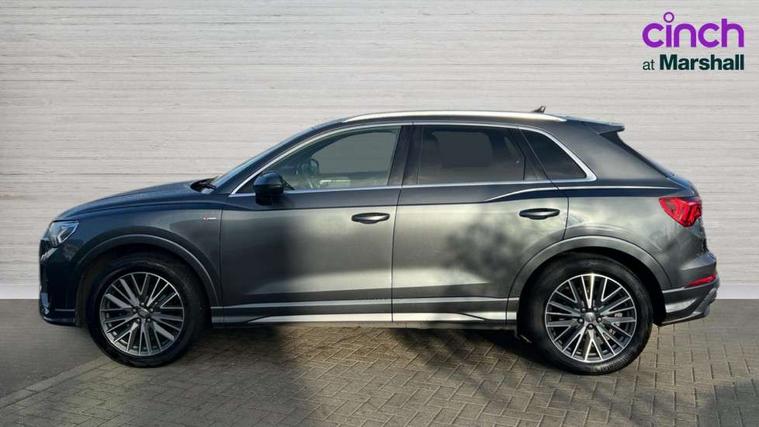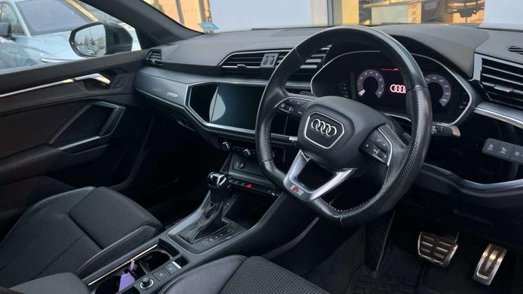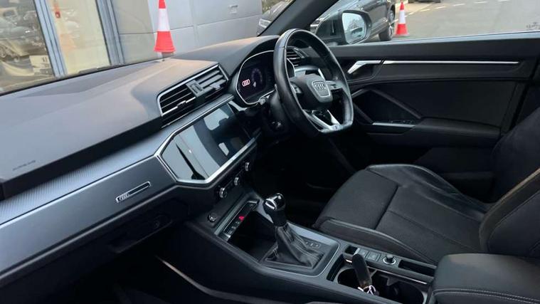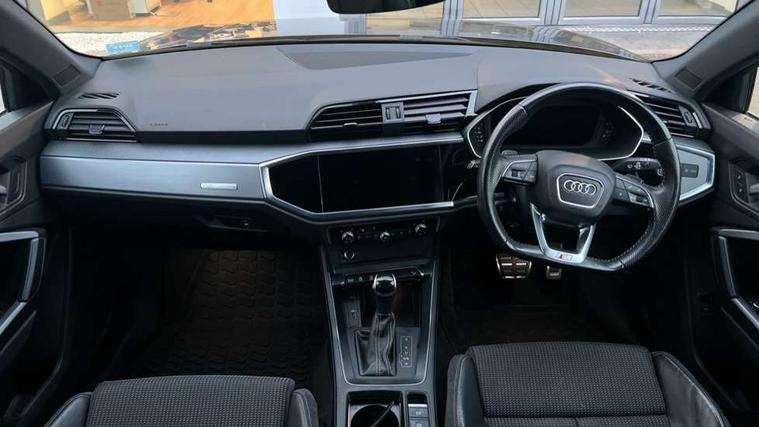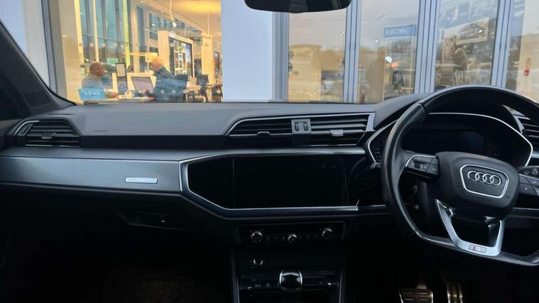 Audi connect safety and service (e-call), Audi drive select, Audi lane departure warning, Audi side assist, Audi smartphone interface includes wireless Apple carplay/Android Auto, Audi Virtual Cockpit - 10.25" display, Bluetooth interface, Camera based traffic sign recognition, MMI Navigation Plus with high resolution 10.1 inch touchscreen colour display, Power operated tailgate, Progressive steering, Service interval indicator, Start stop system with recuperation, Voice control system with natural language interaction, 48V Mild hybrid technology, Sports suspension, 1 x USB type C and 1 USB type A charging points, 6 passive loudspeakers, DAB digital radio module, Acoustic windscreen, Aluminium roof rails, Aluminium window trim, Auto dimming frameless rear view mirror, Body coloured bumpers, Electrically folding, adjustable and heated door mirrors with integrated LED side indicators and kerb view function for passenger side, Front and rear electric windows, Front fog lights, Front side air inlets in matt platinum grey, Front spoiler blade in matt platinum grey, Grille vertical bars in aluminium silver/Matt, High gloss black finish B and C pillars, LED headlights with LED daytime running lights and dynamic rear indicator, LED rear lights, Privacy glass dark tinted rear and rear-side windows (from B-pillar backwards), Rain and light sensors, Rear diffuser strip in matt titanium black, S line badges on front wings, S Line front and rear bumpers, Side skirt insert in matt Platinium grey, Silver chrome grille surround, Titanium black radiator grille, 12V socket in rear centre console, 40:20:40 folding with manual adjustment for 60:40 forwards/backwards position and backrest angle, Adjustable rear seat bench/backrest with centre armrest and cupholder, Black cloth headlining, Dual zone electronic climate control, Front and rear black floor mats with contrast stitching in rock grey, Front and rear headrests, Front and rear roof module including reading lights, Front centre armrest, Glove compartment lighting, Height and reach adjustable steering wheel, Illuminated door sill trims with S logo, ISOFIX child seat mounting for front passenger with airbag deactivation and outer rear seat including top tether attachment point for outer rear seats, Luggage compartment light, Manual front seats with height adjustment, Perforated leather gearknob, Stainless steel luggage compartment sill finisher, Stainless steel pedals, Tool kit, Non smoking pack - Q3, 3x3 point rear seatbelts, 6 airbags - Driver, front passenger, curtain and side windows, Electrically operated child locks on rear doors, Electromechanical parking brake, Electronic stabilisation control including ABS, ASR and EDL, Hill descent control, Hill hold assist, Pre sense basic, Seatbelt monitoring, Tyre pressure warning, Warning triangle and first aid kit, Anti theft alarm, Anti theft wheel bolts, Audi pre-sense front with pedestrain and cyclist recognition, Remote central locking, Dark matt brushed aluminium inlay, Leatherette door armrest, MMI touch colour display in glass look, black with surround in aluminium look, Tyre repair kit,