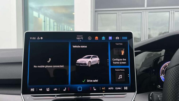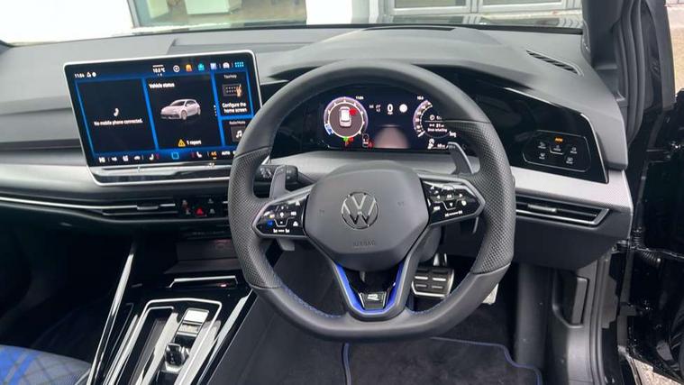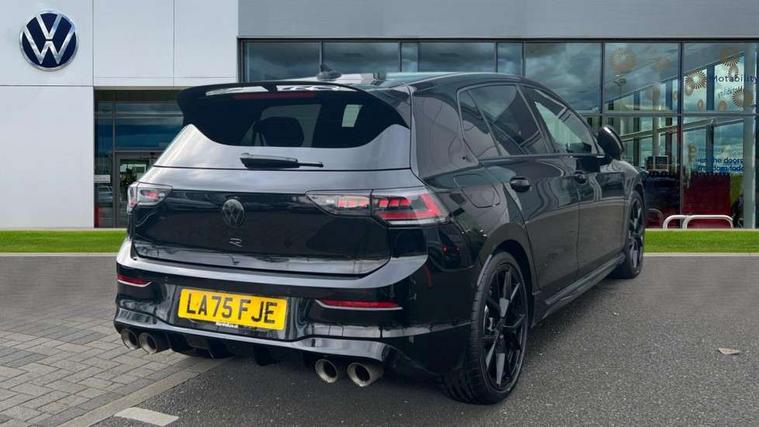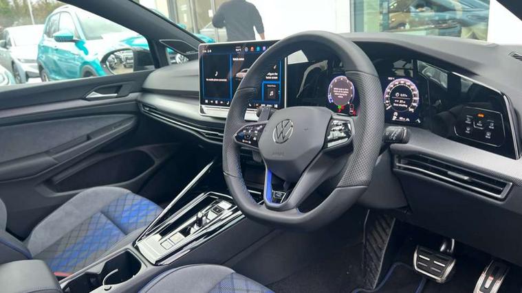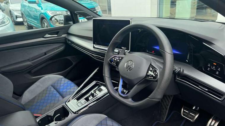 Activated carbon canister, Adaptive cruise control (ACC), Advanced driver attention and drowsiness monitor, Dynamic road sign display, E-Sim card for online connectivity, eCall emergency call system, Electronic maximum speed limit increased to 270 km/h, includes driving Modes 'drift' and 'special', larger roof spolier and GPS laptimer + G-Meter, Multi-color Digital cockpit pro, selection of different info profile possible, Multifunction front facing camera for distance control, Navigation system, Oncoming vehicle braking when turning including swerve support, Progressive steering, Side assist blind spot lane change system, rear traffic alert and exit warning system, Speed limiter, Speedo, rev counter, electronic odometer, trip, service interval display, exterior temperature and fuel gauge, Traffic jam assist, Voice enhancer and voice control, Warning signal and warning light for front and rear seatbelts not fastened, We connect plus preparation, We connect preparation, Wireless app connect, All wheel drive - 4Motion, Petrol Particulate Filter, Start-stop system with battery regeneration (recuperation - energy recovery during braking), XDS electronic differential lock for improved traction and handling, 2 USB C ports in front, 2 USB charging sockets on the centre console in the rear charging capacity upto 45W, Digital radio reception (DAB), Diversity antenna for FM reception, Gaming platform via car app, Infotainment system with 12.9" display, Mobile phone interface with inductive charging feature, 3rd brake light, Auto dimming rear view mirror, Automatic headlamp activation with Coming home and Leaving home feature, Black badge on B-pillar, Black mirror caps, Black strips on radiator grille and headlights, Body colour door handles, Darkened headlights, Darkened R Logos and VW logos in front, rear and on fender, Exterior mirrors convex on the left and aspherical on the right, Front and rear electric windows, Front fog lamps and cornering light, Heat insulating windshield made of laminated glass, Illuminated lighting animation with wake up/goodbye scenario, LED matrix headlights with ambient light V2, advanced high beam, dynamic range contol with cornering, LED rear lamp with indicator, poor weather, LED separate daytime running light, Light assist with High beam control, R name plate, Rain sensor, Rear fog light on one side and reversing lights on both sides, Rear side wing doors, Rear tinted glass 65% light absorbing from B pillar backwards, Rear windscreen washer and wiper with interval delay, Remote electrically foldable door mirrors, puddle lights and reverse activated passenger's door mirror, Welcome light with surround lighting, 12V socket in front centre console, 12V socket in luggage compartment, 3 rear head restraints, 3 seat bench in 2nd row, 30 colour ambient lighting, illuminated center console storage compartment in front, Air care climatronic 3 Zone automatic climate control with rear air conditioning control panel, Aluminium gearshift handle, Brushed stainless steel pedals, Chrome plated radiator grille inserts, air vent surrounds and light switch surrounds, Entry lights, Front + rear black carpet mats, Front centre armrest, Integrated front head restraints, ISOFIX anchors for child seats on outer rear bench seats and on front passanger seat compatible for i-Size, Luggage compartment lighting, Rear cupholder and loadthough, Single front passenger seat, Soul black instrument panel, Soul black roof lining, Split folding backrest with centre armrest and unsplit rear seat bench, Sun visors with illuminated vanity mirrors, Driver assistance pack - Golf Estate/Hatchback Auto, R styling pack - Golf, Technology park and comfort pro package - Golf Hatchback, 3 point height adj front seatbelts + pretensioners, 3 rear three point seatbelts, ABS, Autonomous emergency braking front assist with pedestrian and cyclist monitoring, Child locks on rear doors, Driver and front passenger airbag with front passenger airbag deactivation, Electronic parking brake with auto hold, ESC (Electronic Stability Control), Extended pedestrian protection measures, Front and rear black brake calipers with darkened R-logo, Hill start assist, Rear disc brakes, Two tone horn, Tyre pressure loss indicator, Volkswagen roadside assistance, Anti theft wheel bolts, Preparation for alcohol interlock, Sporty vehicle dynamics, Tool kit for tyre mobility set, Tyre mobility kit Includes 12V compressor and tyre sealant, Wheel hub cover with darkened R-logo,