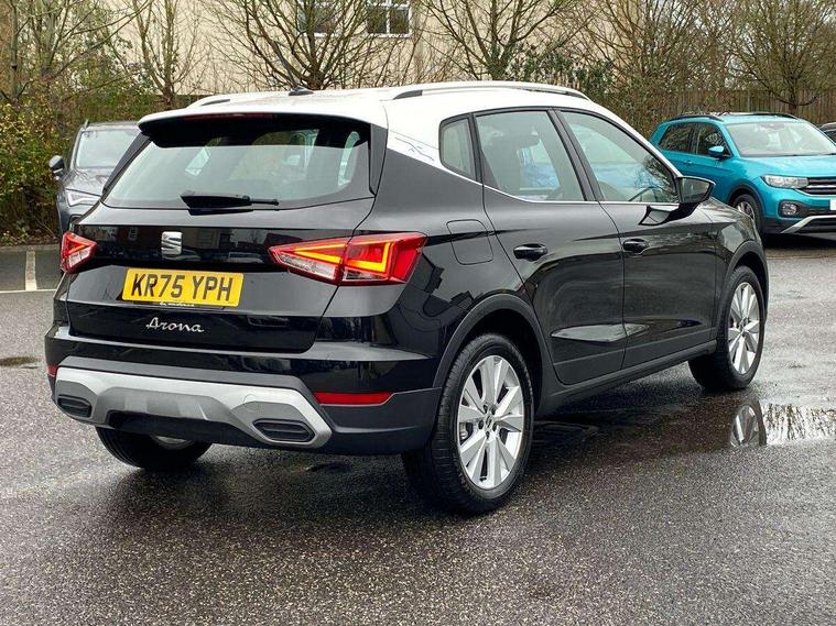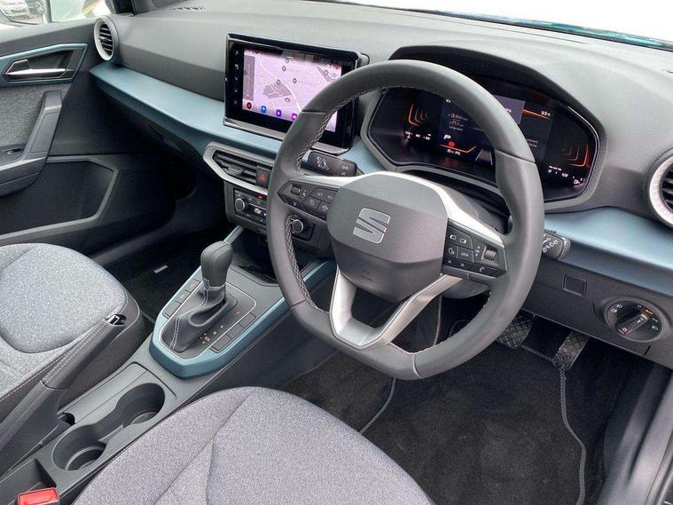 'Lights On' Reminder warning buzzer, 8" Digital cockpit, Digital clock, E-call, Electric speed sensitive power steering, Full link smartphone integration with mirror link, wireless apple carplay, Google android auto + USB Type C cable for apple and android devices, Lane keeping system, Low fuel warning light, Outside temperature display, RPM counter, Trip computer, Wireless phone charger, 9.2" colour touchscreen with navigation system, voice control and USB port (type c), Bluetooth interface for hands free and audio streaming, DAB digital radio and AM/FM radio, Steering wheel mounted audio controls, Anti theft roof antenna, Auto dimming interior rear view mirror, Automatic activation of hazard warning lights, Body coloured bumpers, Body coloured door handle inserts, Chrome roof rails and window surrounds, Electric front/rear windows, Electrically adjustable, heated and folding door mirrors, Front fog lights with cornering function and rear fog light, FULL LED automatic headlights with dynamic headlight range control, coming and leaving home, LED daytime running lights, Hidden exhaust pipe, LED rear tail lights and licence plate lights, Protective side mouldings, Rain sensing wipers, Rear side wing doors, Rear spoiler, Rear window wash/wipe, Roof colour door mirrors, Third brake light, Visible VIN plate, 2 cupholders, 3 seat bench in 2nd row, 60/40 split folding rear seat, Aircare filter, Black interior roof, Cloth upholstery, Double boot floor, Driver sunvisor with covered mirror + card holder, Dual zone climate control, Front courtesy light with front reading lights, Gear shift indicator, Height adjustable front seats, Height/reach adjustable steering column, Illuminated air vent surrounds, Illuminated boot, Instrument lighting with brightness control, Interior ambient lighting, Interior light in footwell, central console and door panel, ISOFIX points in outer rear seats with top tether anchorage points, Leather steering wheel/gear knob/handbrake, Passenger sunvisor with vanity mirror, Potentiometer, Single front passenger seat, Storage net on centre console, Two front and three rear height adjustable headrests, Interior chrome pack - Arona, Safe and driving pack (S) - Arona, Safety and driving pack (M) - Arona, Storage pack - Arona, 3 point seatbelts on all rear seats, ABS, Active front headrests, Child locks on rear doors, Driver and front passenger airbags with front passenger airbag de activation, front side and curtain airbags, Emergency Brake Assist (EBA) and front assist, Front and rear seatbelt reminder, Hill hold control, Multi-Collision braking, Tiredness recognition system, Traction control, Tyre pressure monitoring system, Alarm with back up horn with tow away protection, Deadlock, Electronic engine immobiliser, KESSY Keyless entry and go, Locking wheel bolts, Remote central locking, Titan black dashboard, 17" Dynamic alloy wheels,