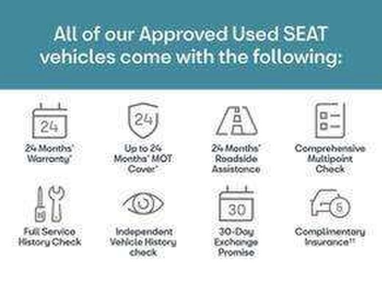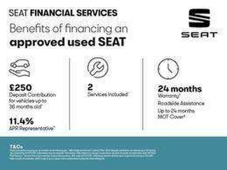 'Lights On' Reminder warning buzzer, 8" Digital cockpit, 9.2" touchscreen navigation system with type C USB socket, Voice control and DAB/AM/FM radio, Auto start and stop system, Bluetooth audio streaming with handsfree system, Cruise control, Digital clock, E-call, Full link smartphone integration with mirror link, wireless apple carplay, Google android auto + USB Type C cable for apple and android devices, Lane assist, Low fuel warning light, Outside temperature gauge, Power Steering, Rear parking sensor, Seat connect plus with safety, service, remote and online, SEAT logo boot release, Speed limiter, Traffic sign recognition, Trip computer, Comfort suspension, Auxiliary input socket, Radio/MP3 player, SD card slot, Steering wheel mounted controls, Anti theft roof antenna, Body colour bumpers, Body colour door handles, Body colour door mirror caps, Dimming interior rear view mirror, ECO LED automatic headlights and LED daytime running lights, Electric front windows, Electric headlight adjustment, Electrically adjustable door mirrors, Front/rear fog lights, LED tail lights, Rain sensor, Rear side wing doors, Rear wiper, Third brake light, 3 seat bench in 2nd row, 60/40 split folding rear seat, Air conditioning with dust and pollen filter, Chrome interior detailing and grey headlining, Cloth upholstery, Comfort seats, Front courtesy lights, Front cupholders x 2, Front reading lights, Gear shift indicator, Glovebox, Grey interior air vents, Height adjustable front and rear headrests (five), Height adjustable front seats, Height/reach adjust steering wheel, Illuminated boot, Instrument lighting with brightness control, Isofix, Leather multifunction flat bottomed sports steering wheel, Passenger sunvisor, Single front passenger seat, Sunvisors with mirror and driver side card holder, Safety and driving pack (S) - Ibiza, 3 point seatbelts on all 3 rear seats, ABS, Active front headrests, Child locks on rear doors, Electronic stability control, Energy recovery system, Front assist forward collision warning and autonomous emergency braking, Front driver and passenger side airbags with curtain airbag and front passenger airbag deactivation, Hill hold control, Multi-Collision braking, Seat belt reminder for front and rear seats, Tiredness recognition system, Tyre pressure monitoring system, Electronic engine immobiliser, Locking wheel bolts, Remote central locking + deadlocks, 16" Design machined alloy wheels in Nuclear grey,