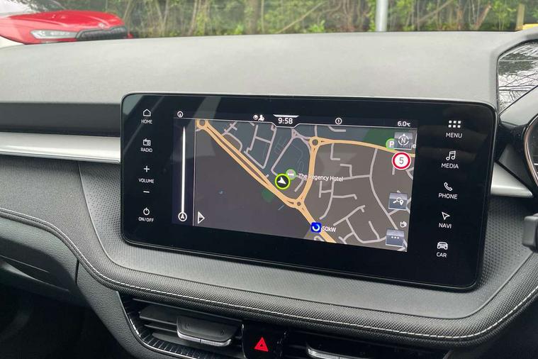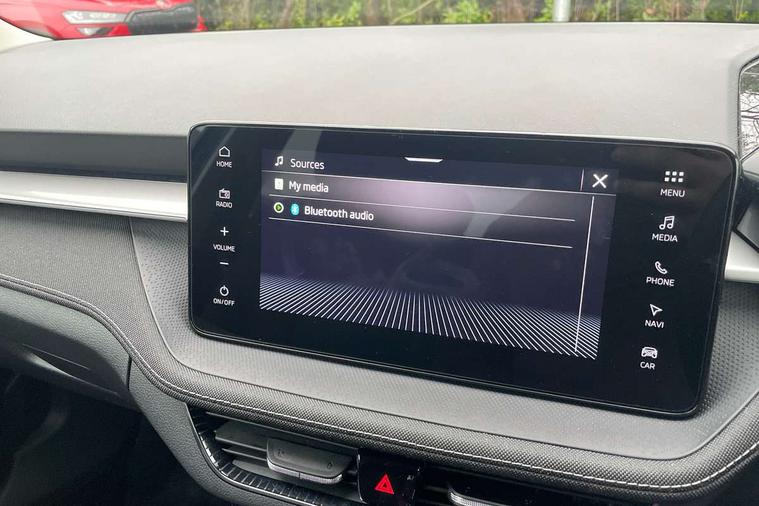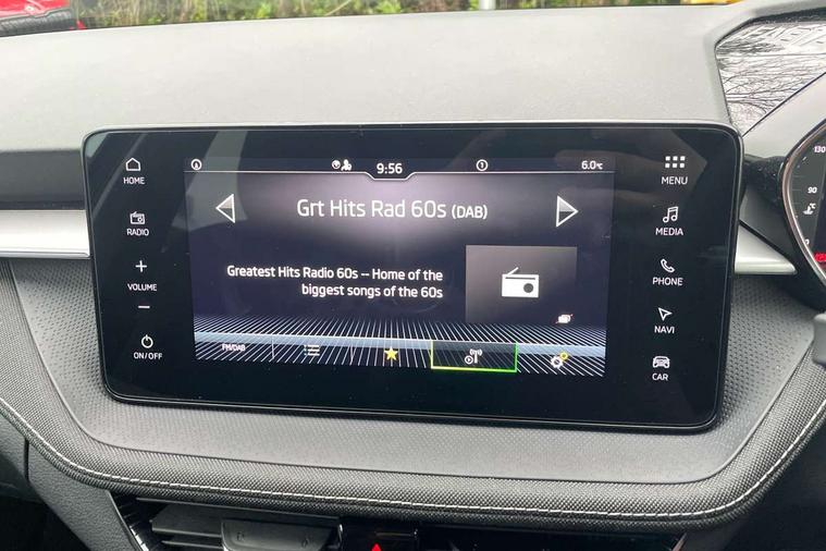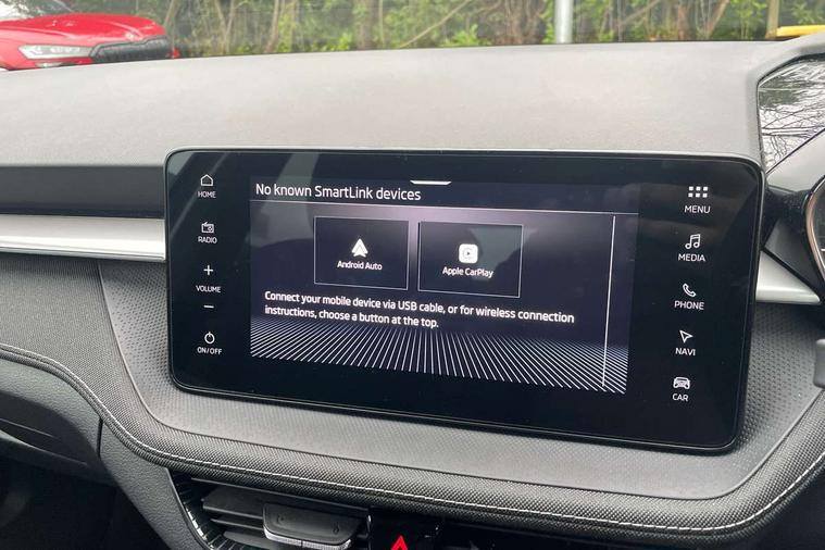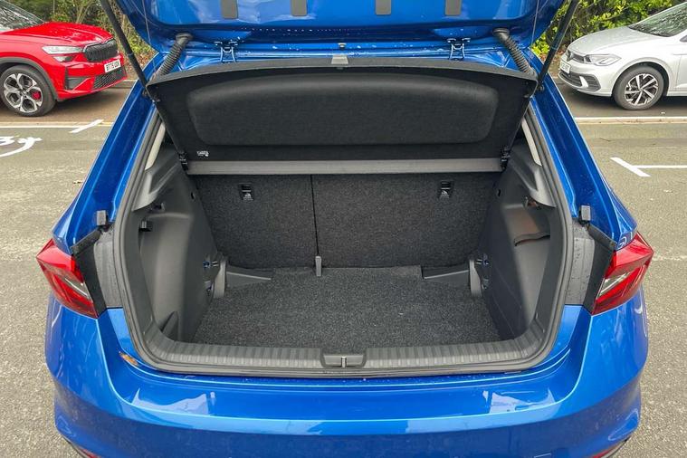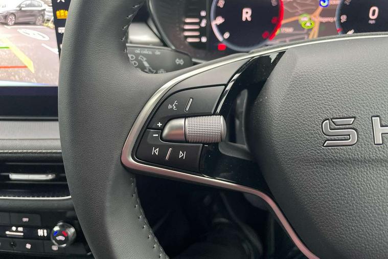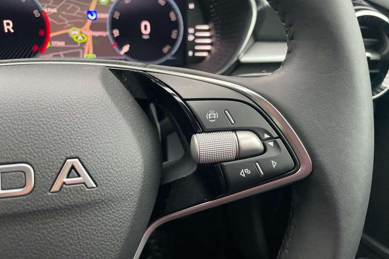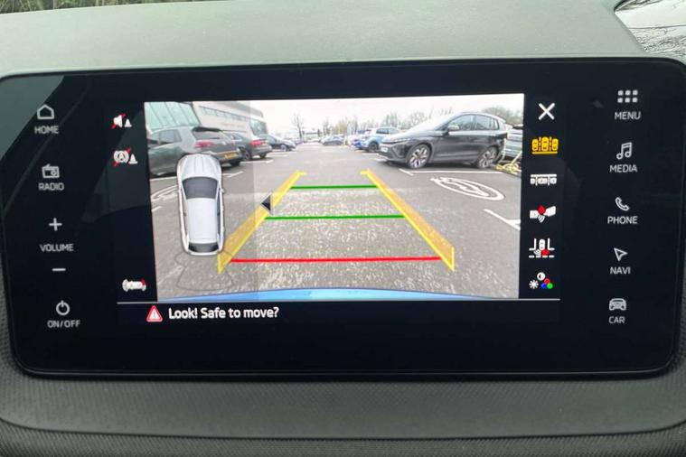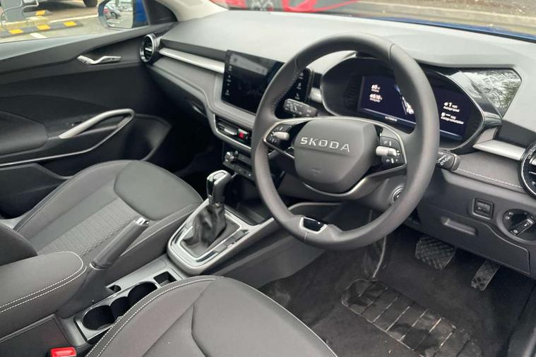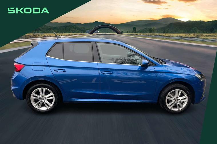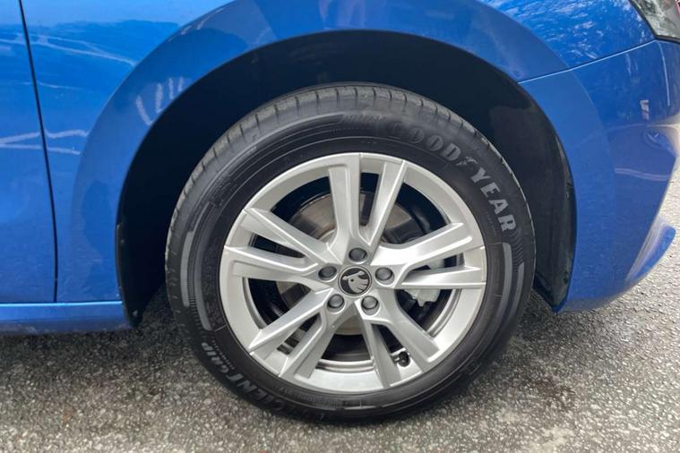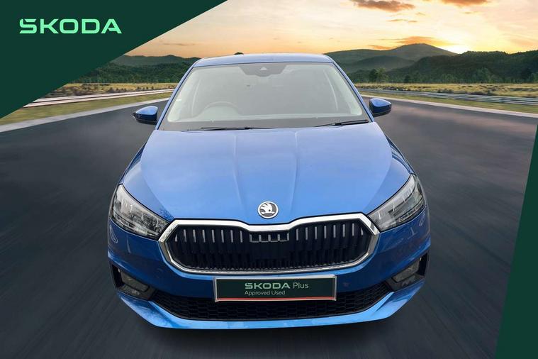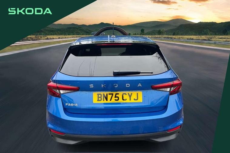 Advanced driver attention and drowsiness monitor, Bluetooth connection, Driver alert system, Electromechanical power steering, Exterior temperature gauge, Service interval indicator, Traffic sign recognition, Virtual cockpit with 10.25" colour display, Wireless SmartLink for Apple CarPlay and Android Auto, 6 Speakers (4 in front and 2 in rear), 9.2" colour display skoda navigation system with voice control and web radio, Auxiliary socket for external MP3 player, DAB digital radio reception, Auto dimming rear view mirror, Body colour door mirrors, Body coloured bumpers, Chrome window surround, Door mirror integrated indicators, Front and rear electric windows, Front window wiper intermittent control, Headlight range control - Automatic, Ice scraper in fuel cap, LED 3rd brake light, LED daytime running lights with coming and leaving home feature, LED rear lights, Privacy glass, Rear LED fog light, Rear side wing doors, Rear window wiper with washing nozzles, Roof mounted spoiler, SKODA tailgate lettering in chrome, Unique dark chrome design logo on alloy wheels, 2 LED reading lights in front and rear, 3 rear headrests, Backrest split and folding, Central console with fixed cup holder and storage box, Chrome handbrake release button, Comfort seats, Door sills with fabia badging, Dual zone air conditioning with climatronic electronic control, Fabric upholstery, Front centre armrest, Gearshift knob/handle in leather, Grain satin black interior door handles, Hand brake lever handle in leather, Height adjustable front headrests, Height adjustable front seats, Height adjustable steering wheel, ISOFIX and TopTether anchorage points to the outer rear seats, ISOFIX and TopTether on the front passenger seat, Luggage compartment lighting, Manually adjustable lumbar support in front seats, Pollen filter, Rear seat bench unsplit, Single front passenger seat, Skoda lettering on steering wheel, Storm grey headlining, Sun visors with mirror and airbag label on passenger side, Textile floor mats, Ticket holder, Umbrella in drivers door, Ambient lighting pack - Fabia Hatchback, 3-point height adjustable front seats belts with pretensioner and force limiter, Automatic warning lights in case of crash, Driver and passengers airbag with switch off function, e-Call+, ESC including ABS, MSR, ASR, EDS, HBA and XDS, Front and rear seat belt warning, FRONT ASSIST (AEB City and AEB Inter Urban), Front side airbags, Head airbags, Hill hold control, One tone horn, Pedestrian protection, Three rear 3-points safety seat belts with pretensioner and force limiter including stop function for outer rear seat belts, Tyre pressure monitoring system, Anti-theft alarm system including immobiliser, interior monitoring, backup horn, and towing protection, Central locking with radio remote control, interior controls, SAFE function and 2 foldable keys, Chrome edged air vents, Grain satin black central console cover, Metallic grey upper decorative trim, Satin black door and side trim panel in front, Textile microsuede grey lower decorative trim with art grey stitching, Anti-theft wheel bolts protection, Super-low rolling resistance tyres,