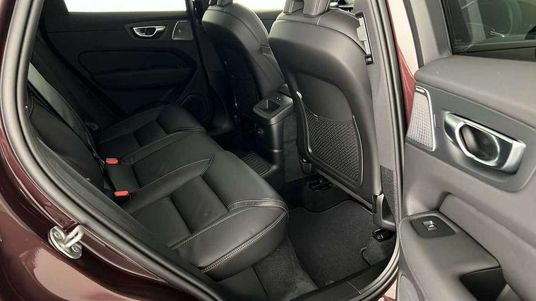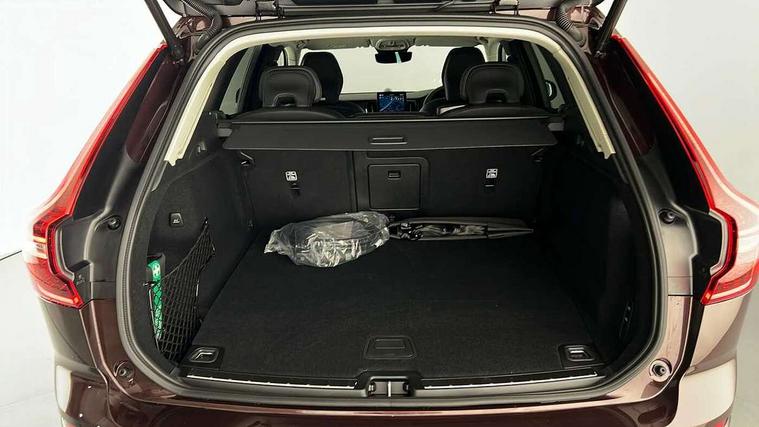 11.2" centre console touch screen, 12.3" Progressive Driver Display, 360 degree surround view parking camera with side proximity sensors, Adaptive cruise control, Adjustable steering wheel force, Android auto (Wired), Apple carplay (wired), Bluetooth handsfree system, Drive mode settings, Driver alert control with lane keeping aid, Emergency services call system, Front and rear park assist, Google Automotive Services, Intelligent speed assistance, Oncoming Lane Mitigation, PAS, Power operated tailgate with handsfree opening and closing, Service interval indicator, Speed limiter, Speed sensitive steering, Trip computer, Volvo cars services with app, Volvo on call with App, Wireless/Inductive Mobile Phone Charging, 2 phase on board charger 6.4kW (home charging limited to 3.7kW), 6m 3 phase 16amp Type 2 / mode 3 charge cable, 8 speed automatic transmission with start/stop + manual change functions, Active four-C chassis + four corner adaptive damper with electronic rear air suspension, Electric rear axle drive, Recharging port located in nearside front wing, DAB Digital radio, Low speed exterior sound speaker, Premium Sound by Bowers and Wilkins, dirac live, dolby pro logic II surround sound, 14 speakers/1100W output and subwoofer, Steering wheel remote infotainment controls, Active bending headlights with adaptive shadow technology, Adaptive brake lights with high level LED brake lights, Auto dimming interior + exterior mirrors, Automatic headlight levelling system, Automatic LED Headlights + Active high beam incorporating daytime running lights, Dark tinted windows for rear side windows and cargo area, Electric adjustable/heated/auto power folding door mirrors, Electric front+rear windows, Front aluminium tread plates, Headlight cleaning system, High gloss black door mirrors and window surround, High gloss black front and rear bumper decoratives, High gloss black mesh front grille with high gloss black surround, Home safe and approach lighting, Integrated roof rails in high gloss black, Power glass tilt and slide panoramic sunroof with sun curtain, Puddle lights, Rain sensor with automatic windscreen wiper activation, Rear side wing doors, Rear wiper, Roof antenna, Roof spoiler, Tinted windscreen, Visible VIN plate, 12V socket in front tunnel console and luggage compartment, 2 zone electronic climate control with Clean zone air quality system and pollen filter, 3 seat bench in 2nd row, A-pillar parking ticket holder, Air purifier particulate matter (PM) 2.5 filter, B Pillar ventilation, Bright metal luggage scuff plate, Centre console cupholders and storage, Charcoal floor mats, Front and rear courtesy lights, Front and rear door pocket illumination, Front cupholder illumination, Front footwell illumination, Front reading lights, Front seat cushion extensions, Glovebox compartment with illumination, Head restraints for all seats, Heated front seats, Heated steering wheel, Height/reach adjustable steering column, Illuminated luggage compartment, Illuminated vanity mirrors + ticket holder, Inner door release handle illumination, ISOFIX attachment on outer rear seats, Load cover, Load protection net, Multi directional lumbar support, Power driver seat with memory + exterior mirrors memory, Power folding rear headrests, Power passenger seat with memory, Rear armrest with cupholder, Rear footwell and front and rear side step illumination, Rear reading lights, Rear seat concealed storage, Single front passenger seat, Tailgate illumination and ambient door lighting, Underfloor stowage compartment, Versatile split folding rear seat - 60/40, Driver assist pack without Adaptive cruise control - XC60, 5 three point seatbelts, City safety with steering support with Pedestrian + cyclist + front collision warning with full auto brake and rear auto brake, Drivers knee airbag, Dual stage driver/passenger airbags, Electronic parking brake with auto hold, First aid kit, Front seats SIPS airbags, Hill descent control - Off-road drive mode, Hill start assist, IC (Inflatable Curtains) - Full Length, Passenger airbag cut-off device, Power child locks on rear doors, Run off Road Mitigation, Run off Road Protection, Seatbelt reminder and pretensioners, SIPS (Side Impact Protection System), Slippery road and hazard light alert, Stability and Traction Control with Spin control, Engine Drag Control and Corner Traction Control, Tyre pressure monitoring system, Vehicle deceleration control with Anti-lock Brake System, Electronic Brake Distribution and Emergency Brake Assist, Warning triangle, WHIPS whiplash protection system - front, Anti-theft alarm including immobiliser/volume sensor + level sensor, Key integrated remote control central locking + fuel flap with deadlocking system and auto open/close power windows, Keyless Drive (includes Keyless Entry and Keyless Start), Locking wheel nuts, Private locking for tailgate, Tailored instrument panel with contrast stitching, Summer tyres, Tyre sealant kit + 12v compressor,
