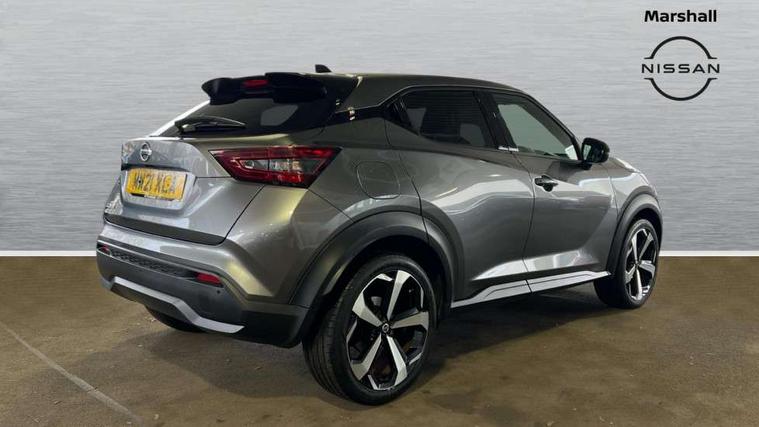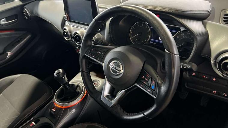 7" full colour TFT screen combimeter, 8" infotainment colour display with touch screen, Apple CarPlay and Google Android auto, Drive modes select (Eco, normal and sport), Emergency and breakdown call, Front parking sensor, Idle start/stop system, Intelligent lane intervention, Lane departure warning system, Nissan connect nav with TomTom traffic, Nissan connect services and Wifi connection, Outside temperature sensor, Power Steering, Rear parking sensor, Traffic sign recognition, Trip computer, Gasoline particulate filter, Bluetooth system, USB, Aux-in and 12V socket, Bose personal plus audio system with 8 speakers(4 speakers and 2 headrest speaker for driver and passenger seats), Bose personal sound stage control, DAB Digital radio, Rear console USB port, Auto dimming interior rear view mirror, Automatic hazard signal with emergency stop signal, Body colour bumpers, Body colour door handles, Electrically adjustable door mirrors with integrated indicators, Follow me home headlights, Front and rear electric window with one touch driver window, Heated and auto folding door mirrors, High beam assist, LED daytime running lights, LED front fog lights, LED headlamps, LED rear fog lamp, LED rear lamps, Rain sensor windscreen wipers, Rear privacy glass, Rear spoiler, Rear wiper, Thermaclear heated windscreen, Three blink turn signal, 3 height adjustable rear headrests, 60/40 split folding rear seat, Automatic climate control, Card holder on driver sunvisor, Cloth/Synthetic leather upholstery, Door ambient lighting, Driver and passenger sliding and reclining seats, Driver seat back pocket, Driver side rear coat hanger, Driver/passenger sunvisors and vanity mirrors, Front and rear cabin lighting, Front armrest, Front door pockets with bottle holders, Front head restraints, Front passenger isofix child seat anchorage point, Front/rear passenger grab handles, Gear console ambient circle lighting, Grey synthetic leather kneepad, Heated front seats, Height adjustable driver's seat, Height adjustable passenger seat, Internal chrome door handles, Leather gearshift knob, Leather steering wheel, Luggage board, Luggage space lighting, Monoform sporty seats, Multifunction steering wheel, Passenger seat back pocket, Rear door bottle holders, Telescopic steering wheel adjustment, Two cupholders in front centre console, Two rear isofix child seat anchorage points with top tether, Voice recognition switch on steering wheel, Welcome light and console tray ambient lighting, Advanced safety shield pack - Juke, ABS with EBD and brake assist, Active ride control, Active Trace Control, Driver and passenger airbags, Driver and passenger side airbags, Electric handbrake with auto hold function, Electronic Stability Programme (ESP), Front and rear curtain airbags, Height adjustable seatbelts, Hill start assist, Intelligent emergency braking with pedestrian and cyclist recognition, Seatbelt reminder for driver/front passenger and rear seats, Single tone horn, Three 3 point rear seatbelts, Traction control, Tyre pressure monitoring system, VDC Dynamic Vehicle Control, Ventilated rear brake discs, Alarm, Immobiliser, Intelligent Key with push button starter, Remote central locking,