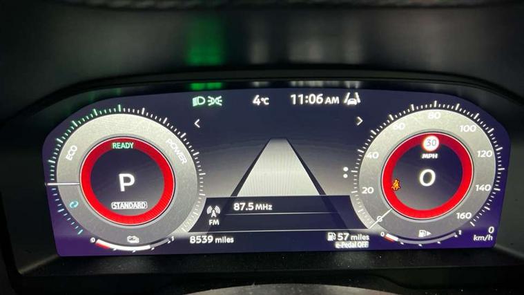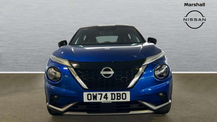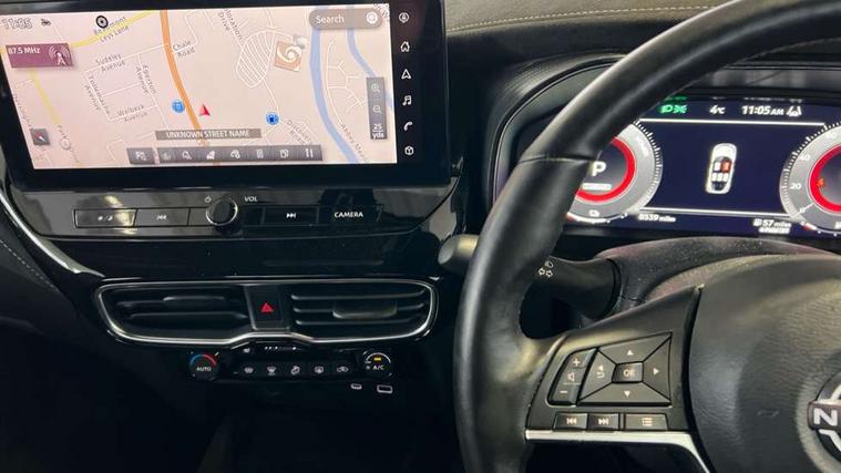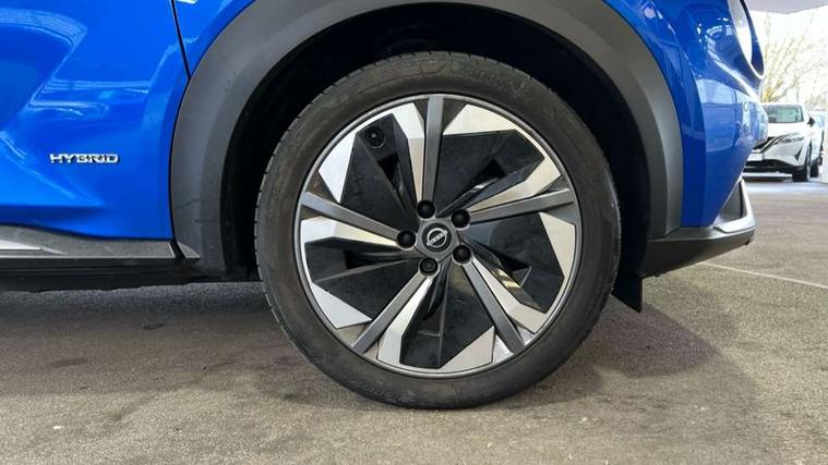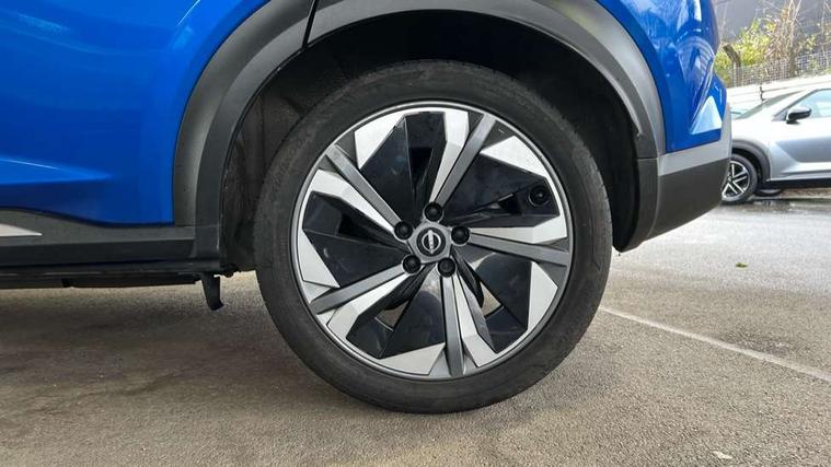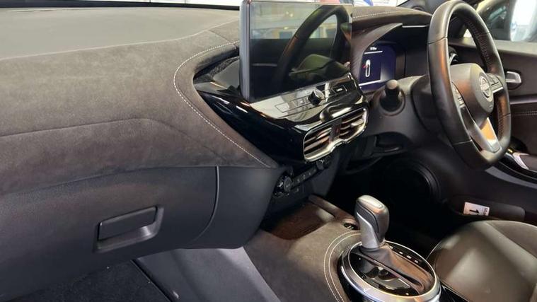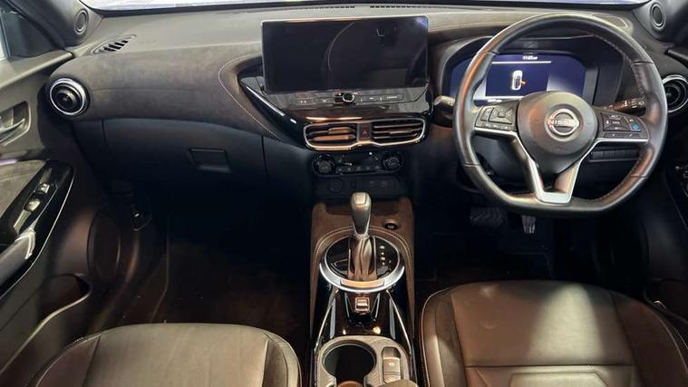 12.3" full colour TFT screen combimeter, Drive modes select (Eco, normal and sport), e-Pedal step, Emergency and breakdown call, EV mode switch, Front parking sensor, Intelligent driver alert system, Intelligent lane intervention, Lane departure warning system, Nissan connect 12.3" touch screen entertainment system, Nissan connect nav with TomTom traffic, Nissan connect services, Outside temperature sensor, Power Steering, Rear parking sensor, Stop/start button, Traffic sign recognition, Trip computer, Voice recognition, WiFi connectivity, Wireless Apple CarPlay and Google Android auto, Wireless Smartphone charger, 10 Bose speakers 6 speakers and 2 headrest speakers for driver/passenger seats, 2 X Rear console USB port, Bluetooth system, USB, Aux-in and 12V socket, Bose personal sound stage control, DAB Digital radio, Auto dimming frameless rear view mirror, Automatic hazard signal with emergency stop signal, Body colour door handles, Electrically adjustable door mirrors with integrated indicators, Follow me home headlights, Front and rear electric window with one touch driver window, Heated and auto folding door mirrors, High beam assist, LED 3rd brake light, LED daytime running lights, LED front fog lights, LED headlamps, LED rear fog lamp, LED rear lamps, One touch passenger window, Rain sensor windscreen wipers, Rear privacy glass, Rear side wing doors, Rear wiper, Roof spoiler, Shark fin roof antenna in solid Black, Three blink turn signal, 3 height adjustable rear headrests, 3 seat bench in 2nd row, 60/40 split folding rear seat, Automatic climate control, Card holder on driver sunvisor, Door ambient lighting, Driver seat back pocket, Driver side rear coat hanger, Driver/passenger sunvisors and vanity mirrors, Front and rear cabin lights, Front armrest, Front door pockets with bottle holders, Front head restraints, Front/rear passenger grab handles, Gear console ambient circle lighting, Height adjustable driver's seat, Internal chrome door handles, Leather gearshift knob, Luggage board, Luggage space lighting, Monoform sporty seats, Multifunction steering wheel, Passenger seat back pocket, Rear door bottle holders, Single front passenger seat, Smooth synthetic leather steering wheel, Synthetic leather kneepad, Telescopic steering wheel adjustment, Two cupholders in front centre console, Two rear isofix child seat anchorage points with top tether, Welcome light and console tray ambient lighting, Heat pack with height adjustable passenger seats - Juke, Interior personalisation pack - Juke, ProPilot pack - Juke Auto, Satin grey exterior personalisation pack - Juke, ABS with EBD and brake assist, Active ride control, Active Trace Control, Driver and passenger airbags, Driver and passenger side airbags, Electric handbrake with auto hold function, Electronic Stability Programme (ESP), Front and rear curtain airbags, Height adjustable seatbelts, Hill start assist, Intelligent emergency braking with pedestrian and cyclist recognition, Rear door child safety locks, Seatbelt reminder for driver/front passenger and rear seats, Three 3 point rear seatbelts, Traction control, Tyre pressure monitoring system, VDC Dynamic Vehicle Control, Alarm, Immobiliser, Intelligent key and start push button with walk away lock and approach unlock functions, Remote central locking, 19" Aero alloy wheels, Tyre puncture repair kit,