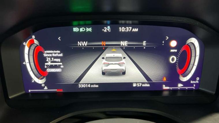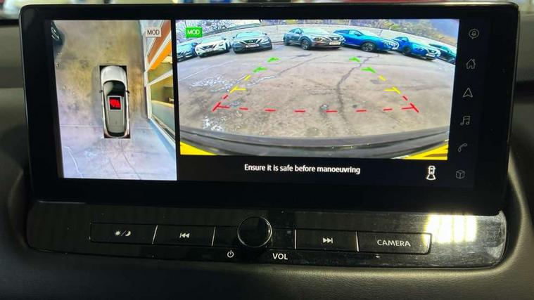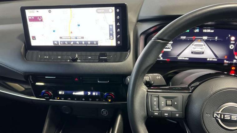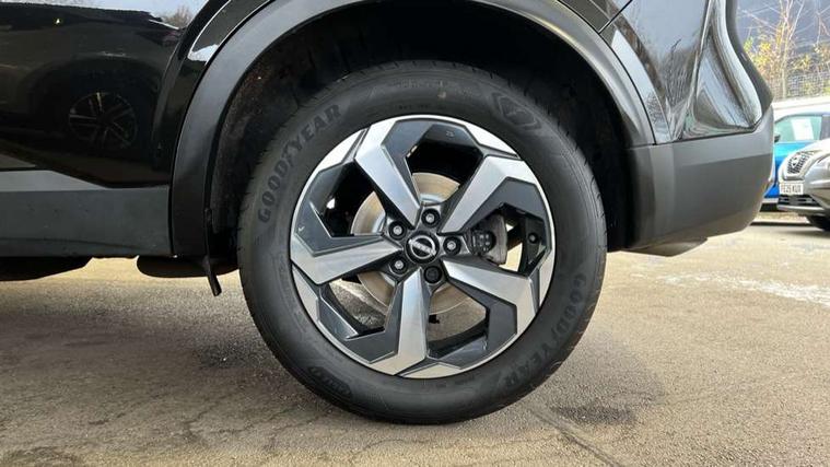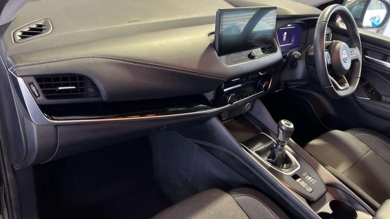 Android auto/Apple CarPlay (Wired), Blind spot warning, Drive modes (sport, normal, eco), Electric speed sensitive power steering, Emergency and breakdown call, Front and rear parking sensors, Full Digital 12.3" TFT Digital Combimeter, Google maps services - search, weather, 3D maps and Google street view, Idle stop/start system, Intelligent around view monitor, Intelligent Cruise control (ICC), Intelligent driver alert system, Intelligent forward collision warning, Intelligent lane intervention, Lane departure prevention, Lane departure warning system, Maximum speed limiter, Moving object detection, Nissan connect 12.3 inch touchscreen infotainment system, Nissan connect navigation, Push button starter, Rear cross traffic alert, Rear view camera, Remote control services - door locks, lights, horn and car locator, Telematics - notifications and connectivity services, TomTom live traffic services, Traffic sign recognition with legal speed adjustment, Trip computer, Virtual personal assistant and firmware over the air capability, Wireless apple carplay, 6 speakers, AM/FM audio system with DAB, Bluetooth audio streaming, Front USB connections (Type-A and Type-C), Rear USB charging only ports (Type-A and Type-C), Auto dimming rear view mirror, Auto rear wiper when reversing, Automatic hazard signal with emergency stop signal, Body colour mirror caps, Body coloured door handles, Bodyside mouldings, Chrome side window finisher, Door handle with button, Electric auto folding door mirrors, Electrically adjustable and heated door mirrors with LED turn indicator, Follow me home headlights, High beam assist, Intelligent auto headlights, LED daytime running lights, LED Headlights, LED rear lights, One touch front and rear electric windows with remote opening and closing, Partially body coloured bumpers, Privacy glass, Rear bumper with graphite insert, Rear reversing light (bulb lighting), Rear roof spoiler, Rear side wing doors, Rear styling plate, Shark fin antenna, Splash free rain sensing wipers, Super UV and infrared cut glass, Three blink turn signal, 12v power socket in dashboard and luggage, 2x Rear coat hooks, 3 bench rear seats in 2nd row, 3 rear headrests, 4 folding assist grip, 6 Luggage hooks - 4 on floor, 2 on side, 6-way manually adjustable driver's seat, 60/40 split folding rear seat bench, Ambient lighting around centre console, Centre console storage tray, Chrome interior door handles, Cloth monoform upholstery, Driver and front passenger sunvisors with illuminated vanity mirrors, Driver seat back pocket, Dual zone automatic climate control with pollen filter, Electrically adjustable lumbar support for driver, Front and rear door storage, Front centre console and armrest, Front cupholders x 2, Front door with bottle holders, Glovebox with light, Hard trunk cover, Height adjustable driver's seat, Height adjustable front headrests, Height adjustable passenger seat, Leather shift knob, Leather steering wheel, Luggage board system, Luggage space lighting, Manually adjustable passenger (slide recline + lifter), Multifunction steering wheel, Passenger seat back pocket, Rear armrest with 2 cupholders, Rear door bottle holders, Single front passenger seat, Soft PVC kneepad, Steering wheel switches, Sunglasses holder, Tilt/telescopic adjustable steering wheel, Two rear isofix child seat anchorage points with top tether, Welcome light and console tray ambient lighting, 3x3 point rear seatbelt pretensioners + load limiters, ABS with EBD and brake assist, Active brake limited slip, Auto hold function, Child locks on rear doors, Curtain and front side, far side airbags, Driver and passenger airbags, Driver, passenger and 2nd row rear seat belt reminder, Electronic parking brake, Front seatbelt pretensioners + load limiters, Height adjustable front seatbelts, Hill start assist, Intelligent blind spot intervention, Intelligent front emergency braking with pedestrian, cyclist recognition and junction assist, Intelligent rear automatic braking, Tyre pressure monitoring system, Vehicle dynamic control, Capless fuel filler, Engine immobiliser, Intelligent Key, Remote central door locking with deadlocking, Thatcham Cat.1 alarm, Interior instrumental panel B finisher, 18" Diamond cut alloy wheels, Tyre puncture repair kit,