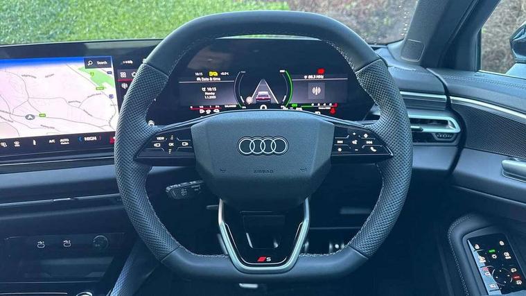 Adaptive cruise control, Attention and drowsiness detection with driver observation, Audi application store, Audi assistant, Audi connect emergency call and service, Audi drive select, Audi virtual cockpit plus with 11.9" OLED colour display, Automatic start/stop system with coasting functionality, Camera based traffic sign recognition, Convenience key, Intersection assist, Lane departure warning, MMI navigation plus with high resolution 14.5" OLED touchscreen colour display, Park assist plus, Parking system plus with 360 display, Progressive steering with servotronic, Rear view camera, Side assist and exit warning, rear cross-traffic assist and rear turn assist, Smartphone interface, Swerve assist and turn assist, Traffic sign based speed limiter, Household plug type G, Hybrid propulsion system, Industrial connector CEE 32A, 230V, long and straight for the e-tron charging system, Mode 3 type 2 AC charging cable 22kW, Sports suspension lowered by 20mm, DAB digital radio reception, Smartphone compartment with wireless charging, Aluminium roof rails, Aluminium window trims, Auto dimming rear view mirror, Body colour door handles, Body colour door mirrors, Door mirrors - electrically adjustable, heated, folding and auto dimming on both sides, Front and rear electric windows, Front door sill trims with aluminium inlays, illuminated with 'S' logo, High beam assist, LED headlights Plus incl. digital daytime running lights, turning light, all-weather light, motorway light, manouevring light and intersection light, LED rear lights pro incl. dynamic rear indicators and illuminated light strip with animated coming and leaving home function, LED third brake light, Privacy glass, Rear and side windows with heat insulating glass, Rear side wing doors, Rear wash/wipe, S Line badges on the front wings, S line bumpers, radiator grille and diffuser in phantom black and diffuser insert in matt anthracite, White rhombus logo projection light in exterior mirrors, Windscreen with acoustic glazing, 3 rear headrests, 3 seat rear bench, 3 spoke leather steering wheel with multi-function buttons with touch control, flattened on top and bottom, with S badging and contrast stitching, 3-zone automatic climate control, 40:20:40 split folding rear seat bench with centre armrest and cup holders, Auxiliary air conditioning, Comfort front centre armrest, Front and rear floor mats, Front sport seats with integrated headrest and S embossed logo, Headlining in black cloth, i-Size child seat mounting on the front passenger side and outer rear seats, i-Size and top tether on the outer rear seats, Increased charging capacity for USB ports 2X100 Watts in rear, 2X60 Watts in front, LED roof module front and rear including reading lights, Luggage compartment lid, electrically opening and closing, Manual steering column height and depth adjustment, Single front passenger seat, Stainless steel pedals and footrest, Steering wheel grips in perforated leather and shift paddles, Storage compartment lighting under the centre armrest, Ambient lighting package plus - A5, Interior lighting in white package pro - A5, 3x3 point rear seat belts, Acoustic vehicle alerting system, Driver airbag, Electric child safety locks, First aid kit with warning triangle and vests, Front emergency brake assist, Front passenger airbag, Front passenger airbag deactivation, Front side airbags with head airbag system and front interaction airbag, Hill hold assist, Seat belt monitoring with rear seat occupant reminder, Tyre pressure loss indicator, Anti theft alarm, Anti-theft wheel bolts, Digital key, Keyless Go, Accent surfaces and control buttons in gloss black, Black dashboard with contrast stitching, Inlays in matt brushed aluminium with linear embossing, anthracite, Softwrap in leatherette with contrast stitching, Upper and lower interior elements in leatherette, Tyre repair kit,