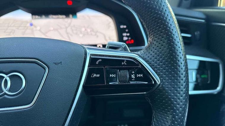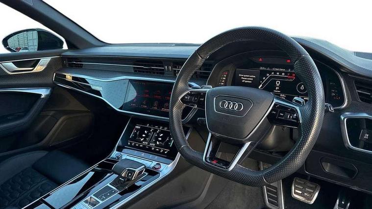 360 degree parking camera, Audi connect safety and service (e-call), Audi connect with Amazon Alexa Integration, Audi drive select, Audi virtual cockpit plus with RS specific design and 12.3" display with additional graphic display options, Automatic start/stop system, Bluetooth interface, Dynamic all wheel steering, Head up Display, Lane departure warning system, MMI navigation with MMI touch + twin touch screens 10.1" and 8.6" with haptic and acoustic feedback, Operating buttons in black, glass look with haptic feedback including extended aluminium look, Power door closure, Power latching doors, Power operated tailgate, Service interval indicator, Smartphone interface includes wireless Apple carplay/Android Auto, Voice control system, 73 litre fuel tank, Increased top speed to 174mph, Quattro sports differential, RS Sports suspension plus with dynamic ride control, 2 USB-C ports with charging functionality in the rear, Audi music interface, Bang & Olufsen 3D Premium Sound System, DAB Digital radio, 3rd brake light, Adaptive windscreen wipers with integrated washer jets, Black mirror caps, Body colour rear roof spoiler, Electric front/rear windows, Electric panoramic opening glass sunroof, Electrically folding auto dimming/adjustable/heated door mirrors with LED side indicators and kerb view function for passenger side, Frameless auto dimming interior rear view mirror, HD Matrix LED headlights with Audi laser light with dynamic light design and dynamic turn signal, Headlight washers, Heat insulating darkened glass in side and rear windows, Illuminated door sill trims with RS lettering, LED daytime running lights, LED rear combination lamps with dynamic light design and dynamic turn signal, Privacy glass with rear/side windows and acoustic glazing side windows, Radiator grille in honeycomb structure, large front air inlets and rear diffuser in gloss black, Rain and light sensors, Rear side wing doors, Rear sports exhaust system with gloss black oval tailpipe, Rear wiper, RS front bumper with air inlets on both side, Wheel arch extensions, 2 seat bench in 2nd row, 3 spoke RS flat bottomed leather multifunction steering wheel with shift paddles, heated funtion, contrast stitching, RS mode button and RS emblem, 4 way electric lumbar support for driver and front passenger, 4 zone deluxe automatic climate control, Aluminiium gear shift paddles, Audi Sport logo projection (Audi Beam) in front and rear, Black cloth headlining, Electric steering wheel adjustment, Electrically adjustable front seats with driver memory, Front and rear headrests, Front centre armrest, Front seat ventilation, Front/rear floor mats, Heated front and rear seats, ISOFIX child seat mounting and Top Tether with front passenger airbag deactivation, RS Front sports seats, Single passenger seat, Stainless steel pedals and foot rest, Valcona leather upholstery with perforated honeycomb and RS lettering, Air quality pack - RS6, City assist pack - RS6, Extended LED interior multi coloured lighting pack - RS6, Gloss black styling pack - RS6, Parking assistance plus pack - RS6, Storage pack - RS6, Tour pack - RS6, 2 x 3-point rear seatbelts, Airbags - Front side, front and rear including head, Audi pre-sense front, Direct tyre pressure monitoring system, EBD - Electronic brakeforce distribution, Electromechanical parking brake, Electronic Stability Control (ESC) including ABS, ASR and EDL, Extended pedestrian protection measures, Manual child lock in rear doors, Warning triangle and first aid kit, Advanced key, Anti theft alarm with tow away protection, Anti-theft wheel bolts and wheel loosening detection, Immobiliser, Keyless Go, Remote central locking, 22" Titanium matt gloss turned finish alloy wheels, Tyre repair kit,
