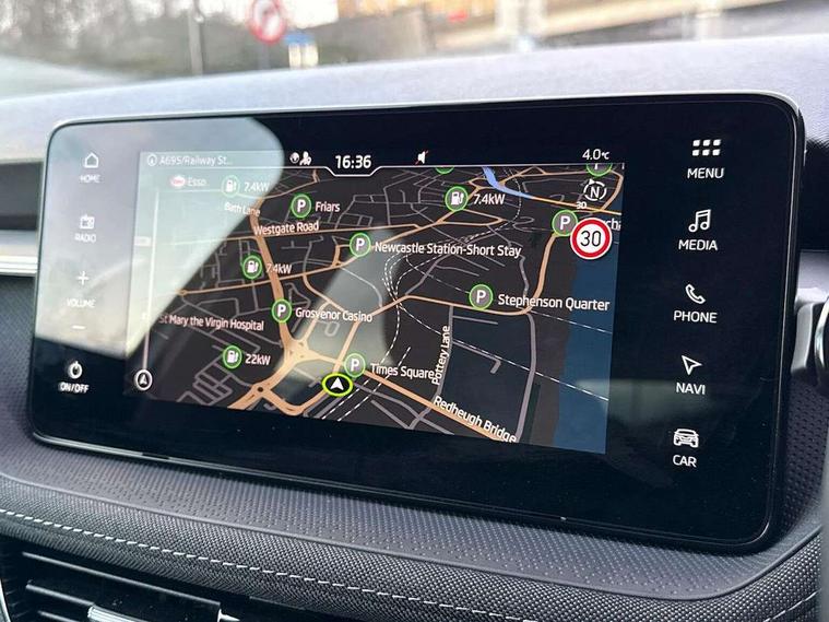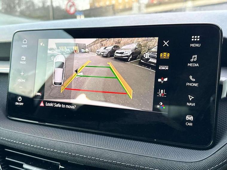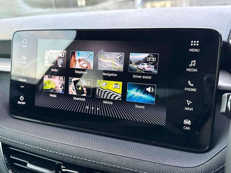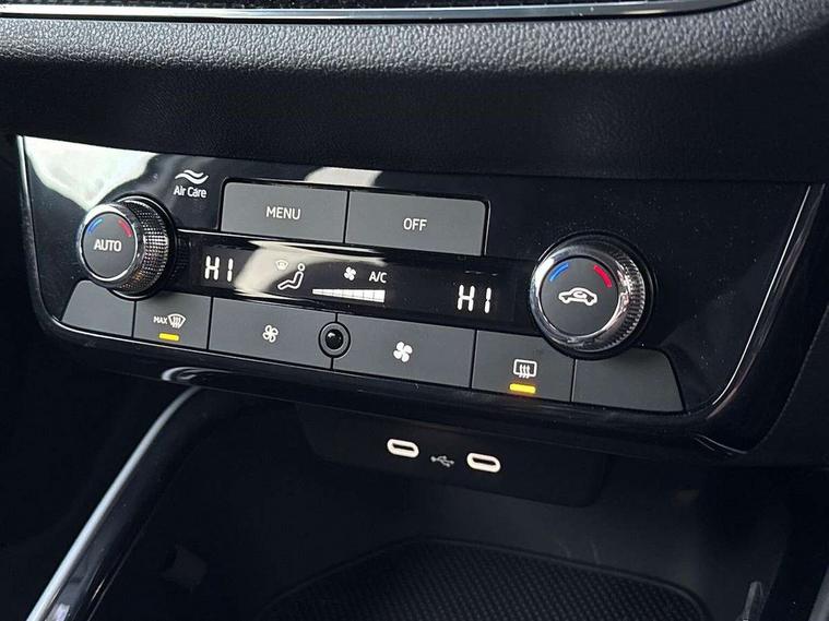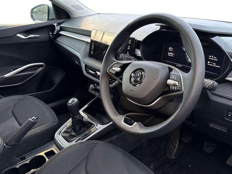 Advanced driver attention and drowsiness monitor, Bluetooth connection, Electromechanical power steering, Exterior temperature gauge, Service interval indicator, Traffic sign recognition, Virtual cockpit with 10.25" colour display, Wireless SmartLink for Apple CarPlay and Android Auto, 6 Speakers (4 in front and 2 in rear), 9.2" colour display skoda navigation system with voice control and web radio, Auxiliary socket for external MP3 player, DAB digital radio reception, Auto dimming rear view mirror, Body colour door mirrors, Body coloured bumpers, Chrome window surround, Door mirror integrated indicators, Front and rear electric windows, Front window wiper intermittent control, Headlight range control - Automatic, Ice scraper in fuel cap, LED 3rd brake light, LED daytime running lights with coming and leaving home feature, LED rear lights, Privacy glass, Rear LED fog light, Rear side wing doors, Rear window wiper with washing nozzles, Roof mounted spoiler, SKODA tailgate lettering in chrome, Unique dark chrome design logo on alloy wheels, 2 LED reading lights in front and rear, 3 rear headrests, Backrest split and folding, Central console with removable cup holder and storage box, Chrome handbrake release button, Comfort seats, Door sills with fabia badging, Dual zone air conditioning with climatronic electronic control, Fabric upholstery, Front centre armrest, Gearshift knob/handle in leather, Hand brake lever handle in leather, Height adjustable front headrests, Height adjustable front seats, Height adjustable steering wheel, ISOFIX and TopTether anchorage points to the outer rear seats, ISOFIX and TopTether on the front passenger seat, Luggage compartment lighting, Manually adjustable lumbar support in front seats, Metallic grey interior door handles, Pollen filter, Rear seat bench unsplit, Single front passenger seat, Skoda lettering on steering wheel, Storm grey headlining, Sun visors with mirror and airbag label on passenger side, Textile floor mats, Ticket holder, Umbrella in drivers door, 3-point height adjustable front seats belts with pretensioner and force limiter, Automatic warning lights in case of crash, Driver and passengers airbag with switch off function, e-Call+, ESC including ABS, MSR, ASR, EDS, HBA and XDS, Front and rear seat belt warning, FRONT ASSIST (AEB City and AEB Inter Urban), Front side airbags, Head airbags, One tone horn, Pedestrian protection, Three rear 3-points safety seat belts with pretensioner and force limiter including stop function for outer rear seat belts, Tyre pressure monitoring system, Anti-theft alarm system including immobiliser, interior monitoring, backup horn, and towing protection, Central locking with radio remote control, interior controls, SAFE function and 2 foldable keys, Black painted air vents, Metallic grey central console cover, Metallic grey upper decorative trim, Satin black door and side trim panel in front, Textile microsuede grey lower decorative trim with art grey stitching, Anti-theft wheel bolts protection, Super-low rolling resistance tyres,