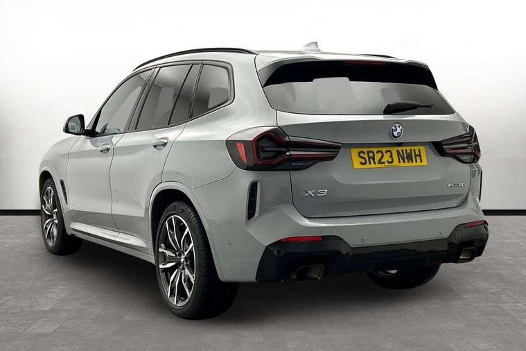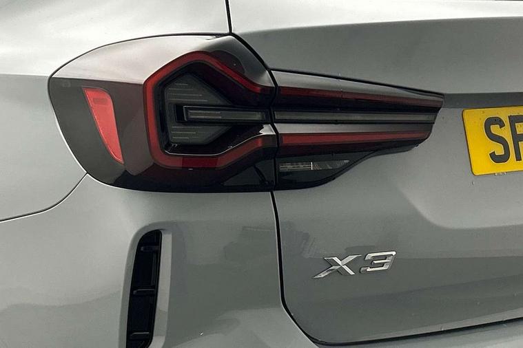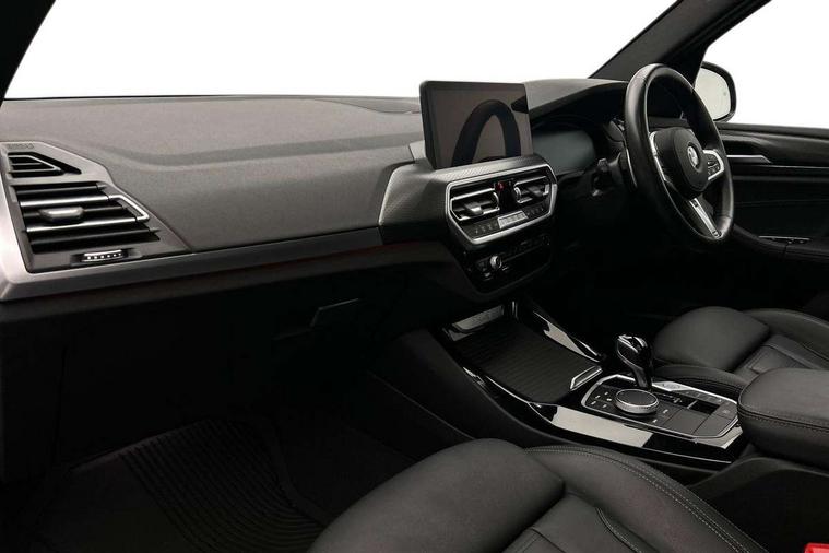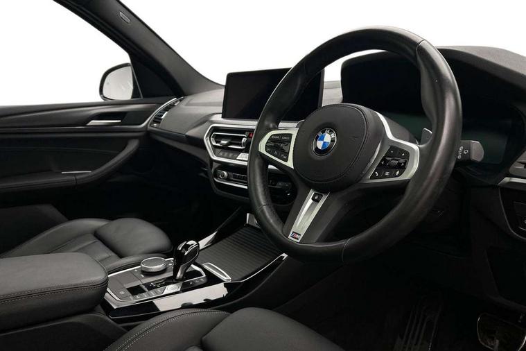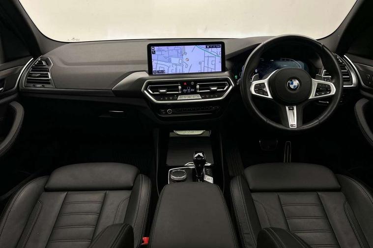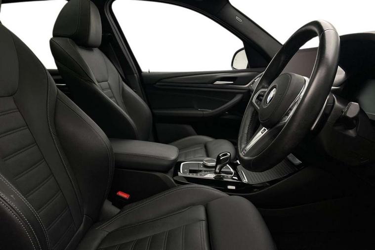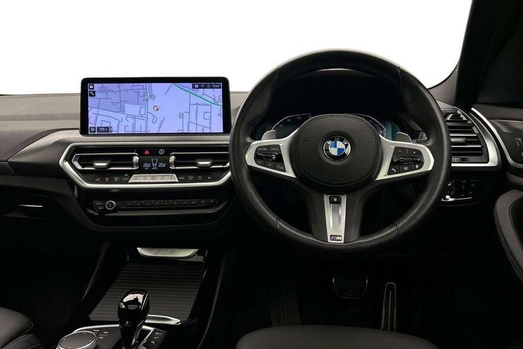Active Guard, Attentiveness assist, BMW Live Cockpit Professional nav system including 12.3" instrument display + 12.3 high resolution control display, BMW Online services, BMW Teleservices, Brake pad wear indicator in front and rear, Check Control warning system for monitoring of lights and door/luggage compartment open warning, Condition based service - BMW service history, electronic service booklet, integrated owner's handbook, Connected drive services, Electric boot lid, Front/rear Parking distance control, iDrive touch controller with 8 favourite buttons, Instrument cluster with speedometer with mph readout, tachometer, fuel gauge and oil temperature gauge, Lights on warning by audio warning signal when ignition is switched off, Oil sensor for level and grade, warning by check control system, On board computer - average speed+fuel consumption, service interval, clock/date, odometer/trip meter, outside temperature display and ice warning, Optimum shift indicator, Personal Profile - automatic lock when driving away selectable, Run flat indicator, Stop/start system, Variable sports power steering with drive performance control Sport+ mode, Automatic transmission with gearshift paddles, Incorrect fuelling protection, M sport suspension, Multi-link rear suspension, BMW professional radio/CD/MP3, DAB tuner, Acoustic glazing, Automatic windscreen wipers and automatic headlight, Black finish on B pillars, Body colour door handles, Body colour electric adjust heated aspherical door mirrors, Body colour roof mouldings, Body coloured bumpers, Direction indicator, side repeaters, integrated in exterior mirrors, Dynamic brake lights, Exhaust tailpipes - dual, round, split left and right with chrome finisher, Fingertip control / anti-trap function on electric window, Folding wing mirrors with auto dimming, Follow me home headlights, Front and rear bumper system with replaceable deformation elements, Front and rear electric windows, Gloss chrome tailpipes finishers, Green tinted heat insulating glass, Heated windscreen washer jets, High beam assistant, High gloss black shadow line roof rails, High gloss shadowline exterior trim in decorative moulding side frame/recess cover/guide rail/B, C pillars/mirror frame and triangle with mirror base, High level 3rd brake light incorporating LED Technology, Interior rear view electrochromatic mirror with automatic anti dazzle function, LED tail lights, Lightweight engineering, M aerodynamic bodystyling, M Sport entry door sill strips, Model designation, Rain sensor, Rear side wing doors, Rear wing door, Rear wiper, Shark fin antenna, Side exterior M designation badges, Visible VIN plate, Welcome lighting, Windscreen wipers with adjustable interval, 12V power point in luggage area, 12V power socket in front centre console, 2 x USB Type C ports for charging and data transmission (front centre console) and 2 x USB Type C ports for charging (rear centre console), 3 rear headrests, 3 seat bench in 2nd row, 3 zone automatic air conditioning, 4 lashing points to secure luggage, 40:20:40 split folding rear seat with loading system, Ambient lighting, Anthracite headlining, Automatic interior light when door is opened/ignition switched off or via remote key, Floor mats in velour, Foldable storage floor with compartment, Four grab handles integrated in roof lining, Front and rear bottle holders integrated into door trim storage compartments, Front and rear side armrests integrated into door trim, Front centre armrest with storage compartment, Front footwell lights, Front head restraints, Front passenger seat, Front sports seats, Front/rear courtesy lights with soft on/off dimming, Front/rear reading lights, Heated front seats, Isofix rear child seat preparation, Leather gear knob, Lockable glove compartment, Luggage area underfloor compartment, Luggage compartment lighting, M sport leather steering wheel, Multifunction steering wheel, Parcel shelf removeable and storable under boot floor, Reach and rake adjustable steering column, Rear centre armrest with 2 cupholders, Removable / retractable luggage cover, Slope adjustable rear seats, Storage compartment in rear centre console and front/rear door trims, Sun visors with vanity mirrors and ticket pocket, Toolkit located in luggage compartment, Two front cupholders with removable oddments tray/lid, Connected pro pack - X3, ADB - Automatic Differential Brake, Anti-lock braking system (ABS) with brake assist, Automatic Stability Control (ASC), Battery safety cut-off, BMW emergency call, Brake drying, Brake energy regeneration, Braking pre-tensioning, Child locks on rear doors, Cornering brake control (CBC), Crash Sensor - activation of central locking release, hazard warning light and interior lighting, Deactivation of fuel pump in the event of a crash, Driver and front passenger front and side airbags with passenger deactivation and ITS front and rear head airbags, Driver and front passenger knee airbag, DSC+, Dynamic brake control, Dynamic Traction Control - DTC, Electromechanical parking brake, Hill descent control, Hill start assist, Seatbelt security check for front seats, Side impact protection, Three point seatbelts to all seats with front and outer rear pyrotechnic belt tensioners and seat belt force limiters, Two tone horn, Tyre pressure sensor, Ventilated front and rear disc brakes, Warning triangle and first aid kit, Central locking switch for all doors, fuel filler cap and luggage compartment, Electronic engine immobiliser, Locking wheel nuts, Remote control including two integrated key - one button for open/close all lockable content, windows and separate button for open luggage compartment, Remote control Thatcham category 1 alarm, Start/stop button with Comfort Go keyless engine start and auto Start/stop deactivation button, Low rolling resistance tyres,
