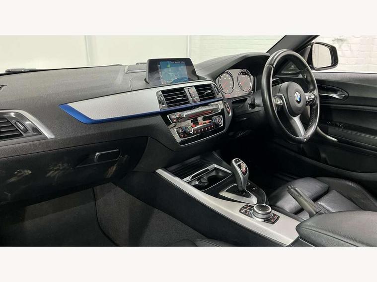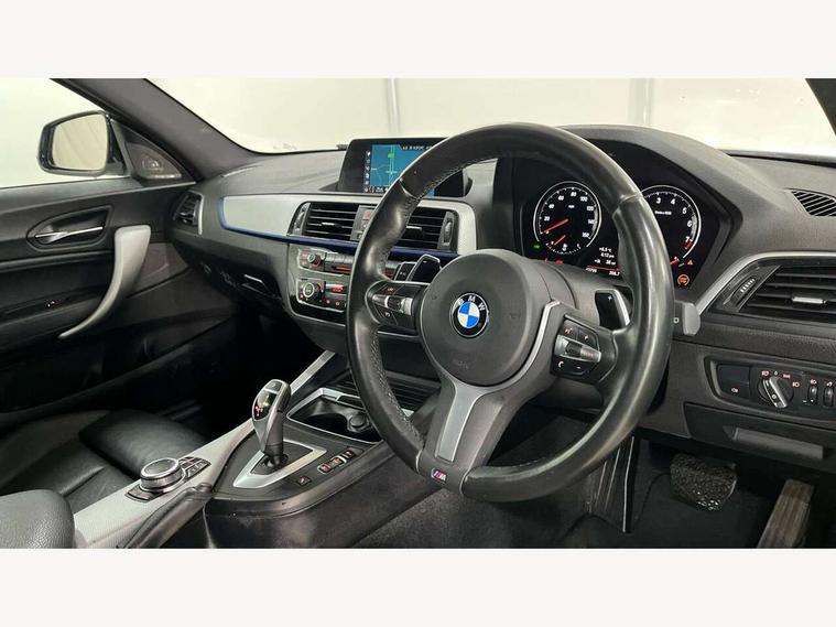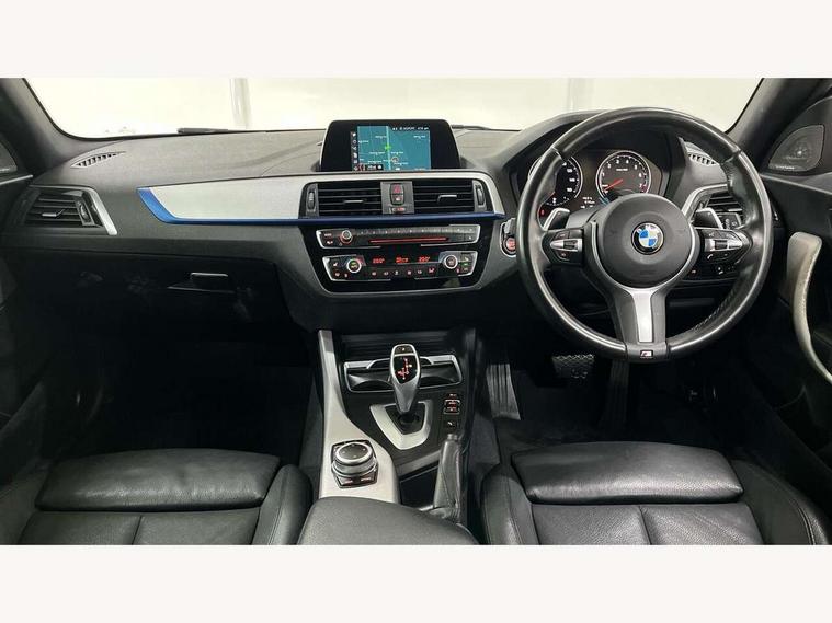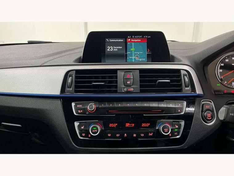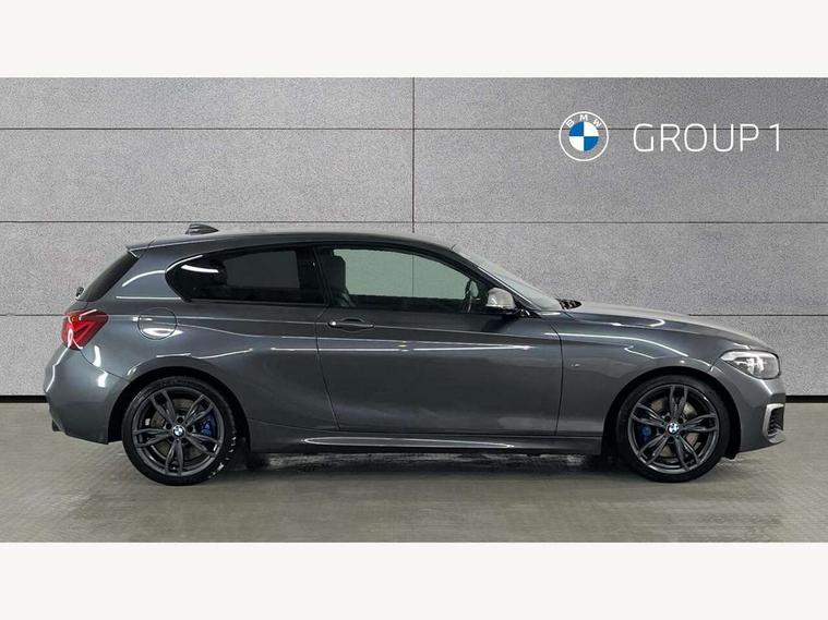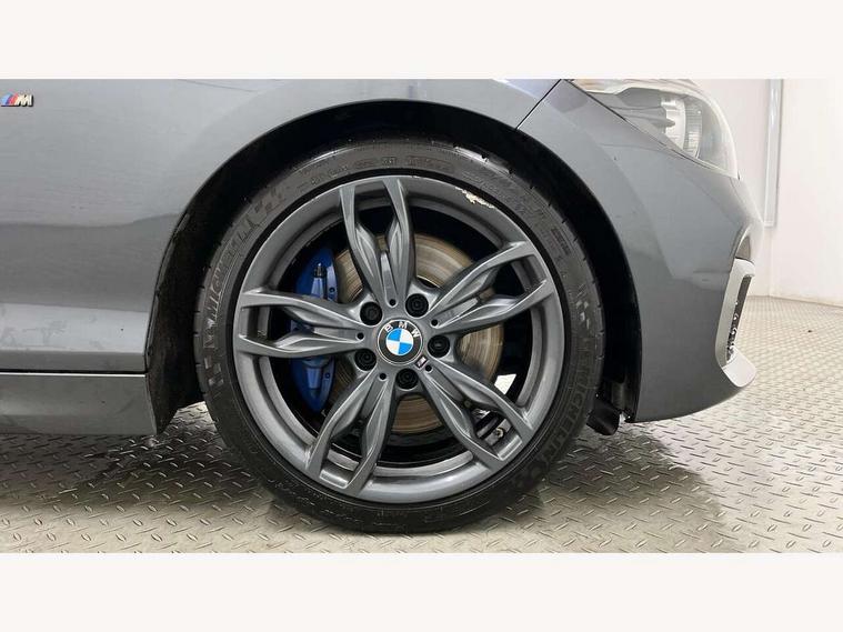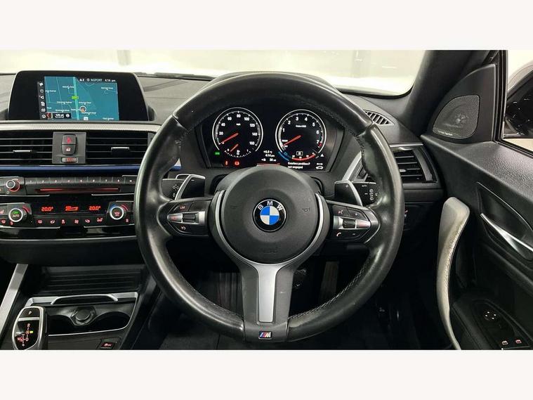 Automatic start/stop system, BMW Online services, BMW remote services, BMW Teleservices, Brake force display, Brake pad wear indicator in front and rear, Check Control warning system for monitoring of lights and door/luggage compartment open warning, Cruise control with brake assist, Eco pro mode, Instrument cluster with speedometer with miles per hour read out, tachometer and fuel gauge, Lights on warning by audio warning signal when ignition is switched off, Oil temperature display via on board computer in instrument cluster, On board computer - average speed+fuel consumption, service interval, clock/date, odometer/trip meter, outside temperature display and ice warning, On board diagnostics, Optimum shift indicator, Personal Profile, Real time traffic information, Speed limiter, Variable sport steering, Battery age recognition function, Drive Performance Control, Sport automatic transmission with Launch Control, Sports function on gearbox with steering wheel mounted gearshift paddles, BMW professional radio with CD player, DAB Digital radio, Harman/Kardon loudspeaker system, Body colour door handles, Body colour front and rear bumpers, Body colour roof mouldings, Clear lenses direction indicator lights, Dark chrome exhaust tailpipes in dual, round and split, Darkened rear lights with LED light bars, Daytime driving lights, Direction indicator side lights in exterior mirrors, Dynamic brake lights, Electrically adjustable heated door mirrors and washer jets, Ferric grey air blades, Ferric grey mirror caps, Follow me home headlights, Front and rear bumper system with replaceable deformation elements, Front door exit lights, Front electric windows with open and close fingertip control, anti trap facility and comfort closing, Green tinted heat protection glazing, Headlight beam throw control, Heated windscreen washer jets, High gloss black kidney grille with black slats, High level third brake light, LED exterior front door handle lights, Lightweight engineering, M aerodynamic bodystyling, Nearside reverse light in rear light cluster, Offside rear fog lights, Rain sensor including auto headlights activation, Rear window aerial, Rear window wiper, Shark fin antenna, Sun protection glass, Visible VIN plate, Welcome lighting, 12V power socket in centre console, 12V power socket in passenger footwell, 60/40 split folding rear seat, Ambient lighting - switchable BMW classic orange/ cold white LED, Ambient lighting front and rear, Anthracite headlining, Anthracite Velour front floor mats, Conditioned based service, Dakota leather upholstery, Door sill finishers with M140i designation, Driver and passenger illuminated vanity mirror, Front and rear side armrest integrated into door trim, Front folding sliding armrest with storage compartment, Front footwell lights, Front head restraints, Front LED reading lights, Front sports seats with electric side bolster adjustment, Front storage compartment in centre console and in door trim, Front/rear courtesy lights with soft on/off dimming, Glove box handle with chrome surround, Glovebox, Interior light in front centre interior mirrors and rear centre auto interior light activation when door is opened when ignition switched off, Isofix child seat for two outer rear seats, Leather gear knob and handbrake grip, LED luggage compartment lighting, LED rear interior light with centre reading lights, Luggage compartment access via BMW roundel, Luggage compartment lighting, M sports multi function leather steering wheel, Manually adjustable steering column, Multi-function controls for steering wheel, Rear folding head restraints, Sunvisors with vanity mirrors and ticket pocket, Two cupholders with sliding cover and inlay mat, Two grab handles integrated in roof lining, Two sills lashing eyes in the luggage compartment, Two zone automatic air conditioning, 3 point seatbelts on all seats, front pyrotechnic belt tensioners, stopper and belt force limiters, rear coded belt buckles, Active differential brake (ADB), electronic differential lock in DSC-OFF mode, Airbags - Front driver and passenger, front and rear head, front side, curtain head protection, Anti lock braking system (ABS) with brake assist, Automatic Stability Control (ASC), Battery safety cut-off, BMW emergency call, Brake drying, Brake energy regeneration, Braking readiness, Cornering brake control (CBC), Crash sensor activating central locking release, hazard warning lights, Driver and front passenger seat belt security check, DSC+, Dynamic brake control, Dynamic Traction Control - DTC, Front passenger manual airbag deactivation, Front ventilated brake disc, Hill start assist, M Sport braking system, Rear brake discs, Rear child proof door locks, Side impact protection, Twin horns, Tyre pressure monitoring system, Warning triangle and first aid kit, Automatic drive away locking facility, Central locking switch for all doors, fuel filler cap and luggage compartment, Locking wheel bolts, Remote central locking with two Integrate key, one button for opening and closing all lock, open and close window, button for open luggage compartment, Remote control integrated key with blue inset, Start/stop button with comfort go keyless engine start and auto start stop deactivation button, Thatcham Cat.1 alarm and immobiliser, High performance tyres, Reduced rolling resistance tyres,