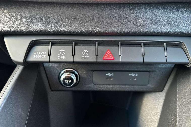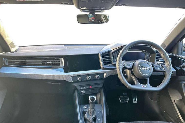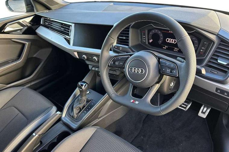 10.25" Digital instrument cluster display classis style instrument dials + speed, odometer, time, outside temperature, telephone menu + fuel level warning, Advanced driver attention and drowsiness monitor, Audi connect emergency call and service, Audi drive select, Audi remote connect and control, Bluetooth interface, Camera based traffic sign recognition, Cruise control, Driver's information system, Electromechanical power steering, Lane departure warning system, Rear parking sensor, Service interval indicator, Smartphone interface, Speed limiter, Start stop system with recuperation, Voice control system, Washer fluid level indicator, Sports suspension, 2 x USB type C connection points, 6 loudspeakers, DAB Digital radio, MMI radio plus with 10.1" colour MMI display screen and MMI touch, Auto dimming rear view mirror, Black door mirror housings, Black side skirts, Body coloured bumpers, Door sill trims with aluminium inlays and logo, Electric front and rear windows, Electrically adjustable, heated, folding door mirrors with integrated LED side indicator, Front side air inlets in grained matt black and C frame in anthracite black, Front wing badges, Headlight cleaning system, Heat insulating glass windscreen and side windows, Heated rear windscreen, High level LED brake light, LED daytime running lights, LED headlights with range control LED rear lights + dynamic rear indicators, Light and rain sensors, Privacy glass, Radiator grille and rear diffuser in matt anthracite black, Radiator protective grille frame in matt aluminium silver, Rear fog lights, Rear side wing doors, Rear wiper, Side front spoiler lips in grained matt black, 12V socket in centre console with two cup holders, 3 rear seats with headrests, 3 seat bench in 2nd row, 3 spoke flat bottomed multi-function plus leather steering wheel with S badging, grips in preforated leather, contrast stitching and paddle shift, 40:60 Split folding rear seat or fully collapsed, Black carpets, Black cloth headlining, Front and rear velour black floor mats with contrast stitching in fine silver, Front head restraints, Front passenger seat, Height and reach adjustable steering wheel, Interior lighting includes roof module, front and rear reading lights and right luggage compartment lighting, ISOFIX child seat mounting for front passenger and outer rear seats including top tether attachment point of outer rear seats, Leather gear knob with aluminium trim, Leather handbrake grip, Manual air conditioning, Manual height adjustable for driver and front passenger seat, Manually adjustable lumbar support in front seats, Stainless steel pedals, Ambient lighting package - A1, Black styling pack - A1 Sportback Black Edition, Luggage compartment pack - A1, 3x3 point rear seatbelts, Audi pre-sense front with pedestrain and cyclist recognition, Brake assist function, Driver and front passenger airbag with front side and head airbags, Electronic Stability Control including ABS, EBD, ASR and EDL, Front passenger airbag deactivation switch, Hill hold assist, Manual rear child locks, Seatbelt height adjustment for front seats, Seatbelt monitoring, Tyre pressure loss indicator, Warning triangle and first aid kit, Anti theft alarm, Anti theft wheel bolts, Immobiliser, Remote control key with safelock, Aluminium trim for control switches, air vents and digital instrument cluster, Black dashboard, Silver grey inlays polygon structure in diamond paint finish, Structured grey accent surfaces insert of air vents, interior door handle recesses and centre console in quartz paint finish,