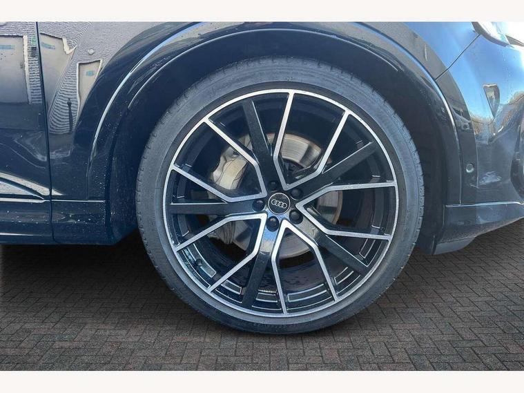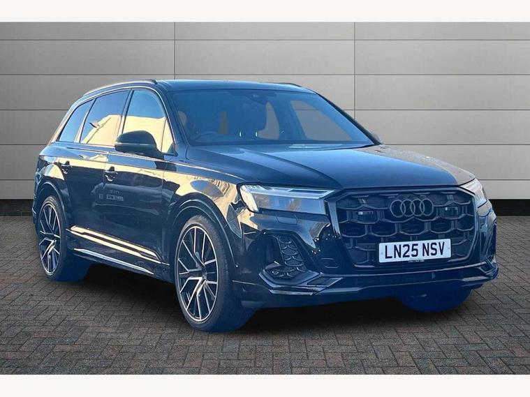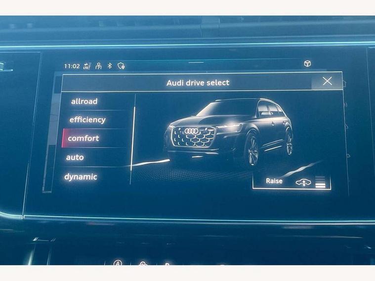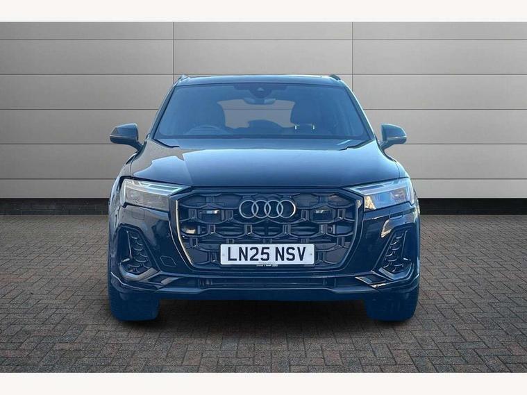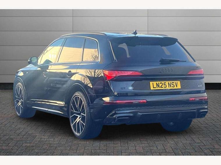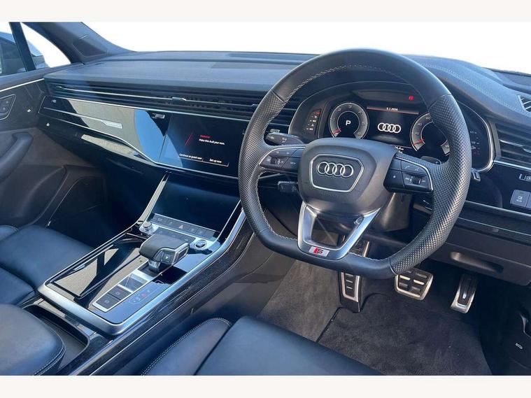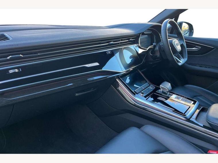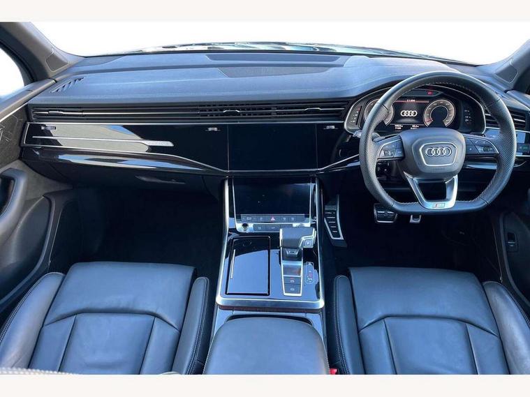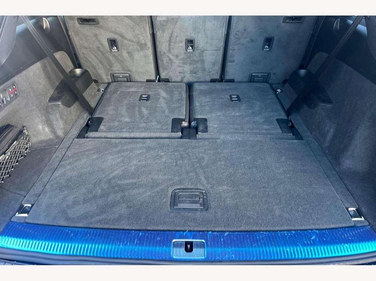 Audi connect safety and service (e-call), Audi connect with Amazon Alexa Integration, Audi drive select (Auto, Comfort, Dynamic, Efficiency, Individual, Off-road and All road), Audi phone box light with wireless charging, Audi virtual cockpit - 12.3" high-resolution LCD display with fully customisable instrument cluster, Bluetooth interface, Camera based traffic sign recognition, Electromechanical power steering, MMI navigation plus with MMI touch screens includes 10.1" and 8.6" screens with haptic feedback, Natural voice recognition, Operating buttons in Matte black, Parking system plus with 360 degree display (front, rear and side sensors) - acoustic and visual park assist system, Power operated tailgate, Rear view camera, Smartphone interface includes wireless Apple carplay/Android Auto, Start/stop system, 48V Mild hybrid technology, Adaptive air sports suspension, Quattro all wheel drive with self locking centre differential, Audi music interface - front 2 USB-C ports with charger and data functions, Audi sound system with 6 channel amplifier, 180 watt amplifying capacity and 10 loudspeakers including subwoofer, DAB digital radio module, Audi Beam uses LEDs to project S emblem with red rhombus onto the ground when opening the side doors (front/rear), Auto dimming frameless rear view mirror, Black exhausts, Black roof rails, Electrically adj heated/folding + automatically dimming exterior mirrors with memory + automatic kerb side function for passenger side exterior mirror, Heat insulating glass in windshield, Integrated LED indications in door mirrors, LED 3rd brake light, LED daytime running lights, LED rear tail lights, Loading edge protection in stainless steel, Matrix LED headlights with dynamic front and rear indicators, Privacy glass - dark tinted rear and rear side windows from B-pillar backwards, Rear side wing doors, Rear wiper, 2 seat bench in 3rd row, 2 zone automatic climate control, 3 seat bench in 2nd row, 7 seat layout with ISOFIX points for the front passenger seat and rear passenger seat, Black cloth headlining, Comfort front centre armrest, Electric adjustable front seat with 4 way lumbar support, driver memory functionality, Folding rear seats, Front head restraints, Front/rear floor mats, Heated front seats, Illuminated door sill trims with S logo, ISOFIX child seat mounting for front passenger seat and 2 outer rear seats with top tether child seat mounting for all 3 rear seats, LED interior ambient lighting, Luggage compartment cover, Luggage compartment sill protection in stainless steel, Rear head restraints, Single front passenger seat, Stainless steel pedals, Sunvisors with illuminated vanity mirrors, Black styling pack plus - Q7, 3 point seatbelts on all rear seats, Audi pre sense front, Child locks on rear doors, Convenience key with safelock and gesture tailgate, Driver and front passenger, front side and curtain airbags, Electromechanical parking brake, Electronic Stabilisation Control (ESC) including ABS, ASR and EDL, Extended pedestrian protection measures, Hill hold assist, Seatbelt reminder, Tyre pressure loss indicator, Warning triangle and first aid kit, Anti theft alarm with tow away protection, Anti-theft wheel bolts and wheel loosening detection, Keyless Go, Remote central locking, Polished oak trim with grey finish inlay, Tool kit, Tyre repair kit,