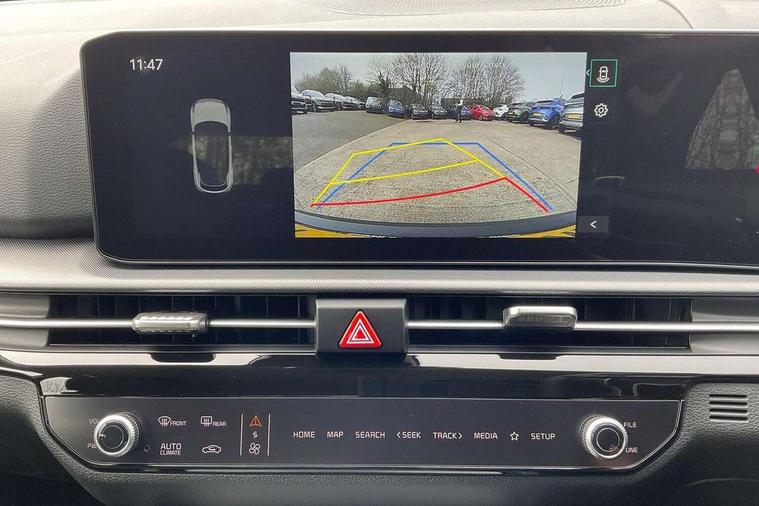 12.3" Touchscreen navigation system, 4.2" driver display screen, Bluetooth connection, Drive mode selector, Driver attention warning, E-call, Emergency stop signalling system, Forward collision avoidance assist (FCA) - city/pedestrian/cyclist/junction covering, Front and rear parking sensors, Highway Driving Assist (HDA), Intelligent speed limit assist, Kia Connect (UVO), Lane Following Assist (LFA), Lane keep assist, Low washer fluid warning, Motor driven power steering, Over the air (OTA) functionality, Reversing camera, Smart cruise control with stop and go functionality, Speed limiter, Tailgate, Trip computer, Windscreen washer level indicator, Wireless apple car play/android Auto, 6 speaker audio system, DAB Radio with MP3, Front passenger 1x USB-C port, Steering wheel mounted audio controls, USB-C port for connection of a media device, Auto dimming rear view mirror, Automatic defog system, Automatic headlight control system, Black bumpers with silver accents, Black radiator grille with silver surround, Black wheel arches, Body colour door mirrors, Body colour exterior door handles, Body colour radiator upper garnish and door garnish, Electric front and rear windows with front one touch function, Electrically adjustable/heated/folding door mirrors with LED indicators, Heated rear window, High beam assist, LED daytime running lights, LED Headlights, LED High mounted stop light, LED rear lights, Rain sensing wipers, Rear fog lamp, Rear roof spoiler, Rear side wing doors, Rear wiper, Satin finished beltline, Silver front and rear skid plate, Silver roof rails, Silver window surround, Trailer stability assist, 12V power socket in front and luggage compartment, 2nd row personal lamps, 3 seat bench in 2nd row, 3 x passenger assist grips, 40/20/40 split folding rear seat, All-round height adjustable headrests, Automatic air conditioning, Centre console storage box, Cloth upholstery, Cupholders in rear armrest, Door courtesy lamps, Driver and front passenger sunvisors with illuminated vanity mirrors, Driver's seat manual height adjust, Drivers seat power lumbar support, Front and rear door storage, Front cabin, rear & luggage compartment lights, Front passenger's seat manual height adjustment, Front seat and rear pockets, Gear shift indicator, Glovebox, ISOFIX Child seat top tethers and anchor fixings outer rear seats, Leather steering wheel, LED lighting in overhead console, Luggage area load cover, Luggage area parcel shelf, Luggage board, Luggage compartment under floor storage, Luggage net hooks, Manual adjust steering wheel, Metal paint interior door handles, Paddle shift controls, Rear air conditioning, Rear cabin light, Rear coat hooks, Single front passenger seat, Ventilation ducts to rear compartment, Active front headrests, All round 3-point seatbelts, Anti-lock braking system (ABS), Dual front side airbags, Dual horn, Dynamic brake control, Electronic parking brake with auto hold function, Electronic stability control with downhill brake control, Front passenger airbag cut-off switch, Front seatbelt pretensioners + load limiters, Height adjustable front seatbelts, Hill start assist control (HAC), Impact sensing auto door unlocking, Multi collision brake assist, Rear airbags, Rear door child safety locks, Rear seat alert system, Seatbelt reminder warning, Traction control, Twin curtain airbags, Twin front airbags, Tyre pressure monitoring system, Vehicle stability management, Customisable automatic door locking, Customisable automatic door unlocking, Door deadlocks, Engine Start/Stop Button with Smart Entry System, Locking wheel nuts, Smart key with motion sensor, Speed sensitive auto door locking, Thatcham category 2 security alarm and immobiliser, Visible vehicle identification number, 17" Alloy wheels, Tyre mobility kit,