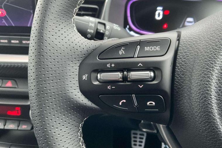 4.2" supervision colour cluster display, 8" touchscreen navigation, Apple car play/Android Auto with voice control, Cruise control + speed limiter, Electric power steering, Emergency call service, Emergency stop signalling system, External temperature display, Forward Collision-Avoidance Assist (FCA) - City/Pedestrian/Cyclist, Intelligent speed limit assist, Lane follow assist, Lane keeping assist system (LKAS), Driver attention warning (DAW) and High beam assist (HBA), Rear parking sensor, Reversing camera system, Speed limiter, Trip computer, Intelligent Stop and Go, Audio system with 6 speakers, Bluetooth with music streaming, Front USB port, Steering wheel mounted controls, All round electric windows with drivers auto up/down function, Automatic defog system, Automatic headlights control, Black rear roof spoiler with high mounted LED braking light, Black side sill, door garnish and wheel arch trims, Black/body colour bumpers, Body coloured exterior door handles, Chrome side window trim, Electrically adjustable/heated/folding door mirrors with LED indicators, Front and rear silver skid plates, Gloss black door mirrors with matt black lower housing, GT-Line body kit, Headlight levelling device, Heated rear window, High gloss black radiator grille, LED Bi-function projection headlights with static bending, LED daytime running lights, LED front fog lights, LED position light, LED rear combination lights, Premium paint, Privacy glass - Rear windows and tailgate, Rain sensing front wipers, Rear fog lights, Rear side wing doors, Rear wash/wipe, Roof rails, Shark fin antenna, Solar windshield glass, Speed variable front wipers, Tinted glass, Welcome and follow-me home light functionality, Windscreen Washer Level Warning, 12V power point front, 3 seat bench in 2nd row, 60/40 split folding rear seat, Adjustable cargo floor, Air filter, All-round height adjustable headrests, Alloy pedals, Aluminium pedals, Automatic air conditioning, Centre armrest storage box, Centre console with cupholders, Cloth and artificial leather upholstery, D-Cut perforated leather trimmed steering wheel, Dash illumination dimmer switch, Driver's seat height adjuster, Front and centre cabin lights, Front and rear door map pockets with bottle holder, Front and rear door storage, Gear shift indicator, Glovebox illumination, GT-Line Interior Styling, ISOFIX Child seat top tethers and anchor fixings outer rear seats, Leather trimmed gearshift, Luggage area light, Luggage area parcel shelf, Luggage net with hooks, Overhead console lamp, Overhead console with sunglasses cases, Passenger front seatback pockets, Rear USB charging port, Satin chrome interior door handles, Single front passenger seat, Sunvisors with vanity mirror illumination (Driver and front passenger), Tilt/telescopic adjustable steering wheel, ABS with Electronic Brakeforce Distribution (EBD) and Brake Assist System (BAS), All round 3-point seatbelts, Electronic stability control (ESC) and vehicle stability management (VSM), Front passenger airbag cut-off switch, Front seatbelt pretensioners + load limiters, Height adjustable front seatbelts, Hill start assist control (HAC), Impact sensing auto door unlocking, Manual child lock in rear doors, Rear airbags, Rear seat Occupancy alert, Seatbelt reminder warning, Twin curtain airbags, Twin front airbags, Twin front side airbags, Tyre pressure monitoring system, Alarm system, Customisable automatic door unlocking, Door deadlocks, Engine immobiliser, Locking wheel nuts, Remote central door locking with fold away key, Speed sensitive auto door locking, Visible vehicle identification number, High gloss black centre fascia, 17" GT-Line alloy wheels, Tyre mobility kit,