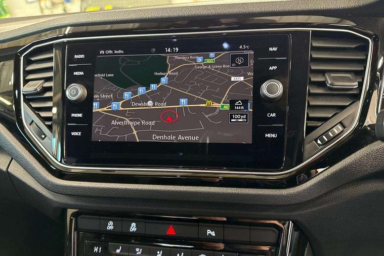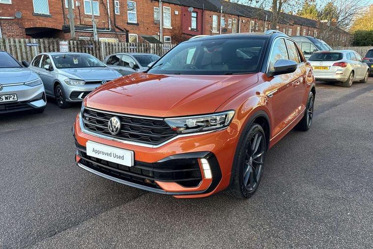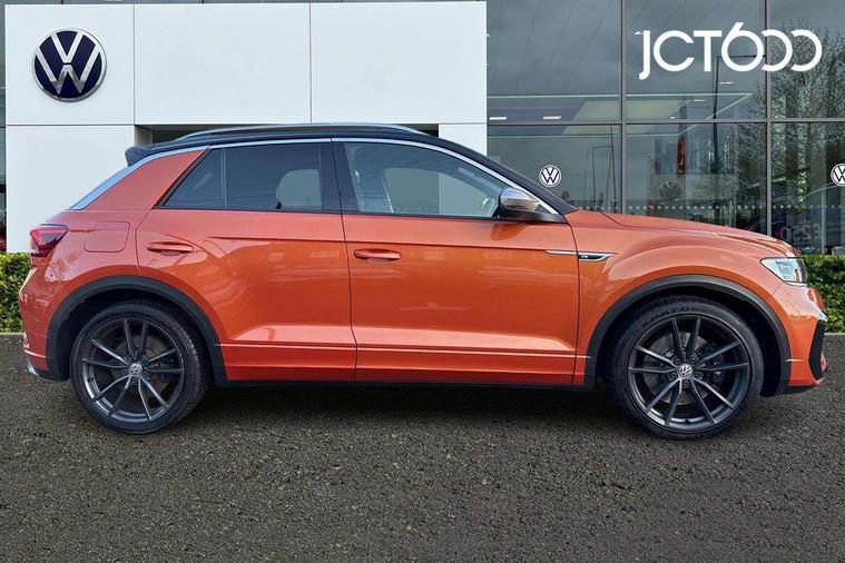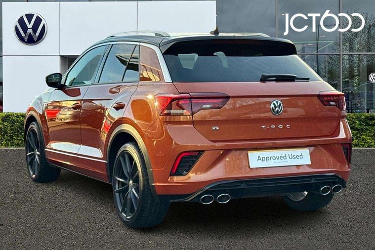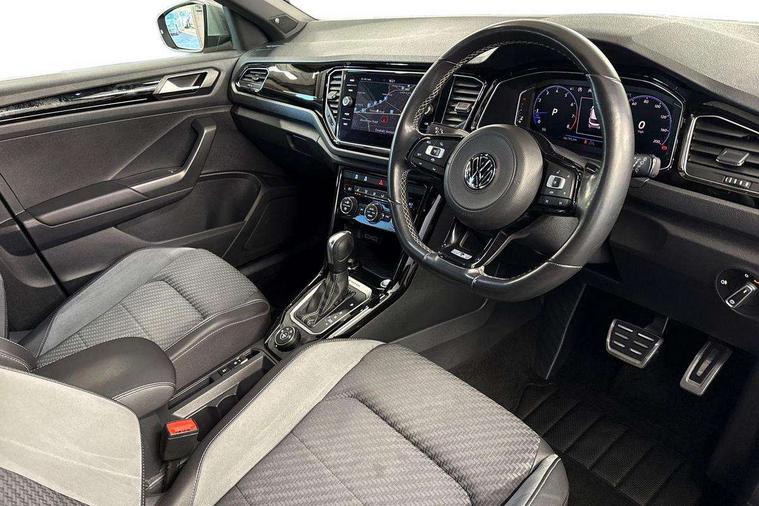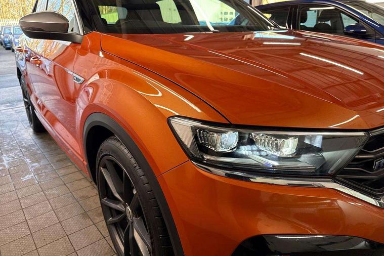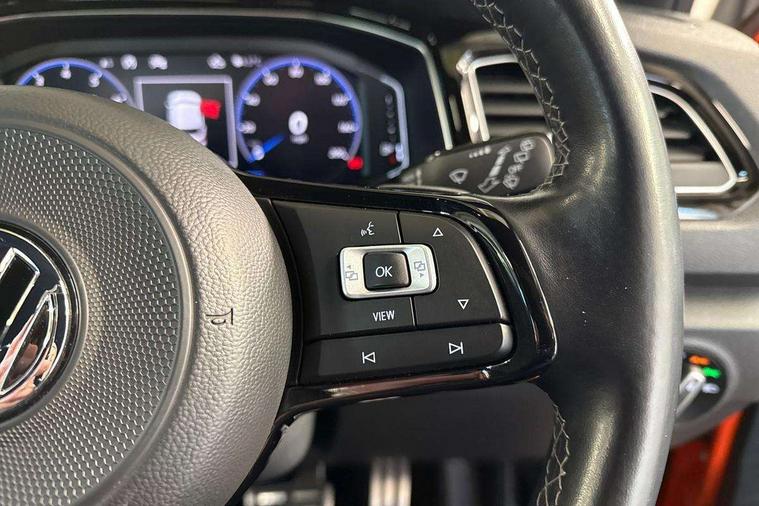 'Lights On' Reminder warning buzzer, 2 USB connection charging sockets, Active Info Display, 10.3" high resolution TFT dash display screen with customised information, Adaptive cruise control with front assist, radar sensor controlled distance monitoring, city emergency braking, App-Connect, Automatic start/stop system, Bluetooth telephone and audio connection for compatible devices, Car information display, Car-Net Security and Service, Discover navigation, 8" touch screen navigation/infotainment system with Car-Net, European map, CD/radio, 2D/3D map and speed limiter, Driver alert system with audible and visual fatigue detection system, Driver tips and journey analysis, Driving profile selection - Eco, normal, sport or individual modes with Individual mode allows for steering, drive and air conditioning settings, Lane assist, Multifunction computer with visual gear change recommendation for fuel consumption, Race mode in driving programme selection, Service interval indicator, Think blue trainer driver tips and journey analysis, Ultrasonic front and rear optical and audible parking sensors, Unique R instrument cluster, Voice activation, Warning sound and light for doors and tailgate open, Warning sound and light for front seatbelts unfastened, 4MOTION active control, Battery regeneration during braking, Four wheel drive, DAB Digital radio, Dynamic navigation based on TMC+, Multi device interface (MDI) with USB connection, Music playback - MP3, WMA and AAC files, Premium USB cable in choice of either Apple or Android smartphone compatibility, SD card slot, Simultaneous pairing of 2 compatible mobile devices, SMS functionality - read, compose and send SMS messages using touch-screen display, Three route options - Fast, Short, Eco, Title and cover art display, Auto dimming interior rear view mirror, Black grained lower door protectors, Black grained wheel arches, Body colour bumpers with silver metallic underbody fascia, Body colour door handles, Body colour rear roof spoiler, Dusk sensor, Electrically foldable, adjustable and heated door mirrors with puddle lights and reverse activated kerb-view adjustment on passenger's door mirror, Front and rear electric windows, Front windscreen wiper with intermittent wipe and 4 position delay, Fully galvanised body, Heated rear window, High level 3rd brake light, LED darkened rear light clusters, LED rear number plate lights, Manual coming/automatic leaving home lighting function, Radiator grille with R Logo, Rain sensor, Rear tinted glass from B-pillar backwards approx 65% tinted, Rear wash/wipe with intermittent wipe setting, Unique R badging, Unique R design key, Unique R door sill protectors, 12V socket in centre console storage area, 2 Front and rear reading lights incorporating LED technology, 3 rear head restraints, 4 load lashing points in luggage compartment, Ambient lighting in front footwell and light strips below trim in front doors, Black roof lining and sun visors, Branded points of interest, Climate control - 2 zone electronic air conditioning with automatic air recirculation and allergy filter, Drawer under drivers seat, Front and rear carpet mats with grey contrast stitching, Front centre armrest with storage compartment, longitudinal and height adjustable and two rear air vents, Front cupholders x 2, Front footwell illumination, Front seat back storage pockets, Front seat backrest, Glovebox, Height adjustable front seats, Height/reach adjust steering wheel, Illuminated vanity mirrors, Instrument lighting, white adjustable panel illumination, Interior light delay, Isofix easy fit child seat preparation for 2 outer rear seats, Load through provision with single cup holder when folded down, Luggage compartment cover, removable, Luggage compartment lighting, Lumbar support for driver's and front passengers seat, Split folding rear seat backrests with centre armrest, Stainless steel pedals with brake and accelerator, Storage compartment in left and right luggage area, Storage compartment in rear doors, Storage compartments in driver and front passenger doors, Three spoke multifunction leather trimmed steering wheel with grey contrasting stitching and aluminium inserts with R logo, Unique R gear lever knob, R styling pack - T-Roc, 3 rear three point seatbelts, ABS, Black brake calipers with R logo, Curtain airbags, Driver and front passenger safety-optimised head restraints, Drivers and front passengers airbags with passengers deactivation switch, Electronic parking brake with auto hold, Electronic stability control (ESC) includes ASR, EDL, EDTC and trailer stabilisation function, Front seat side impact airbags, Predictive pedestrian protection, Rigid safety cell with front and rear crumple zones, Three point height adjust front seatbelts + pretensioners, Tyre pressure loss indicator, Ventilated front and rear disc brakes, Volkswagen roadside assistance, Alarm with interior protection and deactivation via infotainment system, Electronic engine immobiliser, Remote central locking with 2 remote folding keys, 19" Pretoria alloy wheels with anti-theft wheel bolts, Space and weight saver spare wheel,