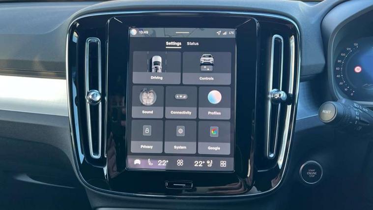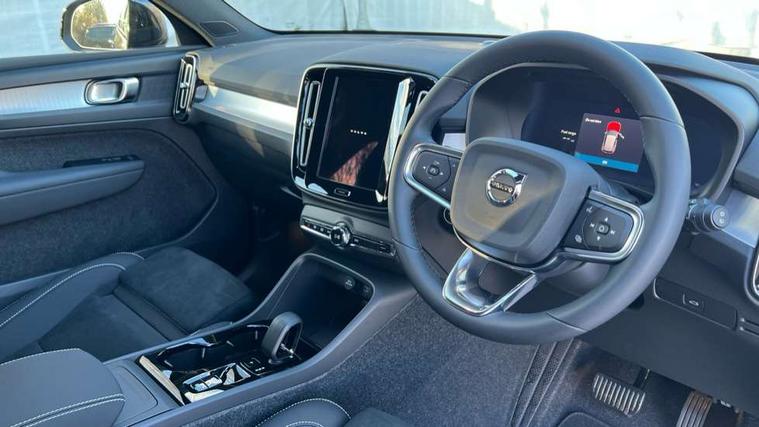 12.3" Progressive Driver Display, 9" centre console portrait touch screen, Adjustable steering wheel force, Android auto (Wired), Apple carplay (wired), Bluetooth handsfree system, Driver alert control, Driver assistance (pilot assist and adaptive cruise control), Driver awareness - Blind spot information system with steer assist, cross traffic alert with autobrake and rear collision warning and mitigation, E-call, Front and rear parking sensors, Front park assist, Google automotive services - Enabled entertainment apps, navigation with google maps, voice recognition with google assistant, Hands free power tailgate, Intelligent speed assistance, Lane keeping aid, Oncoming Lane Mitigation, Speed sensitive steering, Volvo cars services with app - Driving journal, emergency and breakdown call, engine remote start, remote door locking/unlocking and vehicle dashboard, Wireless/Inductive Mobile Phone Charging, Automatic transmission with start/stop and manual change functions, Dynamic chassis, DAB Digital radio, Steering wheel mounted remote controls, Adaptive brake lights with high level LED brake lights, Auto dimming feature for exterior door mirrors, Auto dimming interior mirror, Auto folding and heated power door mirrors, Automatic headlamp levelling, Automatic LED Headlights + Active high beam incorporating daytime running lights, Front aluminium tread plates, Front and rear electric windows, High gloss black front and rear skid plate, High gloss black front bumper deco, High gloss black mesh front grille with high gloss black surround, High gloss black window trim, Home safe and approach lighting, Integrated roof rails in high gloss black, LED front fog lights, Puddle lights, Rain sensor with automatic windscreen wiper activation, Rear side wing doors, Rear wiper, Roof antenna, Roof spoiler, Visible VIN plate, 12V socket in front tunnel console and luggage compartment, 2-Zone electronic climate control with CleanZone air quality system and pollen filter, 3 seat bench in 2nd row, 3 Spoke tailored steering wheel with chrome trim, 60/40 versatile split folding rear seat, Centre console cupholders and storage, Charcoal carpet and floor mats, Charcoal headlining, Connect suede textile/microtech upholstery, Flexible load floor and grocery bag holder, Front headrests, Front seat cushion extensions, Glovebox bag hook, Heated front seats, Height adjustable passenger seat, Height/reach adjustable steering column, High gloss centre tunnel deco, High level illumination - Front door pocket, front side step (under door), tailgate, instrument panel, front door inlay, rear courtesy&reading lights, Integrated waste bin, Isofix attachments on outer rear seats, Load cover, Load protection net, Mid level illumination - Front footwell, luggage & glovebox compartment, front cabin courtesy & reading lights, illuminated vanity mirrors+ticket holder, Multi directional lumbar support for driver and passenger seat, Power driver seat with memory + exterior mirrors memory, Rear armrest with cupholders, Rear headrests, Single front passenger seat, Underfloor luggage compartment storage, Climate pack without heated front seats - XC40, 3x3 point rear seatbelts, City safety with steering support with Pedestrian + cyclist + front collision warning with full auto brake and rear auto brake, Driver and passenger airbags, Drivers knee airbag, Electronic parking brake with auto hold, First aid kit, Front and outer rear seatbelt reminder and pretensioners, Front seats SIPS airbags, Hill descent control - Off-road drive mode, Hill start assist, IC (Inflatable Curtains) - Full Length, Passenger airbag cut-off device, Power child locks on rear doors, Road sign information display, Run off Road Protection, SIPS (Side Impact Protection System), Slippery road and hazard light alert, Stability and Traction Control with Spin control, Engine Drag Control and Corner Traction Control, Tyre pressure monitoring system, Vehicle deceleration control with Anti-lock Brake System, Electronic Brake Distribution and Emergency Brake Assist, Warning triangle, WHIPS whiplash protection system - front, 2 x Key integrated remote control central locking including with deadlocking system and auto open/close windows, Anti-theft alarm including immobiliser/volume sensor + level sensor, Keyless drive includes keyless entry and keyless start, Locking wheel nuts,
