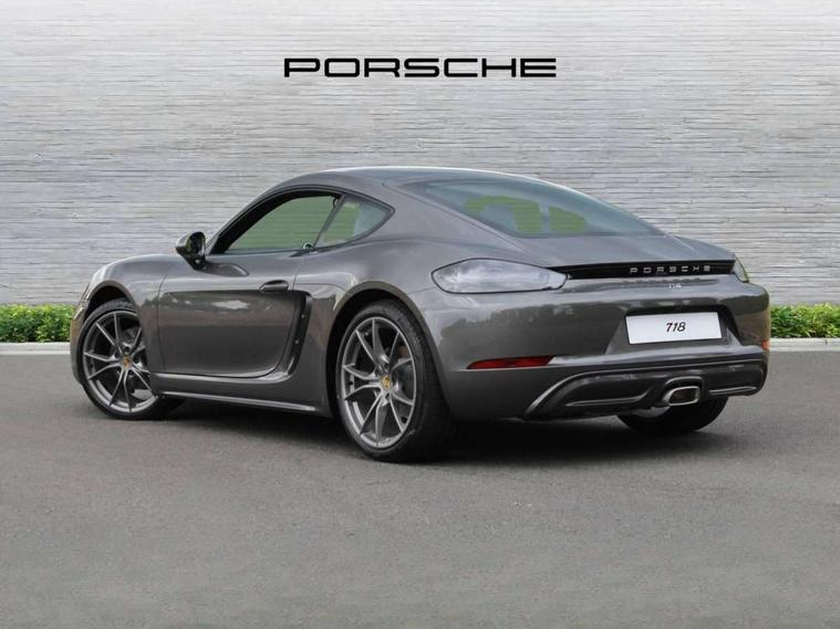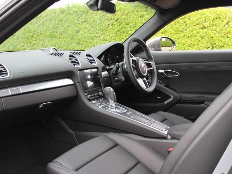 Auto start and stop system, Digital displays for vehicle speed, chosen gear, odometer, trip odometer and clock, eCall emergency call system, Instrument cluster with central rev counter and high-resolution 4.6 inch colour display, Porsche Communication Management (PCM) including online navigation module, mobile phone preparation, audio interfaces and voice control system, 3-way catalytic converters and on-board diagnostics for monitoring emission control system and coated particulate filter, 4 valves per cylinder, Aluminium block and cylinder heads, Direct fuel injection (DFI), Gasoline particulate filter, Integrated dry-sump lubrication with an on-demand oil pump, Porsche Doppelkupplung (PDK), Porsche Stability Management (PSM) with ABS, advanced brake functions, Rear wheel drive, Turbocharger with intercooler, Two seater vehicle with mid mounted engine, VarioCam Plus variable valve timing and switchable valve lift, Water cooled with thermal management, DAB Digital radio, Integrated 4G/LTE compatible SIM including data for the Porsche Connect Services, Integrated compatible SIM including Porsche Connect Services, Navigation incl porsche + Apple Carplay, connect module, wireless internet access, carfinder, remote vehicle status, remote service and vehicle track, Wifi and music streaming, Auto deploying rear wing, Automatic headlight activation including welcome home lighting, Automatically extending rear boot spoiler, Body colour bumpers, Body colour door handles, Electrically adjustable heated exterior mirrors on door waist rails, aspherical on driver's side, Green tinted heat insulating glass, Grey top tinted windscreen, Heated rear windscreen, Intelligent lightweight body in Aluminium/Steel composite construction, LED 3rd brake light, Power windows with one touch operation and door seal protection, Rain sensor, Rear boot, Separate auxiliary lights in the front end with LED indicators and position lights, Twin tract exhaust system with central tailpipe in stainless steel, Wide opening rear hatch with heated screen, Windscreen washer system with two wiper speeds and washer jets, 12V sockets in passenger footwell and centre console storage compartment, 718 logo on gear lever, Adjustable fan with air recirculation and defroster functions, Ascending centre console with uncovered storage compartment and closed storage compartment, Clothes hooks on front seat backrests, Footwell illumination, Front and rear luggage compartments, Front headrests, Heated seats, LED reading lights, orientation, ignition lock, additionally luggage compartment and glove compartment lighting, Lockable glovebox, Seat centres in race tex, side bolsters and headrests in leather, Single front passenger seat, Smooth finish leather on steering wheel rim, gear lever and door handles, SPORT button to activate dynamic driving settings for engine, transmission (with PDK), Storage compartments in each doors, Two individual cup holders (Passenger side, integrated into dashboard trim strip), 3 point automatic seatbelts, ASR, Electrically controlled parking brake, Front and rear lightweight spring strut axle, Front seatbelt pretensioners + load limiters, Full size driver and passenger airbags, Passenger airbag deactivate switch, Porsche side impact protection doors with thorax airbag in outer backrest side bolster and head airbag for driver/passenger in door panel, Tyre pressure monitoring system, Alarm system with interior surveillance, Anti-theft wheel bolts, Dashcam prep, Engine immobiliser with in key transponder, central locking and remote control, Tyre repair kit,