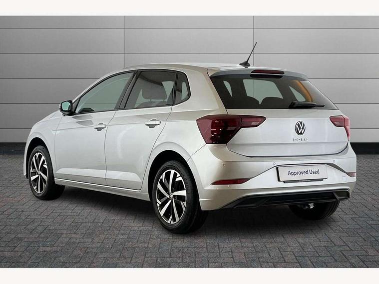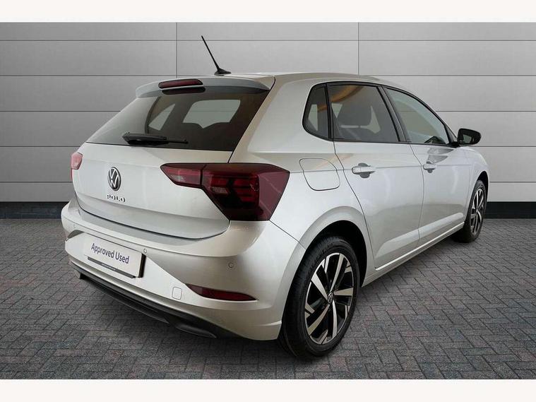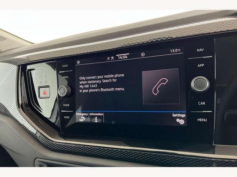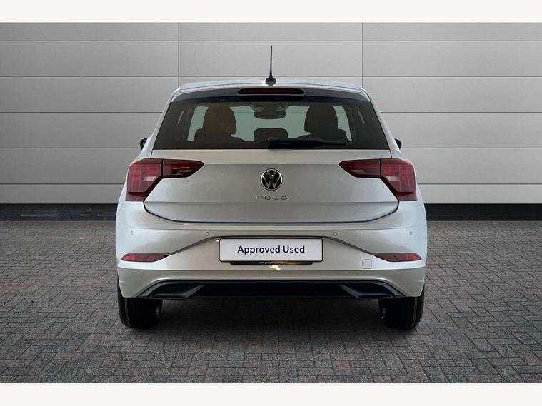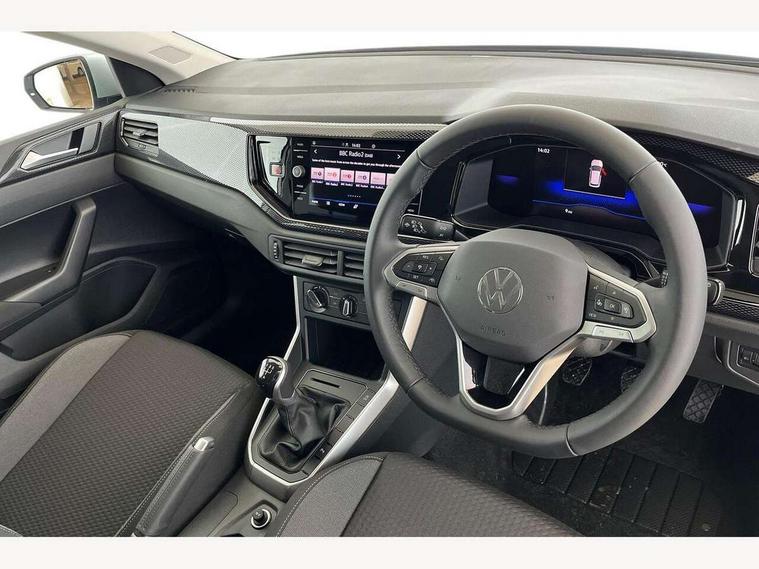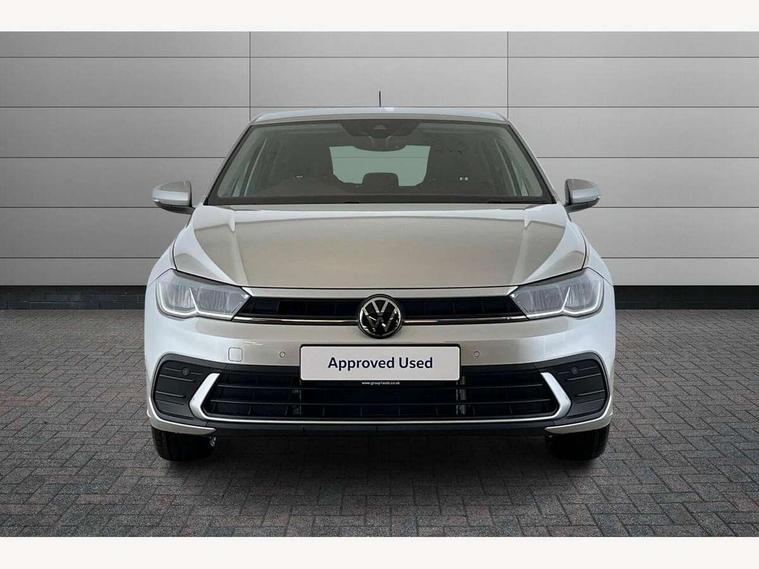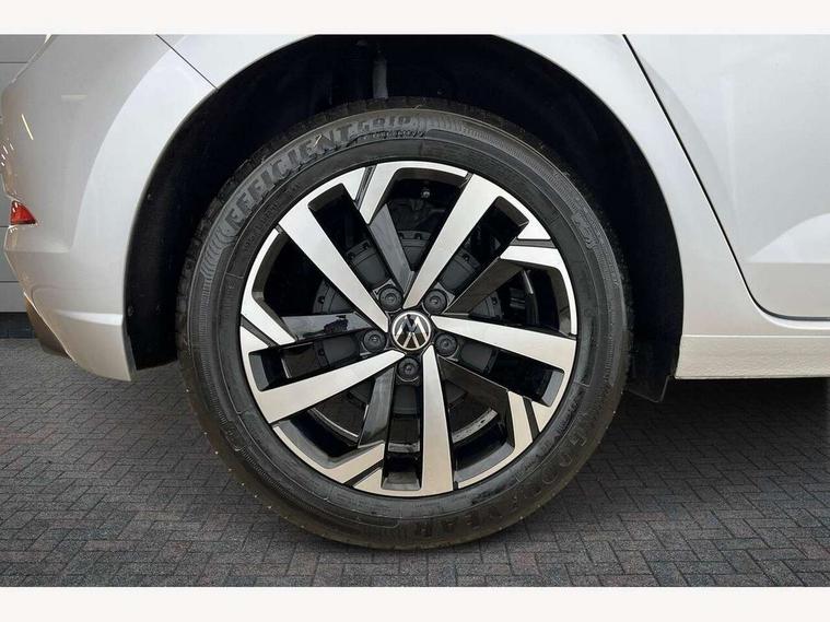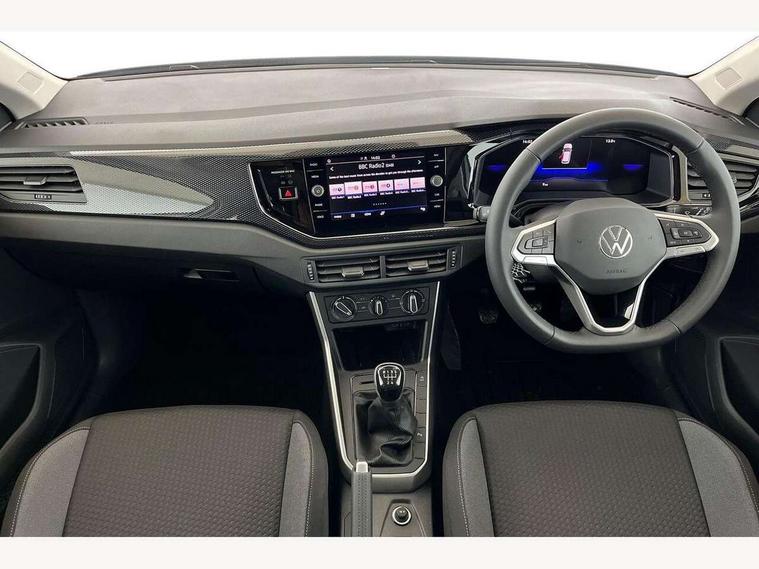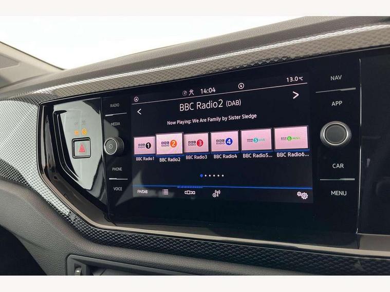 Adaptive cruise control without follow-to-stop and speed limiter, Advanced driver attention and drowsiness monitor, Bluetooth mobile phone interface, Dynamic road sign display, Emergency call service, Multifunction front facing camera for distance control, Power assisted speed sensitive steering, Preparation for navigation system with media and internet package, Preparation for We connect and We connect plus, Rear view camera, Speedo and rev counter, electronic odometer, trip, service interval display and exterior temperature gauge, Standard rear axle, Travel Assist - Lane keeping system and traffic jam assist, Travel assist including emergency assist, Trip computer, Warning signal and warning light for front and rear seatbelts not fastened, Washer fluid level indicator, Wireless app connect, Front wheel drive, Rear shock absorpion, Start-stop system with battery regeneration (recuperation - energy recovery during braking), DAB Digital radio, Diversity antenna for FM reception, Automatic dimming interior rear view mirror, Automatic headlight control with LED separate daytime running lights with coming/leaving home function, Body colour bumpers with chrome inserts, Body colour door handles, Body colour door mirrors, Electric front windows, Engine badge deletion, Headlight range adjustment, Heat insulating and laminated safety glass windshield, LED Headlights, LED rear combination lamps, Power folding adjustable/heated exterior mirrors and front passenger exterior mirror lowering function, Rain sensor, Rear electric windows, Rear fog light, Rear side wing doors, Rear tinted glass from B-pillar backwards approx 65% tinted, Rear windscreen washer and wiper with interval delay, Third brake light, 12V power socket in centre console, 2 front and 2 rear reading lights with switch off delay and dimmer, 2 USB-C ports in the front, 2 USB-C charging sockets on the center console in the rear, 3 rear head restraints, 60/40 split folding rear seat and rear seat bench not split, Ceramique roof lining, Chrome plated radiator grille inserts, air vent surrounds and light switch surrounds, Door and side trim panel, Driver and front passenger seat height adjustment, Driver/passenger sunvisors with illuminated vanity mirrors, Front centre armrest, Front seat backrest storage pockets, Front standard seats, Handbrake lever handle in leather, Hartley/Thomas cloth upholstery, Headliner in recycled material, Isofix child seat preparation easy-fit (for two outer rear seats, and front passenger seat) compatible with I-size, Leather trimmed gear knob, Luggage compartment cover, Luggage compartment lighting, Removable luggage compartment floor, Single front passenger seat, Standard climatic zones, Standard pedal cluster, Three spoke leather wrapped multifunction steering wheel, Light and vision pack - Polo, 3 point height adj front seatbelts + pretensioners, 3 point seat belt for centre rear seat, 3 point seatbelts, outer rear with ECE lable, ABS, Driver and front passenger airbag with front passenger airbag deactivation, Drivers and front passengers safety optimised head restraints, ESC (Electronic stability control) + EDL (Electronic Differntial lock) and ASR (Traction control), Extended and predictive pedestrian/ cyclist protection, Front assist with autonomous emergency braking (for Adaptive Cruise Control ACC up to 130 mph), Front curtain and side airbags with center airbag, Front disc brakes, Hill hold control, Manual child lock in rear doors, Rear drum brakes, Single tone horn, Tyre pressure loss indicator, Alarm with interior protection, Anti-theft alarm system with interior monitoring, backup horn, and towing protection, Anti-theft wheel bolts, Electronic engine immobiliser, Lava stone black gloss/matt decorative inserts in dash and front door panels, 16" Torsby alloy wheels, Low rolling resistance tyres,