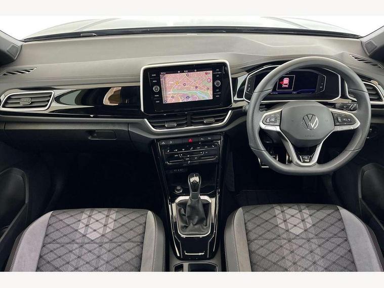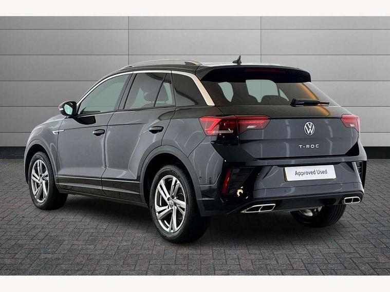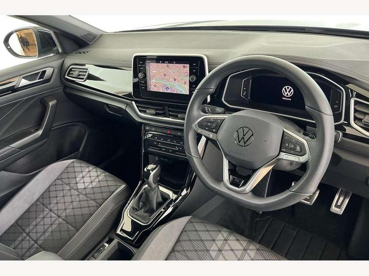 10.25" Digital cockpit pro, Advanced driver attention and drowsiness monitor, Emergency call service, Lane keeping system Lane Assist, Mobile phone interface, Modified key software - reduce switch off time for key status change to Long no motion, Online services, Park assist including front and rear parking sensors, Service interval indicator, Tailgate/trunk lid release from outside, Think blue trainer driver tips and journey analysis, Warning sound and light for front seatbelts unfastened, Wireless app connect, Battery regeneration during braking, Start/stop function with battery regeneration, DAB Digital radio, Diversity antenna for FM reception, Front and rear 6 speakers, Music playback - MP3, WMA and AAC files, Premium USB cable in choice of either Apple or Android smartphone compatibility, SD card slot, Simultaneous pairing of 2 compatible mobile devices, Title and cover art display, We Connect and We Connect Plus functionality, Auto dimming interior rear view mirror, Automatic hazard lights activation under emergency braking, Automatic headlight control with LED separate daytime running lights with coming/leaving home function, Body coloured exterior mirror housings and door handles, Electrically adjustable and heated door mirrors, Extended roof spoiler, Exterior mirrors aspherical on driver side, convex on front passenger side, External USB type C socket and charging sockets, Front windscreen wiper with intermittent wipe and 4 position delay, Heated rear window, LED 3rd brake light, LED rear combination lamps, LED rear number plate lights, Power windows with comfort operation and circuit breaker, Privacy glass for rear side windows and rear window, R-Line design body coloured bumpers, Rain sensor, Rear exhaust tailpipe, Rear fog light on one side and reversing lights on both sides, Rear side wing doors, Rear wash/wipe with intermittent wipe setting, Remote electrically foldable door mirrors, puddle lights and reverse activated passenger's door mirror, 12V power socket in centre console, 3 rear head restraints, 3 seat bench in 2nd row, 4 load lashing points in luggage compartment, Air care climatronic air conditoning system with active combination filter and 2-zone temperature control, Black roof lining, Chrome plated decorative trims, Chrome plated radiator grille inserts, air vent surrounds and light switch surrounds, Door and side trim panel with leatherette insert, Front + rear carpet mats, Front centre armrest, Front cupholders x 2, Front footwell illumination, Front reading light, Front scuff plates with R Line logo, Front seat back storage pockets, Glove compartment door with light, Instrument lighting, white adjustable panel illumination, Interior ambient lighting and surround lighting, Interior light delay, Isofix child seat preparation, Leather gearshift handle, Load-through provision with cup holder when folded down ('Unsplit rear seat bench, split folding backrest, with centre armrest), Luggage compartment lighting, Single front passenger seat, Stainless steel pedals, Storage compartment in left and right luggage area, Storage compartment in rear doors, Storage compartments in driver and front passenger doors, Sunvisors with illuminated vanity mirrors, Variable boot floor, height adjustable and removable, Driver assistance pack without proactive passenger protection - T-Roc, 3 point height adj front seatbelts + pretensioners, 3 point seatbelts in outer rear with ECE label, ABS, Child locks on rear doors, City emergency braking and pedestrian monitoring, Driver and front passenger airbag with front passenger airbag deactivation, Driver and front passenger safety-optimised head restraints, Drivers seatbelt reminder, Electronic parking brake, Electronic Stability Control (ESC) inc EDL (Electronic Differential Lock) and ASR (Traction Control), Front and rear passengers curtain airbag system including front side airbags, Hill start assist, Predictive pedestrian protection, Rear disc brakes, Two tone horn, Tyre pressure loss indicator, Volkswagen roadside assistance, Piano black decorative inserts in dashboard and front door trim panels, Trims for alloy wheels,