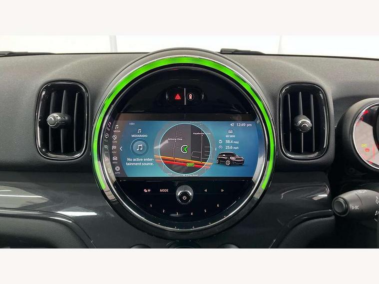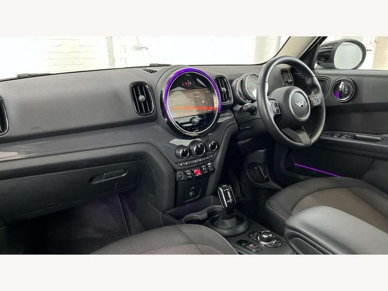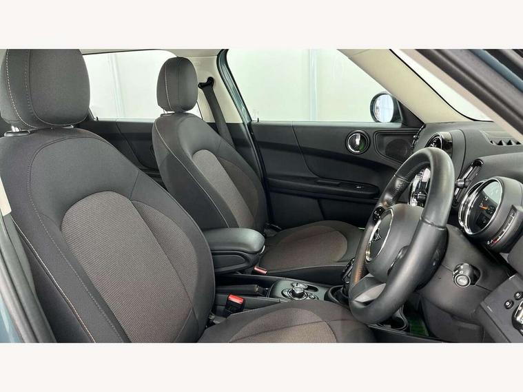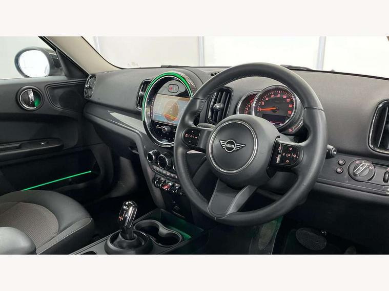 Active Guard incl speed limiting and lane departure functions with auto steering, and front collision warning with brake intervention, Automatic start/stop function with brake energy recuperation, Compatible mobile phone bluetooth with audio streaming, Cruise control with brake assist, Electro-mechanical speed dependant steering assistance, Instrument cluster, Mini E-call, On board computer, Rear parking distance control, 51 Litre fuel tank, Double Vanos system, Fully variable valve control, High precision injection, Performance Control, Steptronic transmission with double clutch, FM tuner and DAB digital radio, 3rd brake light, Body colour fuel filler cap, Day time driving lights, Door sill strips, Dynamic brake lights, Electric windows, Heated rear window, Heated windscreen washer jets, LED fog lights, LED Headlights, Left exhaust tailpipe with chrome finisher, Model logo, Model logo on Tailgate, Radiator grille, Rain sensor with auto headlights, Rear fog lights, Rear side wing doors, Rear window wiper, Side scuttle panel with integrated indicator, Split rear doors, Sun/heat protection glass, White indicator lenses, 12V socket in centre console, 3 seat bench in 2nd row, 3 spoke sport leather steering wheel + limiter function and audio controls, 360L luggage compartment capacity, 4 lashing eyes in luggage compartment, 40:20:40 split folding rear seats, Chrome interior highlights, Colour line - Carbon black, Cupholders, English handbook, Floor mats, Front headrests, Glove compartment, Headliner with grab handles and clothes hooks, Height and length steering column adjustment, Interior lighting with 12 basic colours selectable via toggle switch in roof, Isofix rear child seat preparation, Leather gearshift lever and handbrake gaiters, LED reading lights, vanity mirror lights, front foot well light and spotlight on front seats, Manual air conditioning, Mechanical seat adjustment, driver seat height adjust, forward/back and front seats backrest, Multifunction steering wheel, Passenger seat height adjuster, Rear headrests, Single front passenger seat, Storage compartments in doors, Sunvisors with vanity mirrors, Excitement pack - Countryman, Navigation pack - Countryman, 2 tone horn, 3 point seatbelts on all seats, 6 Airbags - front, side, head and seat belt tensioners, Anti-lock braking system (ABS), DSC - Dynamic Stability Control, Electronic handbrake, Front and rear disc brakes, Hill start assist, Manual rear child locks, Tyre pressure monitoring system, Alarm system with tilt sensor, monitoring doors, bonnet interior and tailgate, Auto drive away locking, Deadlocking function, Electronic vehicle immobiliser, Locking wheel bolts, Start/stop toggle with keyless go, Tool kit,