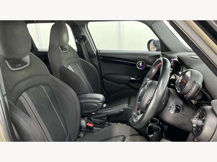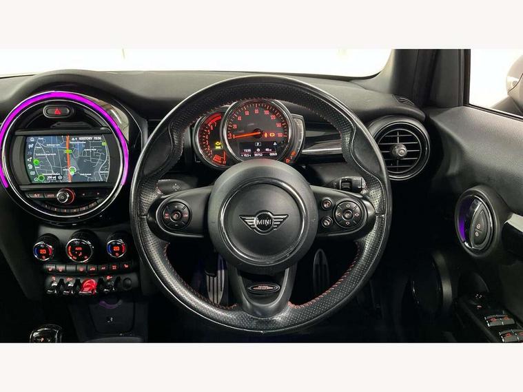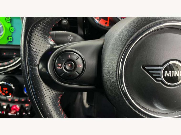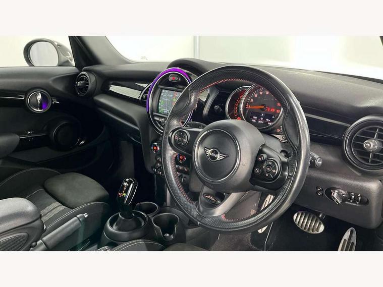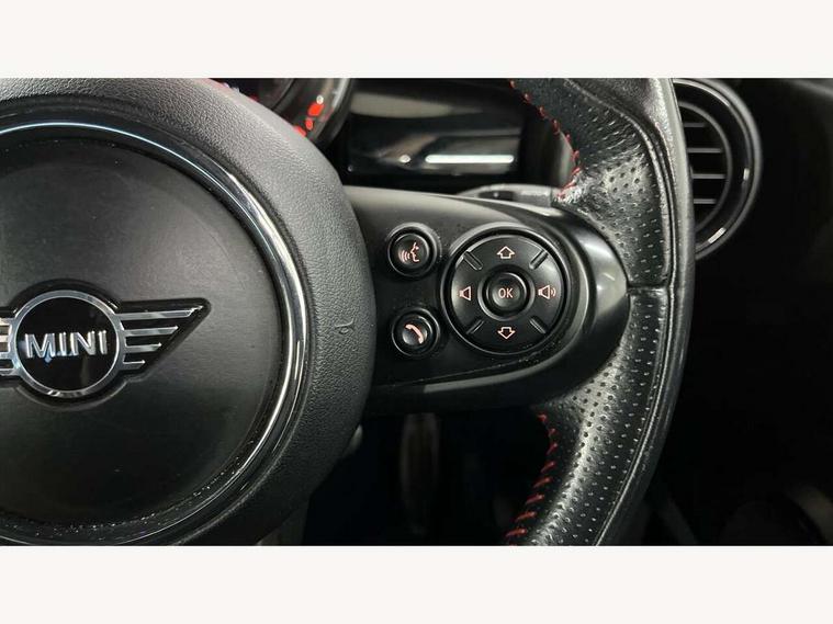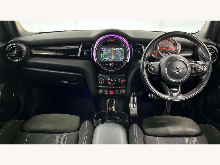 Compatible mobile phone bluetooth with audio streaming, Cruise control with brake assist, Instrument cluster, Mini E-call, MINI TeleServices, On board computer, Service interval indicator, Performance Control, Steptronic transmission with double clutch, 6.5" touchscreen with LED ring, FM tuner and DAB digital radio, Automatic headlight activation switch, Body colour fuel filler cap, Chrome border high gloss black slats radiator grille, Dynamic brake lights, Electric front+rear windows, Heated rear window, Heated windscreen washer jets, John Cooper Works - aerodynamic kit (front and rear apron, spoiler), front and rear sport bumpers and part-painted side sills with door sill finishers, John Cooper Works rear spoiler, LED headlight with closed ring and daytime driving lights, Left exhaust tailpipe with chrome finisher, Metal door sill strips with MINI imprint, Model logo Cooper on right of tailgate, Rain sensor window wipers, Rear fog lights, Rear LED lights with union jack design, Rear window wiper, Side scuttle panel with integrated indicator, Sun/heat protection glass, White indicator lenses, 12V Accessory socket in centre console, 4 lashing eyes in luggage compartment, 60/40 split folding rear seat, Chrome interior highlights, Cupholders, Front and rear isofix with front passenger airbag deactivation, Glove compartment, Height and length steering column adjustment, Interior lighting with 12 basic colours selectable via toggle switch in roof, John Cooper Works leather steering wheel with contrasting stitching in Chilli Red with John Cooper Works logo, John Cooper Works Logo in seat, Leather gearshift lever and handbrake gaiters, LED reading lights, vanity mirror lights, front foot well light and spotlight on front seats, Manual air conditioning, Mechanical seat adjustment, driver seat height adjust, forward/back and front seats backrest, Mini logo projection on floor from drivers exterior mirror, Multifunction steering wheel, Storage compartments in doors, Sunvisors with vanity mirrors, 3 point seatbelts on all five seats, 6 Airbags - front, side, head and seat belt tensioners, Anti-lock braking system (ABS), DSC - Dynamic Stability Control, Front and rear disc brakes, Hill start assist, Single tone fanfare horn, Tyre pressure monitoring system, Alarm system with tilt sensor, monitoring doors, bonnet interior and tailgate, Electronic vehicle immobiliser, Start/stop toggle with keyless go, Tool kit,