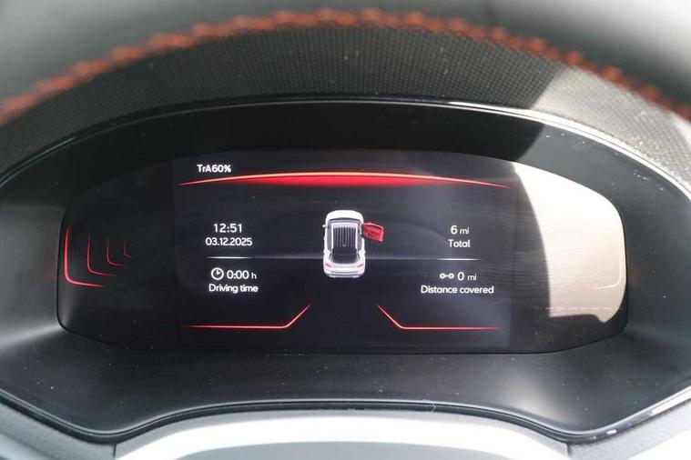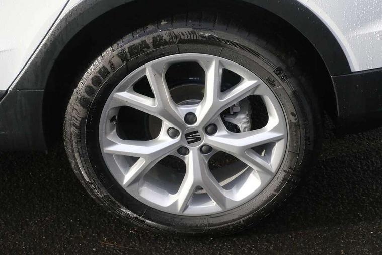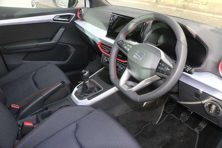 'Lights On' Reminder warning buzzer, 8" Digital cockpit, Digital clock, E-call, Electric speed sensitive power steering, Full link smartphone integration with mirror link, wireless apple carplay, Google android auto + USB Type C cable for apple and android devices, Lane keeping system, Low fuel warning light, Outside temperature display, RPM counter, SEAT Drive profile - Four different models normal-sport-eco-individual, steering response, throttle response, Trip computer, Wireless phone charger, 9.2" colour touchscreen with navigation system, voice control and USB port (type c), Bluetooth interface for hands free and audio streaming, DAB digital radio and AM/FM radio, Steering wheel mounted audio controls, Anti theft roof antenna, Auto dimming interior rear view mirror, Automatic activation of hazard warning lights, Body coloured bumpers, Body coloured door handle inserts, Chrome roof rails and window surrounds, Dark tinted rear windows, Electric front/rear windows, Electrically adjustable, heated and folding door mirrors, Front fog lights with cornering function and rear fog light, FULL LED automatic headlights with dynamic headlight range control, coming and leaving home, LED daytime running lights, LED rear tail lights and licence plate lights, Protective side mouldings, Rain sensing wipers, Rear side wing doors, Rear spoiler, Rear window wash/wipe, Roof colour door mirrors, Third brake light, Twin exhaust pipe styling hidden exhaust pipe, Visible VIN plate, 2 cupholders, 3 seat bench in 2nd row, 60/40 split folding rear seat, Aircare filter, Black interior roof, Cloth upholstery, Double boot floor, Driver sunvisor with covered mirror + card holder, Dual zone climate control, Front courtesy light with front reading lights, Gear shift indicator, Height adjustable front seats, Height/reach adjustable steering column, Illuminated air vent surrounds, Illuminated boot, Instrument lighting with brightness control, Interior ambient lighting, Interior light in footwell, central console and door panel, ISOFIX points in outer rear seats with top tether anchorage points, Passenger sunvisor with vanity mirror, Perforated flat bottomed leather steering wheel/gear knob/handbrake with red stitching and FR logo, Potentiometer, Single front passenger seat, Two front and three rear height adjustable headrests, Interior chrome pack - Arona, Safe and driving pack (S) - Arona, 3 point seatbelts on all rear seats, ABS, Active front headrests, Child locks on rear doors, Driver and front passenger airbags with front passenger airbag de activation, front side and curtain airbags, Emergency Brake Assist (EBA) and front assist, Front and rear seatbelt reminder, Hill hold control, Multi-Collision braking, Tiredness recognition system, Traction control, Tyre pressure monitoring system, Alarm with back up horn with tow away protection, Deadlock, Electronic engine immobiliser, Locking wheel bolts, Remote central locking, Titan black dashboard, 17" Dynamic alloy wheels,