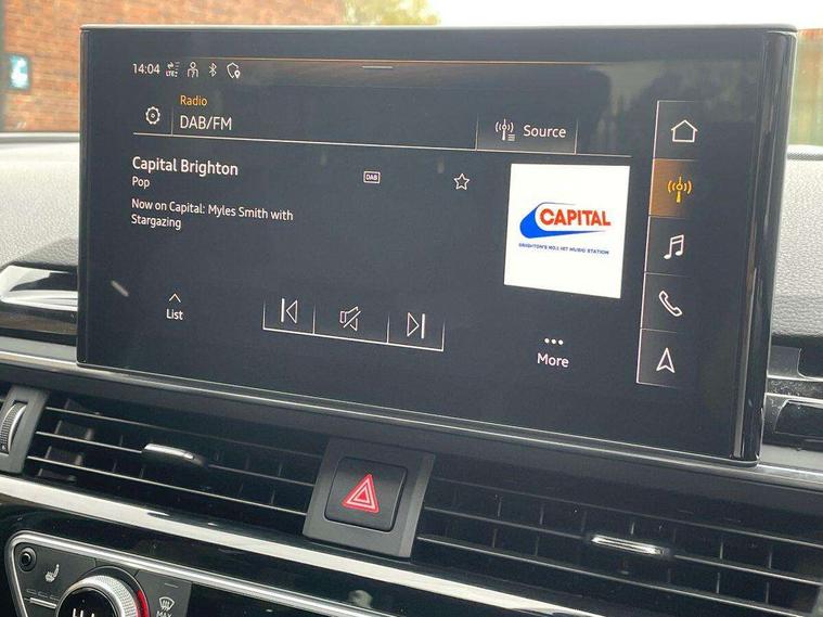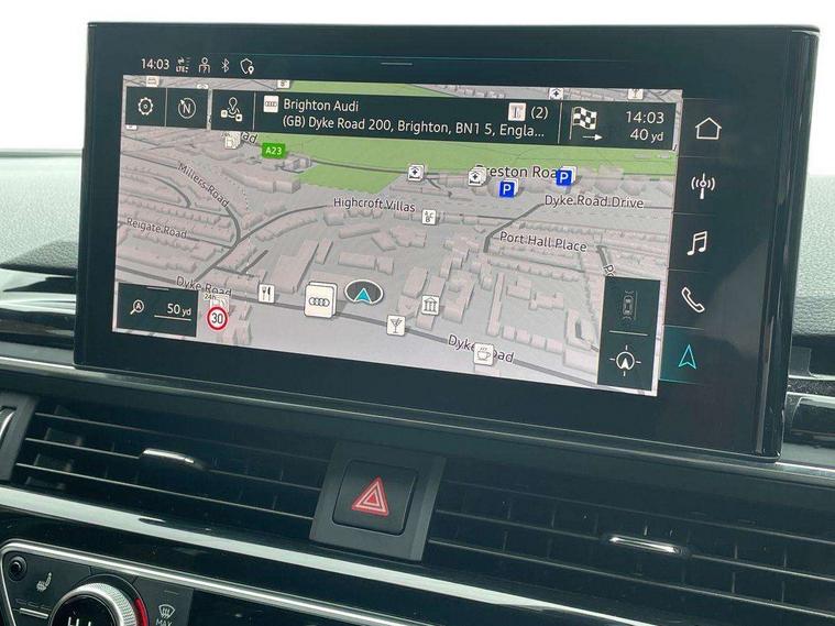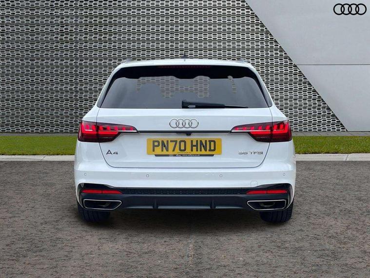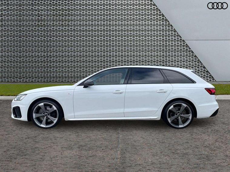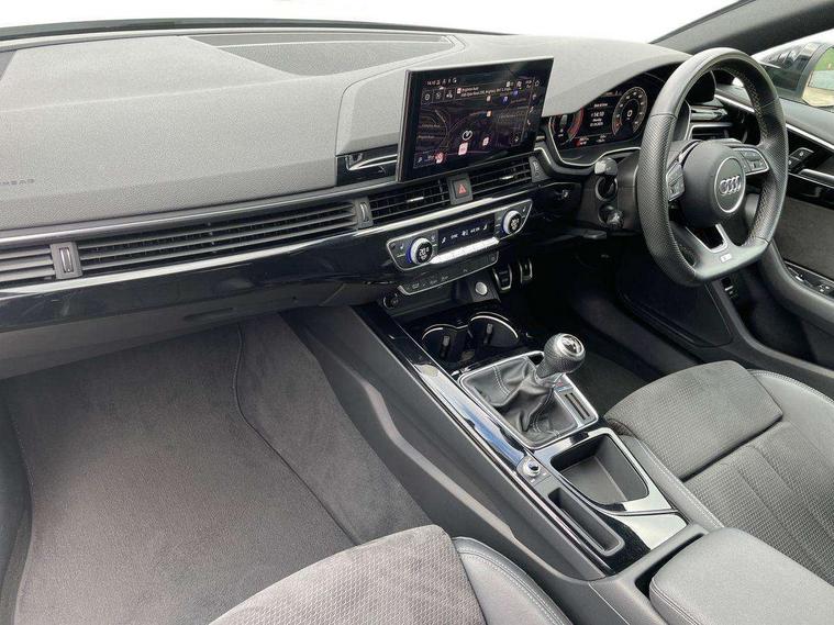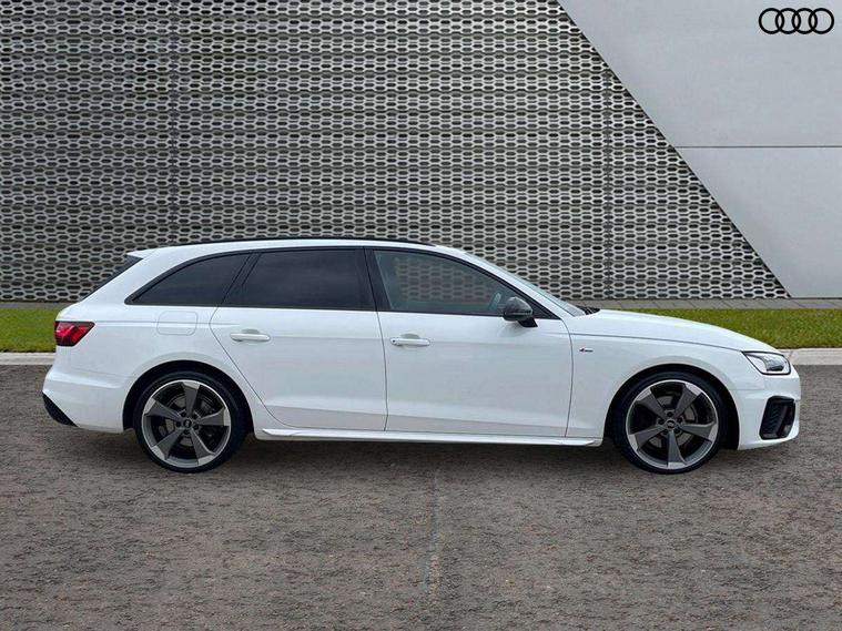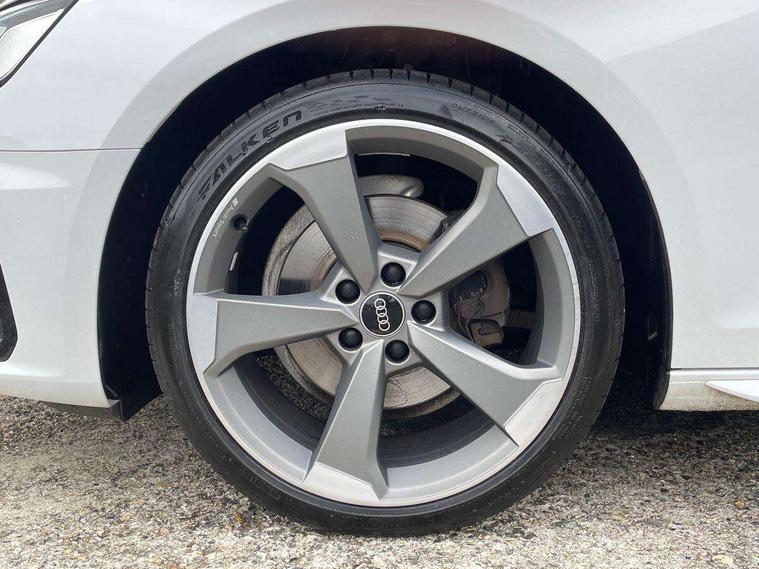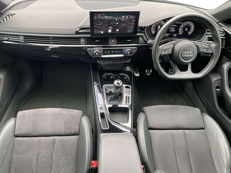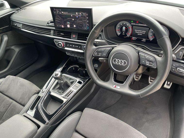 Audi connect safety and service (e-call), Audi drive select, Audi parking system plus with front and rear sensors, Audi smartphone interface, Audi virtual cockpit, Automatic start-stop system with coasting functionality and efficiency programme, Bluetooth interface, Cruise control system with speed limiter, Electromechanical power steering, MMI Navigation plus with MMI touch includes 10.1" high resolution colour MMI display, 3D map, Power operated tailgate, Rear view camera, Voice control system, 54 litre fuel tank, Sports suspension lowered by 23mm, 2 USB charging ports, 8 passive loudspeakers, DAB digital radio reception, Auto dimming rear view mirror, Body colour door handles, Body colour front spoiler lip, Body colour side sill trim, Electrically folding auto dimming/adjustable/heated door mirrors with LED side indicators and kerb view function for passenger side, Grained matt black side air inlets with matt aluminium silver inlay, High beam assistant, LED headlights with LED rear lights + dynamic rear indicators + headlight adjustment and high beam, turning light + LED daytime running lights, Matt aluminium silver tailpipe trim, Rain and light sensors, S Line badges on the front wings, S line front and rear bumpers with side skirts, S Line rear diffuser in matt titanium black with trim strip in matt aluminium silver, S Line roof edge spoiler, Windscreen with acoustic glazing, 3 spoke flat bottomed high multi-function leather sport steering wheel, 4 way electric lumbar support for driver and front passenger, 40/20/40 split folding 3 rear seat bench in 3 parts with rear centre armrest, Black cloth headlining, Black perforated leather gearknob, Contrast stitching on seats, steering wheel and gear lever gaiter, Deluxe 3 zone electronic climate control, Door sill trims with aluminium inlay, Electric load area cover, Front and rear head restraints, Front centre armrest, Heated front seats, Illuminated door sill trims with S logo, ISOFIX child seat mounting and top tether, Manual seat adjustment, Stainless steel pedals and foot rest, Tool kit, LED Interior light pack - A4/S4, Titanium black styling pack - A4 Avant, 3 rear seatbelts, 6 airbags - Driver, front passenger, curtain and side windows, Electronic Stabilisation Control (ESC) including ABS, ASR and EDL, Hill hold assist, Multi collision brake assist, Pop-up bonnet for pedestrian protection, Pre sense city, Seatbelt monitoring, Warning triangle and first aid kit, Anti theft alarm, Anti theft wheel bolts, Keyless Go, Piano black finish inlay, 19" 5 arm rotor design alloy wheels titanium matt look, Tyre repair kit,
