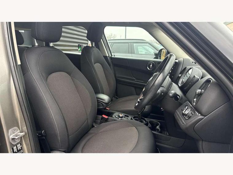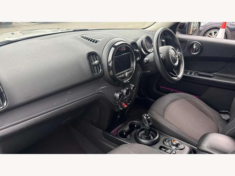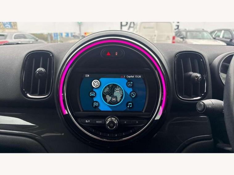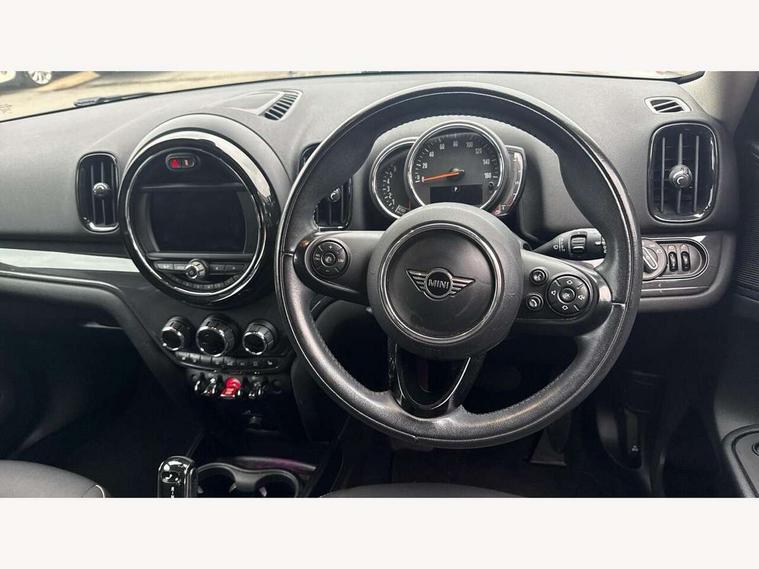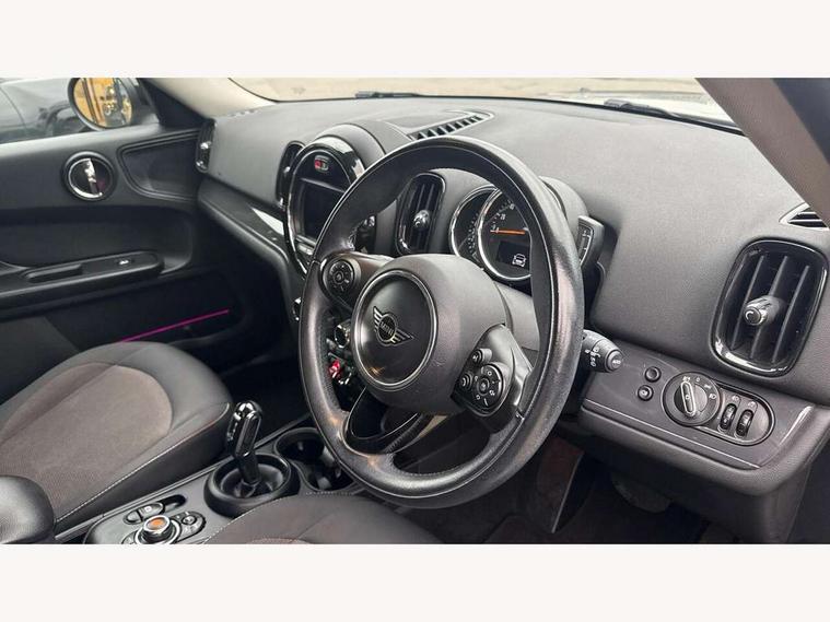 Active Guard incl speed limiting and lane departure functions with auto steering, and front collision warning with brake intervention, Automatic start/stop function with brake energy recuperation, Electro-mechanical speed dependant steering assistance, Instrument cluster, Mini E-call, MINI TeleServices, On board computer, Rear parking distance control, Double Vanos system, Fully variable valve control, High precision injection, Steptronic transmission with double clutch, FM tuner and DAB digital radio, Body colour fuel filler cap, Day time driving lights, Door sill strips, Dynamic brake lights, Electric windows, Heated rear window, Heated windscreen washer jets, Left exhaust tailpipe with chrome finisher, Model logo, Model logo on Tailgate, Radiator grille, Rain sensor with auto headlights, Rear fog lights, Rear window wiper, Side scuttle panel with integrated indicator, Split rear doors, Sun/heat protection glass, White indicator lenses, 12V Accessory socket in centre console, 360L luggage compartment capacity, 4 lashing eyes in luggage compartment, 40:20:40 split folding rear seats, Chrome interior highlights, Colour line - Carbon black, Cupholders, English handbook, Front headrests, Glove compartment, Headliner with grab handles and clothes hooks, Height and length steering column adjustment, Interior lighting with 12 basic colours selectable via toggle switch in roof, Isofix rear child seat preparation, Leather gearshift lever and handbrake gaiters, LED reading lights, vanity mirror lights, front foot well light and spotlight on front seats, Manual air conditioning, Mechanical seat adjustment, driver seat height adjust, forward/back and front seats backrest, Multifunction steering wheel, Passenger seat height adjuster, Rear headrests, Storage compartments in doors, Sunvisors with vanity mirrors, Tool kit, Excitement pack - Countryman, Navigation pack - Countryman, 2 tone horn, 3 point seatbelts on all seats, 6 Airbags - front, side, head and seat belt tensioners, Anti-lock braking system (ABS), DSC - Dynamic Stability Control, Electronic handbrake, Front and rear disc brakes, Hill start assist, Tyre pressure monitoring system, Alarm system with tilt sensor, monitoring doors, bonnet interior and tailgate, Auto drive away locking, Deadlocking function, Electronic vehicle immobiliser, Locking wheel bolts, Start/stop toggle with keyless go,
