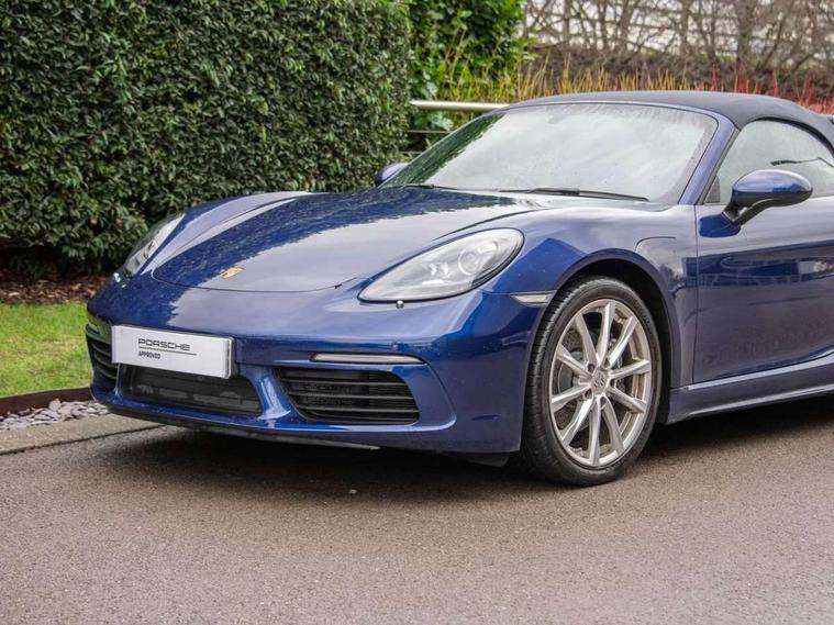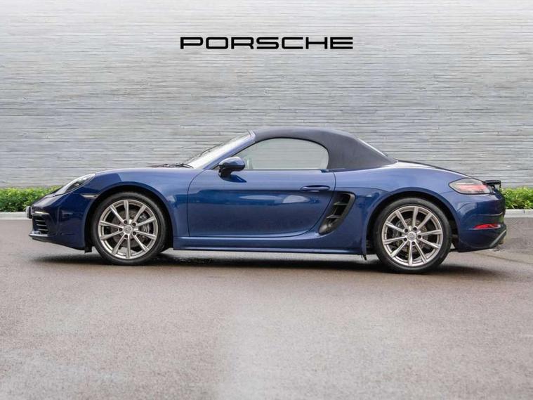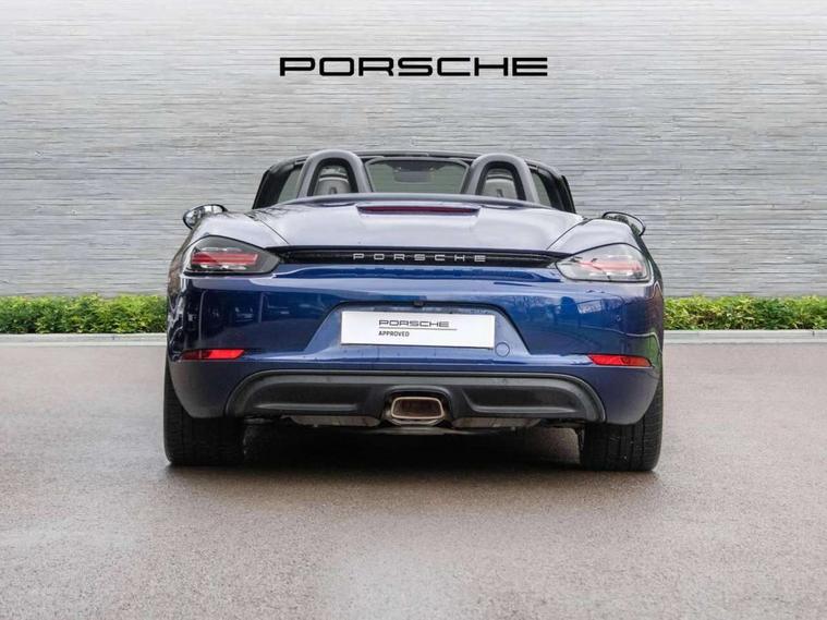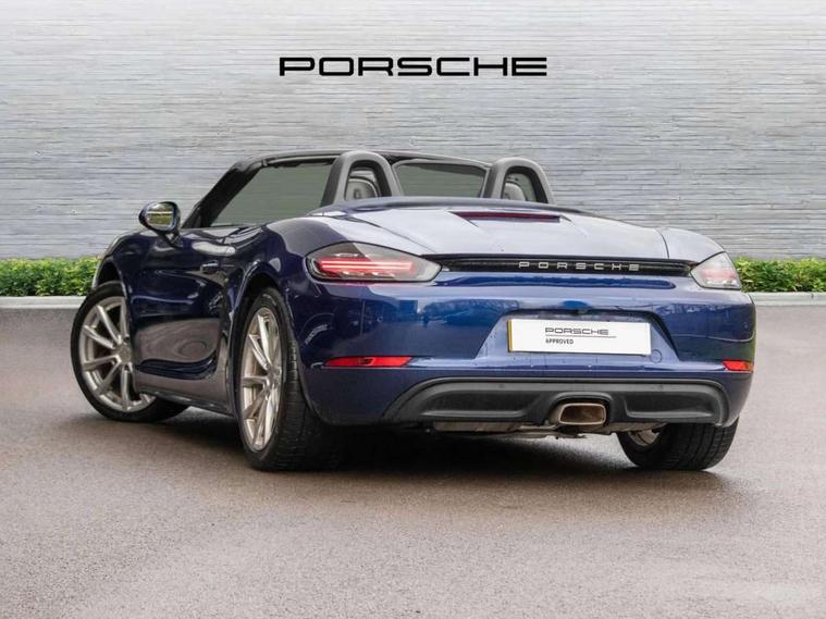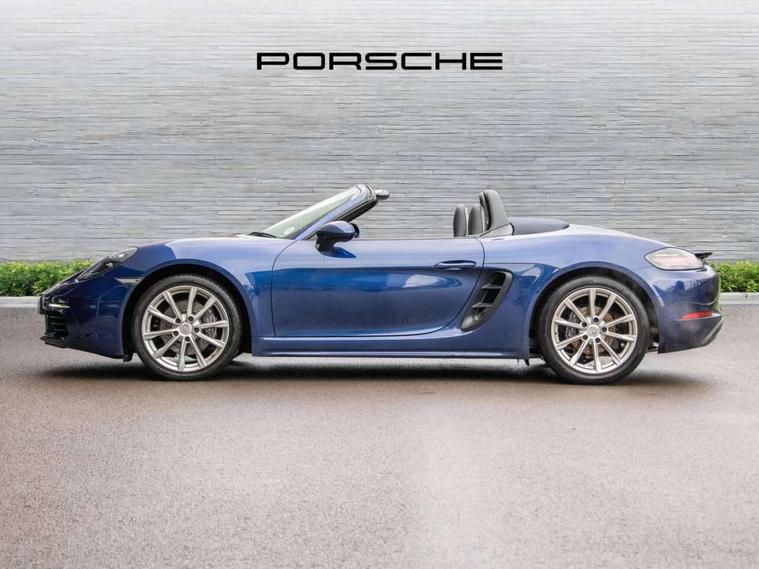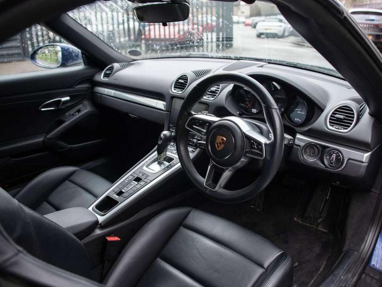Auto start and stop system, Digital displays for vehicle speed, chosen gear, odometer, trip odometer and clock, eCall emergency call system, Instrument cluster with central rev counter and high-resolution 4.6 inch colour display, Porsche Communication Management (PCM) including online navigation module, mobile phone preparation, audio interfaces and voice control system, 3-way catalytic converters and on-board diagnostics for monitoring emission control system and coated particulate filter, 4 valves per cylinder, Aluminium block and cylinder heads, Direct fuel injection (DFI), Gasoline particulate filter, Integrated dry-sump lubrication with an on-demand oil pump, Porsche Doppelkupplung (PDK), Porsche Stability Management (PSM) with ABS, advanced brake functions, Rear wheel drive, Turbocharger with intercooler, Two seater vehicle with mid mounted engine, VarioCam Plus variable valve timing and switchable valve lift, Water cooled with thermal management, DAB Digital radio, Integrated 4G/LTE compatible SIM including data for the Porsche Connect Services, Integrated compatible SIM including Porsche Connect Services, Navigation incl porsche + Apple Carplay, connect module, wireless internet access, carfinder, remote vehicle status, remote service and vehicle track, Wifi and music streaming, 3rd brake light, Auto deploying rear wing, Automatic headlight activation including welcome home lighting, Automatically extending rear boot spoiler, Body colour bumpers, Body colour door handles, Electrically adjustable heated exterior mirrors on door waist rails, aspherical on driver's side, Fully automatic fabric hood, electrically operated/heatable rigid glass rear screen, operable approx 31 mph and convenient operation by key remote, Green tinted heat insulating glass, Grey top tinted windscreen, Heated rear windscreen, Intelligent lightweight body in Aluminium/Steel composite construction, Net wind deflector, Power windows with one touch operation and door seal protection, Rain sensor, Rear boot, Separate auxiliary lights in the front end with LED indicators and position lights, Twin tract exhaust system with central tailpipe in stainless steel, Windscreen washer system with two wiper speeds and washer jets, 12V sockets in passenger footwell and centre console storage compartment, 718 logo on gear lever, Adjustable fan with air recirculation and defroster functions, Ascending centre console with uncovered storage compartment and closed storage compartment, Clothes hooks on front seat backrests, Footwell illumination, Front and rear luggage compartments, Front headrests, Heated seats, Hood lining in black fabric, LED reading lights, orientation, ignition lock, additionally luggage compartment and glove compartment lighting, Lockable glovebox, Seat centres in race tex, side bolsters and headrests in leather, Single front passenger seat, Smooth finish leather on steering wheel rim, gear lever and door handles, SPORT button to activate dynamic driving settings for engine, transmission (with PDK), Storage compartments in each doors, Two individual cup holders (Passenger side, integrated into dashboard trim strip), 3 point automatic seatbelts, ASR, Electrically controlled parking brake, Front and rear lightweight spring strut axle, Front seatbelt pretensioners + load limiters, Full size driver and passenger airbags, Passenger airbag deactivate switch, Porsche side impact protection doors with thorax airbag in outer backrest side bolster and head airbag for driver/passenger in door panel, Tyre pressure monitoring system, Alarm system with interior surveillance, Anti-theft wheel bolts, Dashcam prep, Engine immobiliser with in key transponder, central locking and remote control, Tyre repair kit,