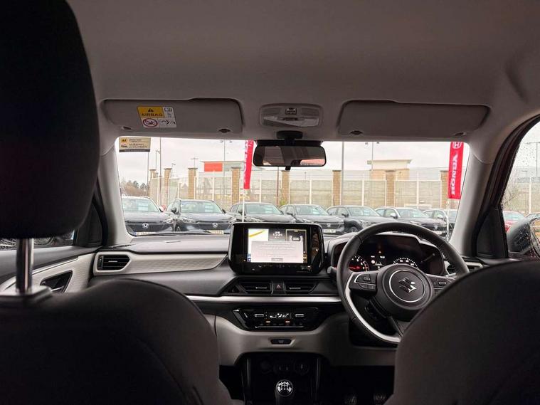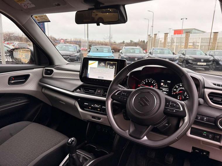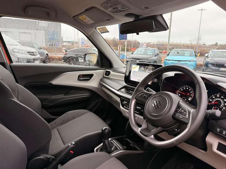 Adaptive cruise control, Automatic start/stop system, Blind spot monitoring, Colour LCD information display, Digital clock, Driver monitoring system, eCall, Fuel consumption display (average/instantaneous) and range display, Intelligent speed control support, Lane departure prevention, Lane departure warning system, Lane keeping assist (LKA), Low fuel level warning light, Navigation system, Outside temperature display, PAS, Rear cross traffic alert, Rear parking camera, Rear parking sensors, Remote fuel cap release, Smartphone integration with Apple CarPlay and Android auto, Suzuki connect, Tailgate, Traffic sign recognition, Weaving alert, 4 speakers + 2 tweeters, 9-inch infotainment display, Auxiliary input socket, Bluetooth audio streaming, DAB Digital radio, Steering wheel audio controls, USB Type A and C, 'Guide me home' headlamps, 1 speed with intermittent rear wiper + washer, 2 speeds front wiper with intermittent + washer, Automatic headlights, Black coloured A & B pillars, Black Upper and lower front grille, Body colour door mirrors and handles, C pillar trim moulding, Door mirrors with built-in turn signal lamp, Electric door mirrors, Electric folding door mirrors, Electric front windows, Electric rear windows, Green tinted glass, Heated door mirrors, High beam assist, LED daytime running lights, LED High mounted stop light, LED number plate light, LED position lamps, LED projector headlamps, LED rear combination lamp, Manual headlamp level control, Rain sensor, Rear fog lights, Rear privacy glass, Rear side wing doors, Rear spoiler, Side spoiler, 1 cup holder in rear, 12V Accessory socket in front console, 2 cup holders in front, 2 Isofix seat anchors, 3 bench rear seats in 2nd row, 3 rear head restraints, 3 spoke leather covered steering wheel, 60/40 split rear seats, Accessory socket, Automatic air conditioning, Centre console storage, Centre lower box, Child seat tether anchorages x 2, Chrome handbrake release button, Chrome interior door handles, Cloth upholstery, Door pockets with bottle holder, Driver/passenger sunvisors with ticket holders + vanity mirrors, Front cabin lights, Front headrests, Front map light, Front passenger side assist grip, Glovebox, Heated front seats, Heater, Height adjustable driver's seat, Luggage area lamp, Painted interior door trim ornament, Parcel shelf, Passenger seat back pocket, Pollen filter, Rear assist grips x2, Rear heater duct, Single front passenger seat, Tilt adjustable steering wheel, Tilt/telescopic adjustable steering wheel, 3 point ELR seatbelts for centre seat, 3 point ELR seatbelts front and rear, ABS+EBD+Brake assist, Curtain airbags, Driver airbag, Dual sensor brake support, ESP + traction control, Front and rear seatbelt reminder, Front passenger airbag, Front passenger airbag deactivation, Front seat seatbelts shoulder height adjuster, Front seatbelt pretensioners with force limiters, Hill hold control, Rear child proof door locks, Rear seatbelts with pre-tensioners and load limiters, Side airbags with incorporated into front seats, Tyre pressure indicator, Deadlocks, Freewheeling key cylinders, Immobiliser, Keyless entry and start, Light - on and Key in reminder, Locking wheel nuts, Remote central locking, Painted instrument panel ornament, 16" Polished alloy wheels, Emergency flat tyre repair kit,