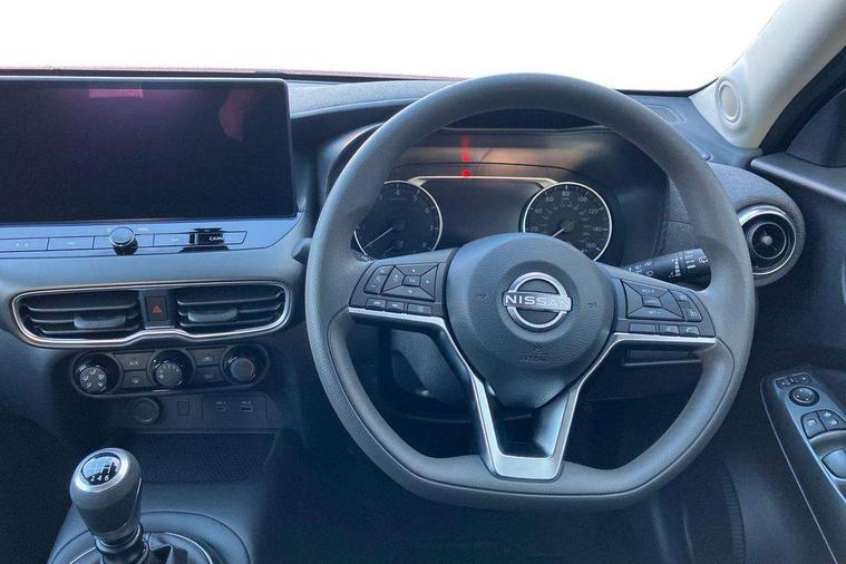7" full colour TFT screen combimeter, Cruise control + speed limiter, Emergency and breakdown call, Idle start/stop system, Intelligent driver alert system, Intelligent lane intervention, Lane departure warning system, Nissan connect 12.3" touch screen entertainment system, Outside temperature sensor, Power Steering, Rear view camera, Traffic sign recognition, Trip computer, Voice recognition, WiFi connectivity, Wireless Apple CarPlay and Google Android auto, 2 X Rear console USB port, 4 speakers, Bluetooth system, USB, Aux-in and 12V socket, DAB Digital radio, Automatic hazard signal with emergency stop signal, Body colour door handles, Electrically adjustable door mirrors with integrated indicators, Follow me home headlights, Front and rear electric window with one touch driver window, High beam assist, LED 3rd brake light, LED daytime running lights, LED headlamps, LED rear fog lamp, LED rear lamps, Manual dimming framed interior rear view mirror, Rear side wing doors, Rear wiper, Roof spoiler, Shark fin roof antenna in solid Black, Three blink turn signal, 3 height adjustable rear headrests, 3 seat bench in 2nd row, 60/40 split folding rear seat, Cloth upholstery, Driver/passenger sunvisors and vanity mirrors, Front and rear cabin lights, Front armrest, Front door pockets with bottle holders, Front head restraints, Height adjustable driver's seat, Luggage space lighting, Monoform sporty seats, Multifunction steering wheel, Rear door bottle holders, Single front passenger seat, Smooth synthetic leather steering wheel, Telescopic steering wheel adjustment, Two cupholders in front centre console, Two rear isofix child seat anchorage points with top tether, Welcome light and console tray ambient lighting, ABS with EBD and brake assist, Active ride control, Active Trace Control, Driver and passenger airbags, Driver and passenger side airbags, Electric handbrake with auto hold function, Electronic Stability Programme (ESP), Front and rear curtain airbags, Height adjustable seatbelts, Hill start assist, Intelligent emergency braking with pedestrian and cyclist recognition, Rear door child safety locks, Seatbelt reminder for driver/front passenger and rear seats, Three 3 point rear seatbelts, Traction control, Tyre pressure monitoring system, VDC Dynamic Vehicle Control, Alarm, Immobiliser, Remote central locking, 17" Sakura Flex wheels, Tyre puncture repair kit,