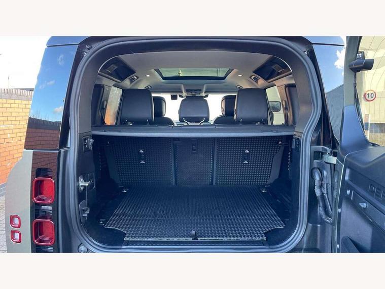 11.4" touchscreen, 360 degree parking aid, 3D Surround Camera with 360 View, 180 Rear View, Front Traffic Detection, Forward Vehicle Guidance, Tow Hitch Assist and clear sight Ground View, Adaptive cruise control, Android Auto, Apple CarPlay, Assisted tailgate with soft close, Blind spot assist, Bluetooth system, Brake pad wear indicator, Clear exit monitor, Connected navigation pro, Driver condition monitor, Electric power assisted steering (EPAS), Interactive driver display, Lane keep assist, Push button start, Rear collision monitor, Rear traffic monitor, Traffic sign recognition with adaptive speed limiter, Trip computer, Wade Sensing, 8 speed automatic transmission, All wheel drive system, Twin speed transfer box, DAB Radio (Digital Audio Broadcasting), Pivi pro connected, Automatic headlight levelling, Automatic headlights, Black exposed rear recovery eyes, Centre high mounted stop light, ClearSight interior rear view mirror, Electric heated/power fold door mirrors with approach lights and auto dimming driver side, Electric windows with one touch open/close and anti-trap, Follow me home lighting, Front fog lights, Heated rear window with timer, Heated windscreen, LED tail lights, Privacy glass, Puddle lights, Rain sensing windscreen wipers, Rear fog lights, Rear side wing doors, Rear wiper, Side hinged tailgate, Trailer stability assist, X-Dynamic badge, 12V power socket in loadspace, 14 way heated and cooled electric adjustable memory front seats with 4 way manual headrests, 3 seat bench in 2nd row, Alpine lights, Configurable cabin lighting, Durable rubber cabin flooring, Durable rubber loadspace flooring, Electric reach + rake adjustable steering column, Extended leather upgrade, Footwell lights, Front passenger isofix child seat attachment, Heated steering wheel, Loadspace cover, Loadspace Hook, Multifunction steering wheel, Overhead stowage for sunglasses, Premium cabin lighting, Rear headrests, Rear ISOFIX, Rear reading lights, Single front passenger seat, Standard seat configuration, Storage glovebox, Sunvisors with illuminated vanity mirrors, Online pack with data plan - Defender, 5 x 3 point seatbelts, ABS, Brake hold function, Cornering brake control (CBC), Customer configurable autolock, DSC - Dynamic Stability Control, EBD - Electronic brakeforce distribution, Electric parking brake (EPB), Emergency brake assist, Emergency braking, ESP + traction control, Front airbags with passenger seat occupant detector, HDC - Hill descent control, Hill launch assist, Low traction launch, Power operated child locks, Remote for (e-Call, Optimised assistance call, InControl app, Climate, beep and flash and door), RSC - Roll stability control, Seat belt reminder, TPMS (Tyre pressure monitoring system), Alarm, Immobiliser, Intrusion sensor, Keyless entry, Locking wheel nuts,