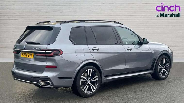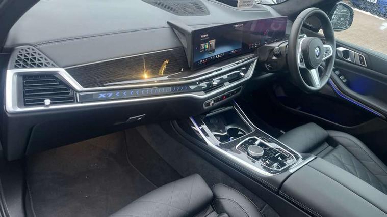 2 rear USB-C ports, Attentiveness assist, Automatic start/stop function, Automatic tailgate operation, BMW ConnectedDrive online services, BMW Drive recorder, BMW gesture control, BMW Teleservices, Brake pad wear indicator in front and rear, Condition based service, Integrated owner's handbook, Live Cockpit Professional with head up display including 12.3" instrument cluster and 14.9" central display, Parking assistant pro including reversing assistant, PDC, lateral parking aid, reversing assist camera, parking drive off monitoring, 48V Mild hybrid technology, 8 speed automatic with steptronic transmission including automatic hold function and gearshift paddles on the steering wheel, Drive experience switch with comfort mode + ECO PRO + sport mode, Permanent all wheel drive, 2x Front USB (1x USB-C, 1x USB-A), DAB radio, Personal eSim, Acoustic glazing, Adaptive air flap control bars in high gloss black, Air breather and door claddings in high gloss chrome, Body coloured wheel arches, Dynamic brake lights with LED technology, Electrically adjustable and heated aspheric folding side mirrors with auto dimming, electric fold in function, automatic parking function, Exterior and central air inlets in front bumper painted pearl chrome, Follow me home headlight function, Frameless interior mirror, Front and rear electric windows, Heated windscreen washer nozzles, High beam assist, High gloss black shadow line roof rails, High gloss black shadowline trim in side/window frame, window recess cover, window guide, B and C pillar, mirror triangle, mirror base, mirror frame, Integrated turn indicators, LED daytime running lights, LED rear lights, LED third brake light in rear spoiler, Rain sensor with automatic headlight activation and windscreen wiper control, Rear side wing doors, Sump guard front and rear painted in silver, Trailer stabilisation logic, 12V - Power sockets with 2x centre console and 1x luggage compartment, 2 seat bench in 3rd row, 2x cupholders in front, rear centre armrest and two in third row seats, 3 seat bench in 2nd row, 3 spoke M leather multifunction steering wheel, 40:20:40 split folding rear seat backrests, Ambient lighting strip in the instrument panel with illuminated, Armrest in front centre console, Compartment in front of cupholder, Driver and front passenger sunvisors with illuminated vanity mirrors and ticket holder, Electrical steering column with adjustable height and length with activation and control on the steering column, Entry sills with illuminated M inscription, Fold down flush into floor of luggage compartment 50:50, Front and rear colour co-ordinated with all standard carpet colours, Front and rear door pockets, Front and rear side armrests integrated into door trim, Front seat back pockets, Grab handles, Height adjustable front headrests, Height adjustable rear headrests, Lockable glove compartment, Nano filter, Single front passenger seat, Soft close doors, Storage tray and compartment with lid in centre console, Wireless charging tray, Additional storage compartment pack - X7, Ambient light interior pack - X7, Connected Package Professional - X7, Interior lighting pack - X7, Luggage compartment pack - X7, M aerodynamics pack - X7, M Sport pack - X7, 3 point seatbelts on all seats, front pyrotechnic belt tensioners, stopper and belt force limiters, front and outer rear seats, Acoustic protection for pedestrians, Active protection, Airbag - Front driver and passenger, side airbags and Head airbags, Anti lock braking system (ABS) with cornering brake control, Automatic Stability Control (ASC), BMW emergency call, Child seat ISOFIX attachment rear outer seats in 2nd row and both seats in 3rd row includes top tether, Comfort access system with digital key, Comfort cushion seats for outer seats in 2nd row, Crash sensor inclu activation of airbags, interior light, safety battery terminal clamp, hazard warn flasher, unlock doors, deactivation of fuel pump, DSC - Dynamic Stability Control, Dynamic Traction Control - DTC, Electromechanical parking brake with automatic drive away release and auto hold function, Front and rear brake discs with interior ventilation, Hill descent control, Integrated braking system, Manual child lock in rear doors, PC iBrake PostCrash approach control warning with light braking function, Tyre pressure monitoring system, Tyre pressure sensors, Variable torque distribution, Warning triangle and first aid kit, Alarm, Central locking including 2 vehicle keys with integrated emergency key, Engine immobiliser, Locking wheel bolts, Galvanic embellisher for controls,