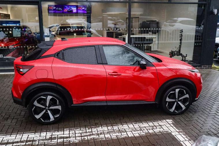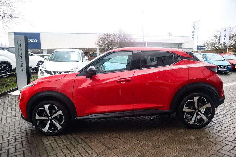 7" full colour TFT screen combimeter, Apple CarPlay and Google Android auto, Drive modes select (Eco, normal and sport), eCall emergency call system, Emergency and breakdown call, Front parking sensor, Idle start/stop system, Intelligent lane intervention, Lane departure warning system, Nissan connect 8" touch screen entertainment system, Nissan connect nav with TomTom traffic, Nissan connect services and Wifi connection, Outside temperature sensor, Power Steering, Rear parking sensor, Traffic sign recognition, Trip computer, Voice recognition, Gasoline particulate filter, Bluetooth system, USB, Aux-in and 12V socket, Bose personal plus audio system with 8 speakers(4 speakers and 2 headrest speaker for driver and passenger seats), Bose personal sound stage control, DAB Digital radio, Rear console USB port, Auto dimming interior rear view mirror, Auto headlights, Automatic hazard signal with emergency stop signal, Body colour bumpers, Body colour door handles, Electrically adjustable door mirrors with integrated indicators, Follow me home headlights, Front and rear electric window with one touch driver window, Heated and auto folding door mirrors, High beam assist, LED daytime running lights, LED front fog lights, LED headlamps, LED rear fog lamp, LED rear lamps, Rain sensor windscreen wipers, Rear privacy glass, Rear side wing doors, Rear wiper, Thermaclear heated windscreen, Three blink turn signal, 3 height adjustable rear headrests, 3 seat bench in 2nd row, 60/40 split folding rear seat, Automatic climate control, Card holder on driver sunvisor, Cloth/Synthetic leather upholstery, Door ambient lighting, Driver and passenger sliding and reclining seats, Driver seat back pocket, Driver side rear coat hanger, Driver/passenger sunvisors and vanity mirrors, Front and rear cabin lights, Front armrest, Front door pockets with bottle holders, Front head restraints, Front passenger isofix child seat anchorage point, Front/rear passenger grab handles, Gear console ambient circle lighting, Grey synthetic leather kneepad, Heated front seats, Height adjustable driver's seat, Height adjustable passenger seat, Internal chrome door handles, Leather gearshift knob, Leather steering wheel, Luggage board, Luggage space lighting, Monoform sporty seats, Multifunction steering wheel, Passenger seat back pocket, Rear door bottle holders, Single front passenger seat, Steering wheel mounted gearshift paddles, Telescopic steering wheel adjustment, Two cupholders in front centre console, Two rear isofix child seat anchorage points with top tether, Welcome light and console tray ambient lighting, ProPilot pack - Juke, ABS with EBD and brake assist, Active ride control, Active Trace Control, Driver and passenger airbags, Driver and passenger side airbags, Electric handbrake with auto hold function, Electronic Stability Programme (ESP), Front and rear curtain airbags, Height adjustable seatbelts, Hill start assist, Intelligent emergency braking with pedestrian and cyclist recognition, Rear door child safety locks, Seatbelt reminder for driver/front passenger and rear seats, Single tone horn, Three 3 point rear seatbelts, Traction control, Tyre pressure monitoring system, VDC Dynamic Vehicle Control, Ventilated rear brake discs, Alarm, Immobiliser, Intelligent Key with push button starter, Remote central locking,